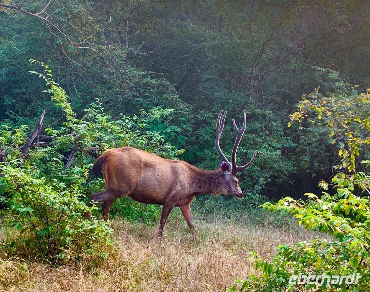 Nachdem unzählige Bilder geschossen wurden, widmen wir uns weiteren Tierbeobachtungen und sehen Sambar- und Axishirsche, Gaur-Rinder, Schlangenweihen, bunte Schmetterlinge, Hinduracken und Eisvögel.