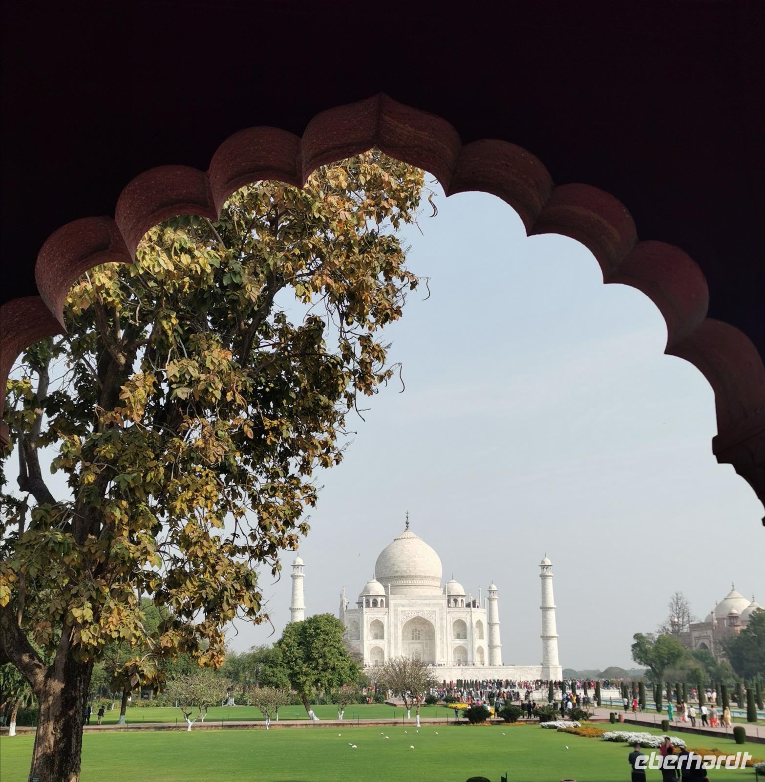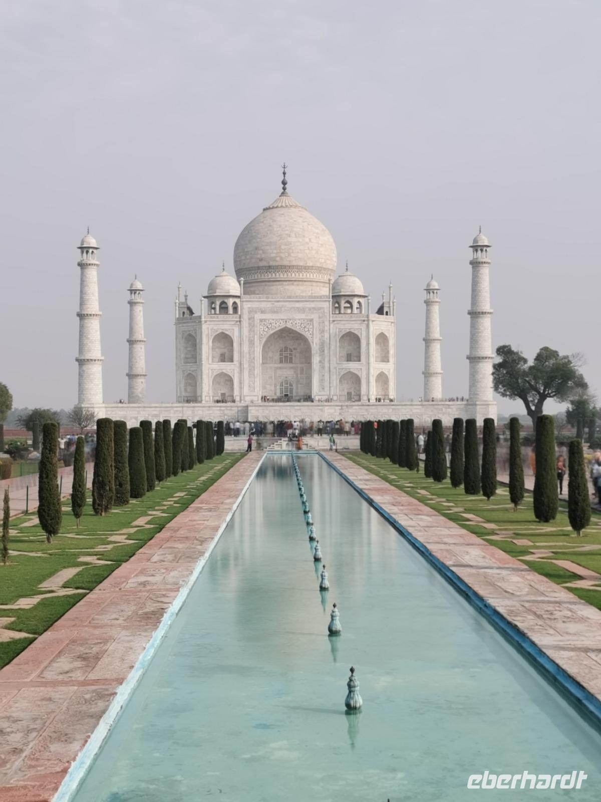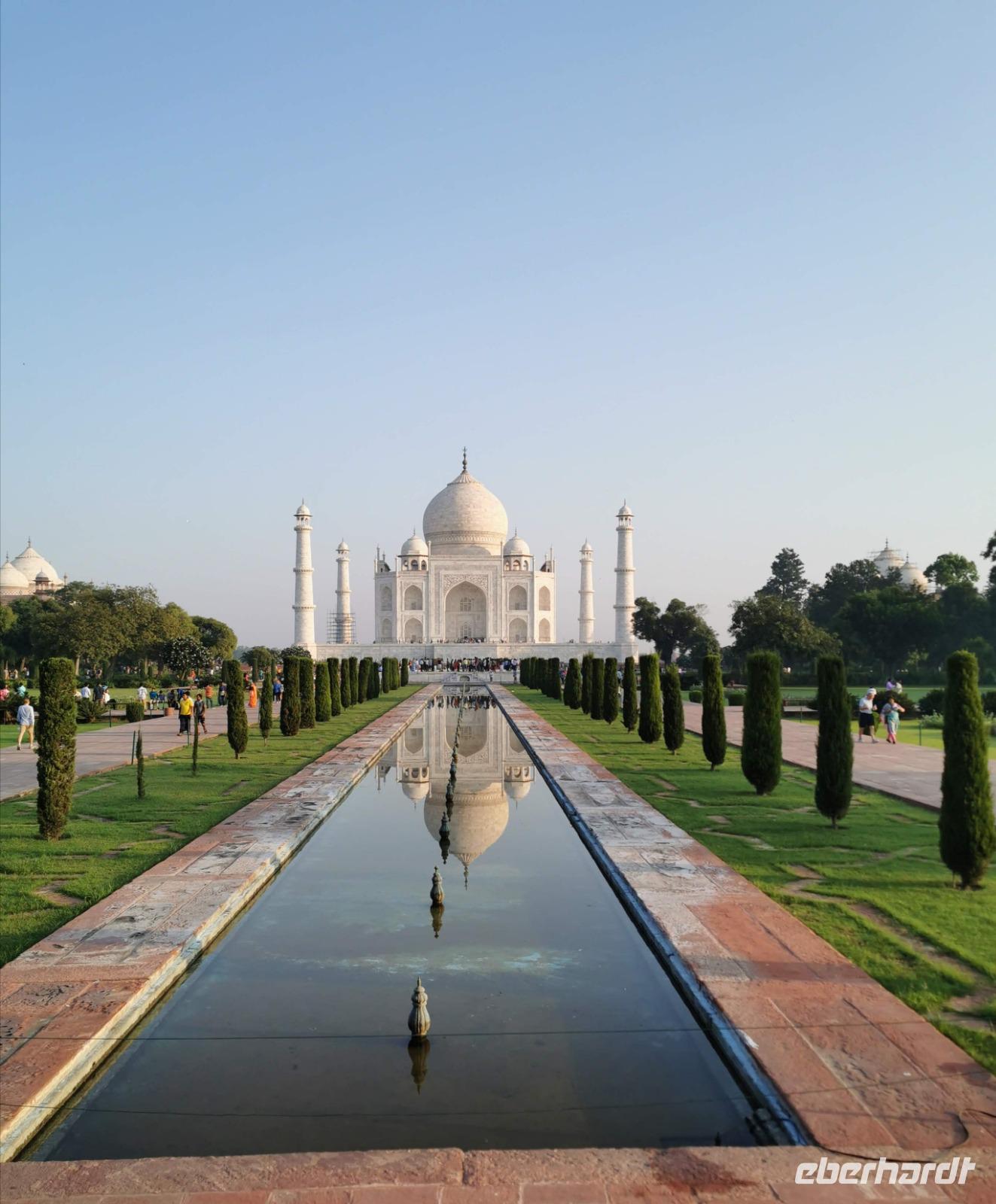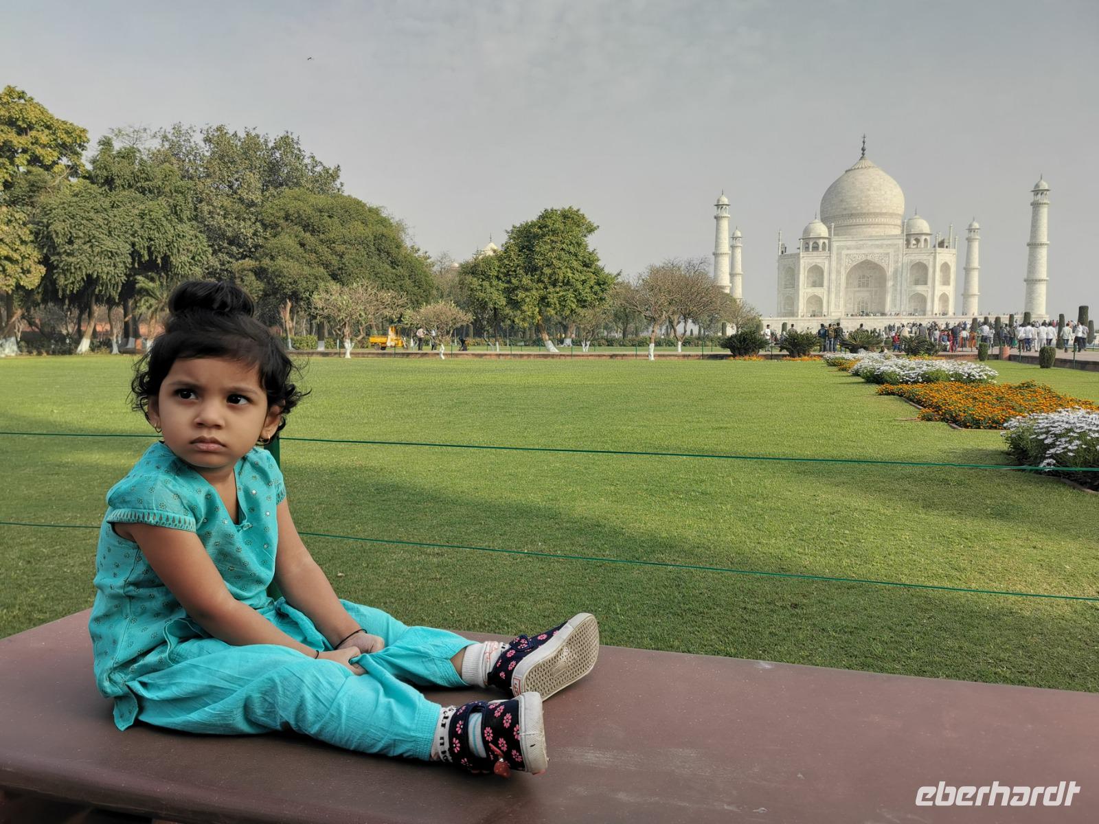 Bereits um acht Uhr morgens haben wir unseren Besichtigungstermin am Taj Mahal, obendrein schmeichelt um diese Zeit das Licht und der Hauptstrom der Besucher ist noch nicht da.