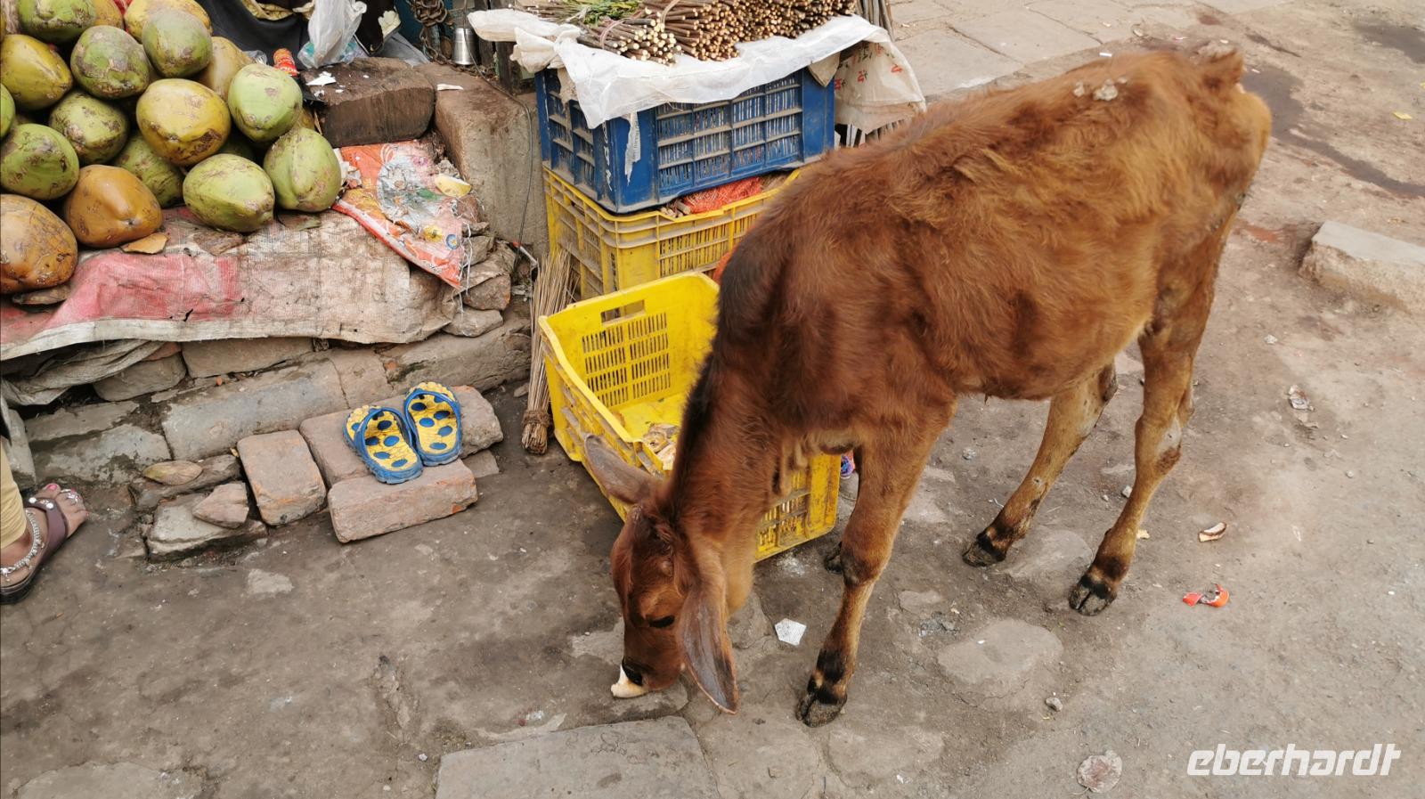 Auf dem Weg haben wir die Gelegenheit, das Alltagsleben an den Straßenrändern zu beobachten. Kühe sind allgegenwärtig, sind sie doch für die Hindus heilige Tiere und dürfen daher weder geschlachtet noch verzehrt werden. Garküchen bieten am Rand der Schnellstraßen kleine indische Snacks an, Obst wird verkauft und immer wieder winken uns Einheimische aus neben uns fahrenden Fahrzeugen zu.