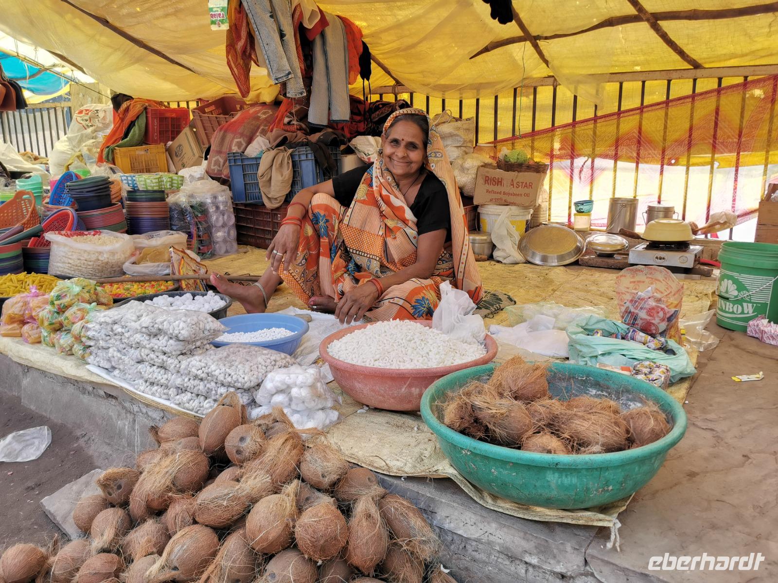 In den seltenen größeren Ansiedlungen müssen wir Schrittempo fahren, da so viele Menschen auf der Straße sind, daß unser großer Bus kaum durchkommt. Dabei sehen wir schon die Vorbereitungen für das Holi-Fest (das Fest der Farben). Überall gibt es Stände mit grellpinkem, sonnengelbem und quietschgrünem Pulver. Holi ist ein Frühlingsfest in ganz Indien, welches auf alte hinduistische Überlieferungen zurückgeht und am ersten Vollmondtag des Monats Phalgun des indischen Kalenders gefeiert wird. Es ist eines der ausgelassensten Feste Indiens, an diesem Tag scheinen alle sonst so präsenten gesellschaftlichen Schranken durch Kaste, Geschlecht, Alter und gesellschaftliche Stellung aufgehoben. Gemeinsam feiert man ausgelassen, und ausländische Gäste sind gut beraten, an diesem Tag sehr alte Kleidung zu tragen, denn nach dem Fest wird sie grellbunt verfärbt sein und bleiben :-)