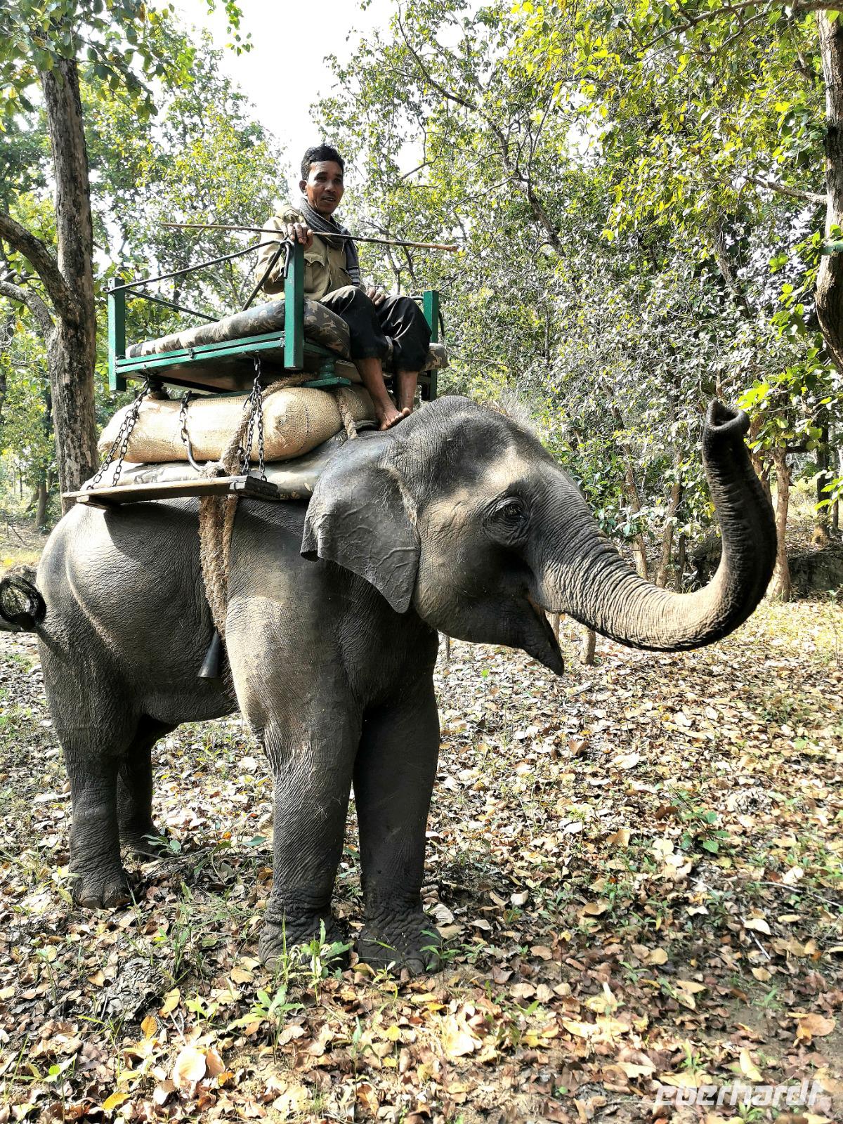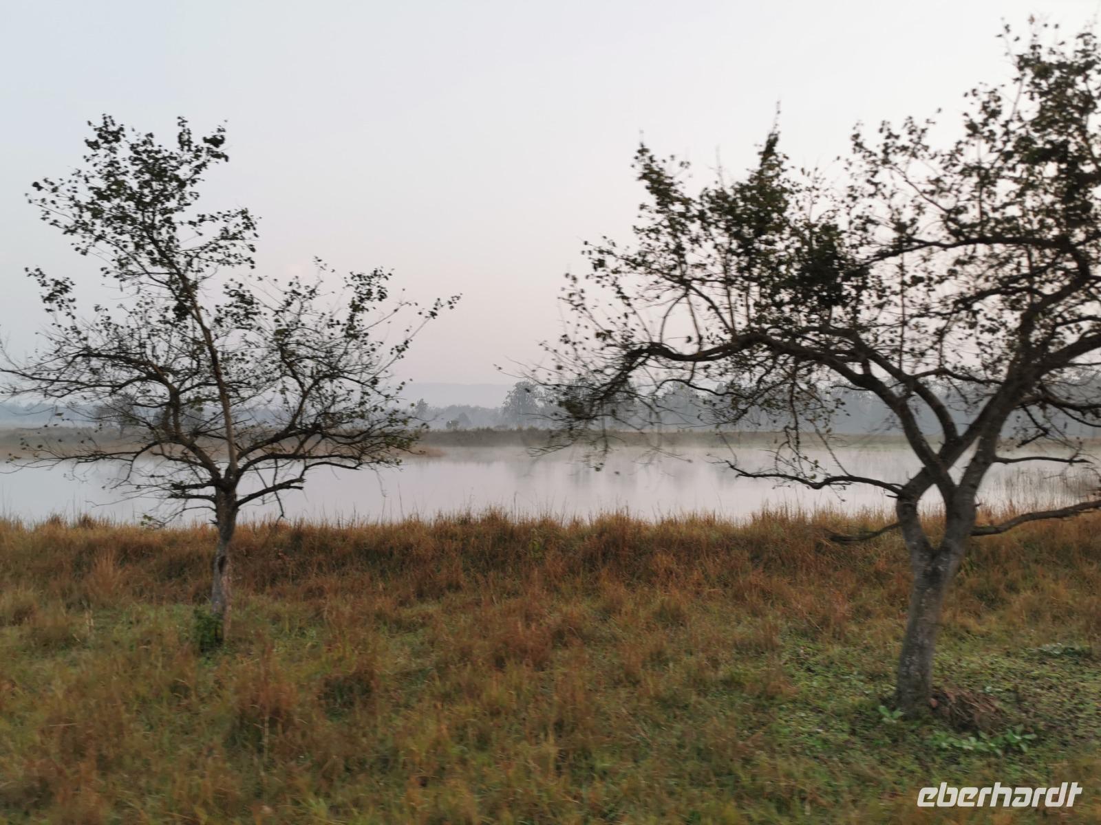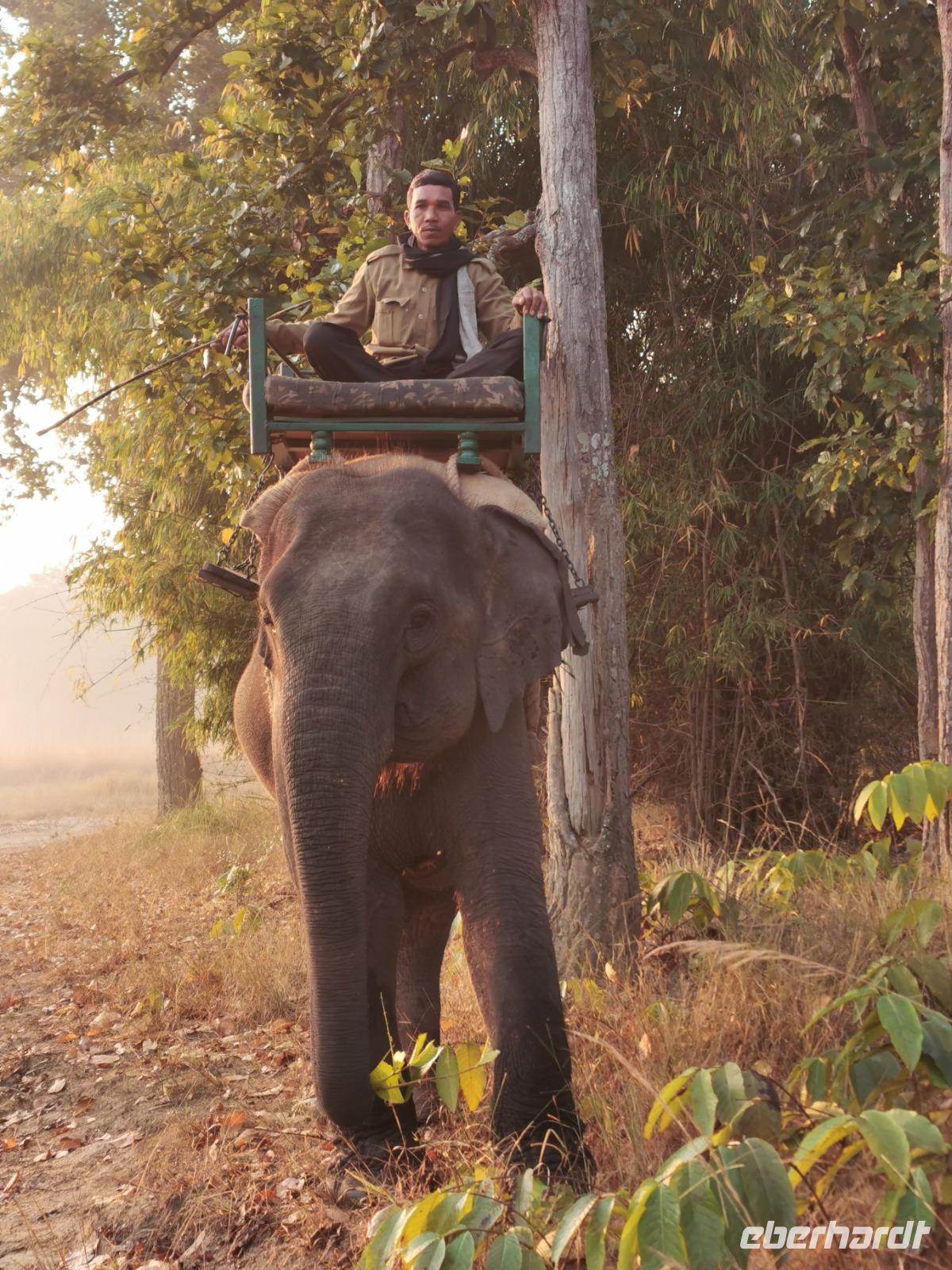 Dieser Park erinnert uns am meisten an die heimischen Wälder in Europa, am Morgen ziehen dicke Nebelschwaden über ausladende Wiesen, auf dem Boden liegt viel trockenes Laub, wie im Herbst in Deutschland. Wir genießen die Stille im Wald, die Spannung, wenn wieder ein Tiger naht und bleiben bis Mittag.