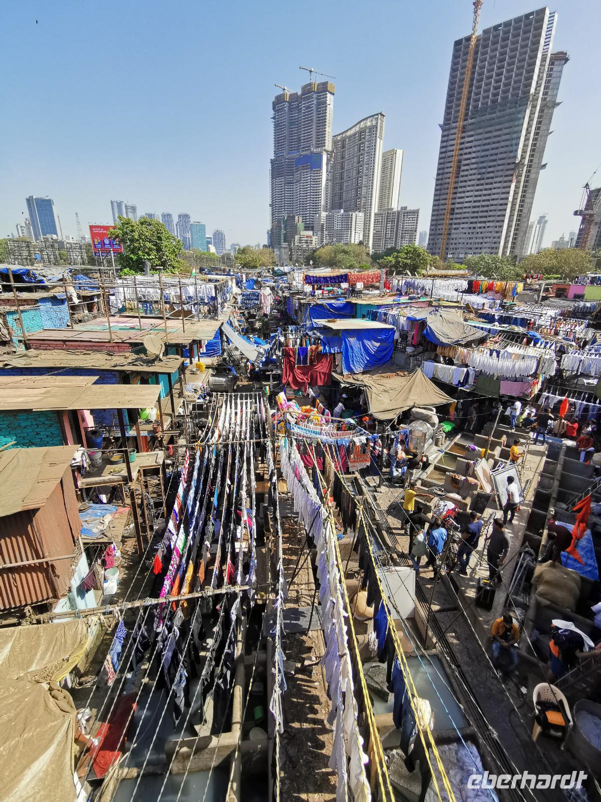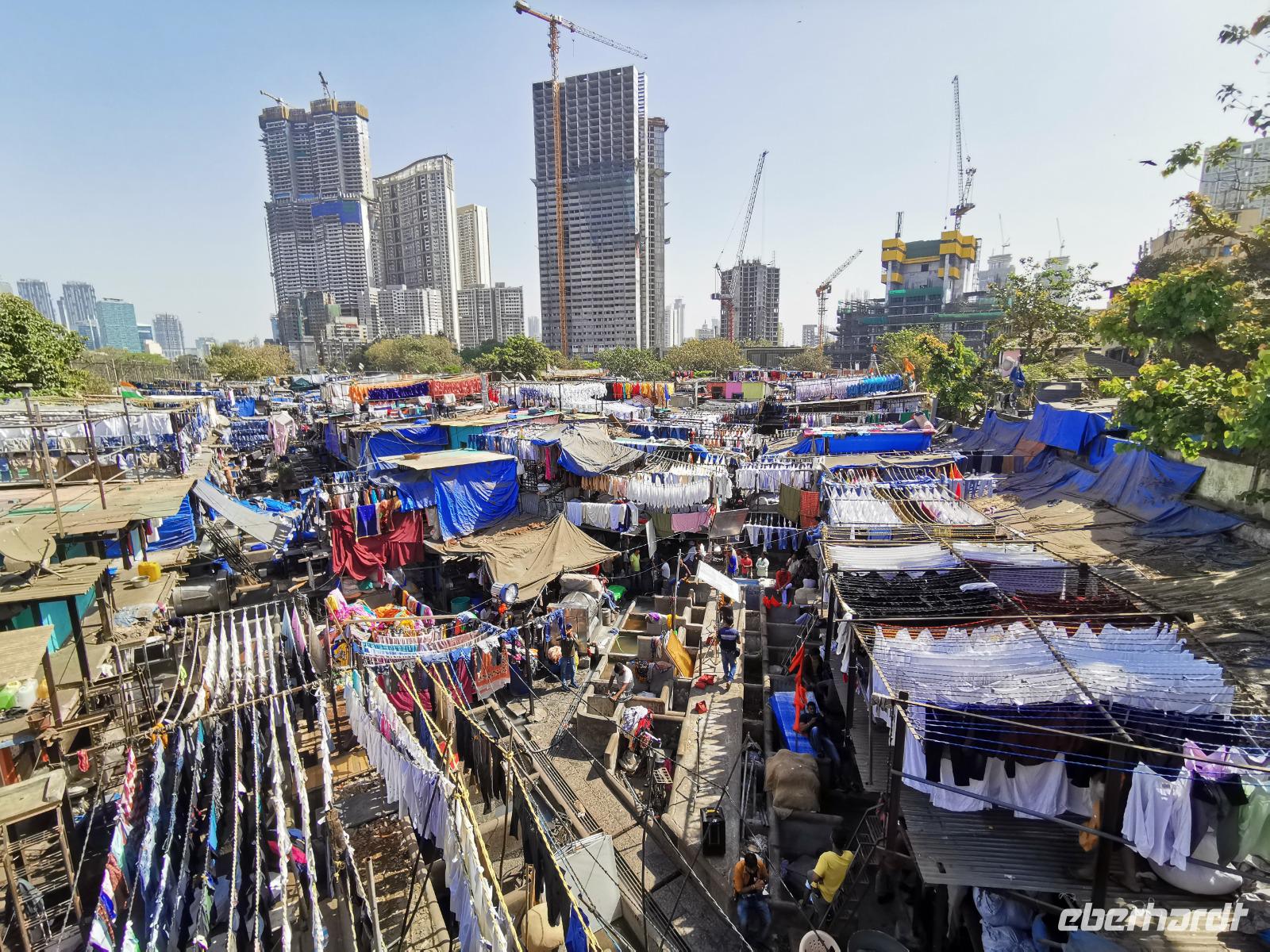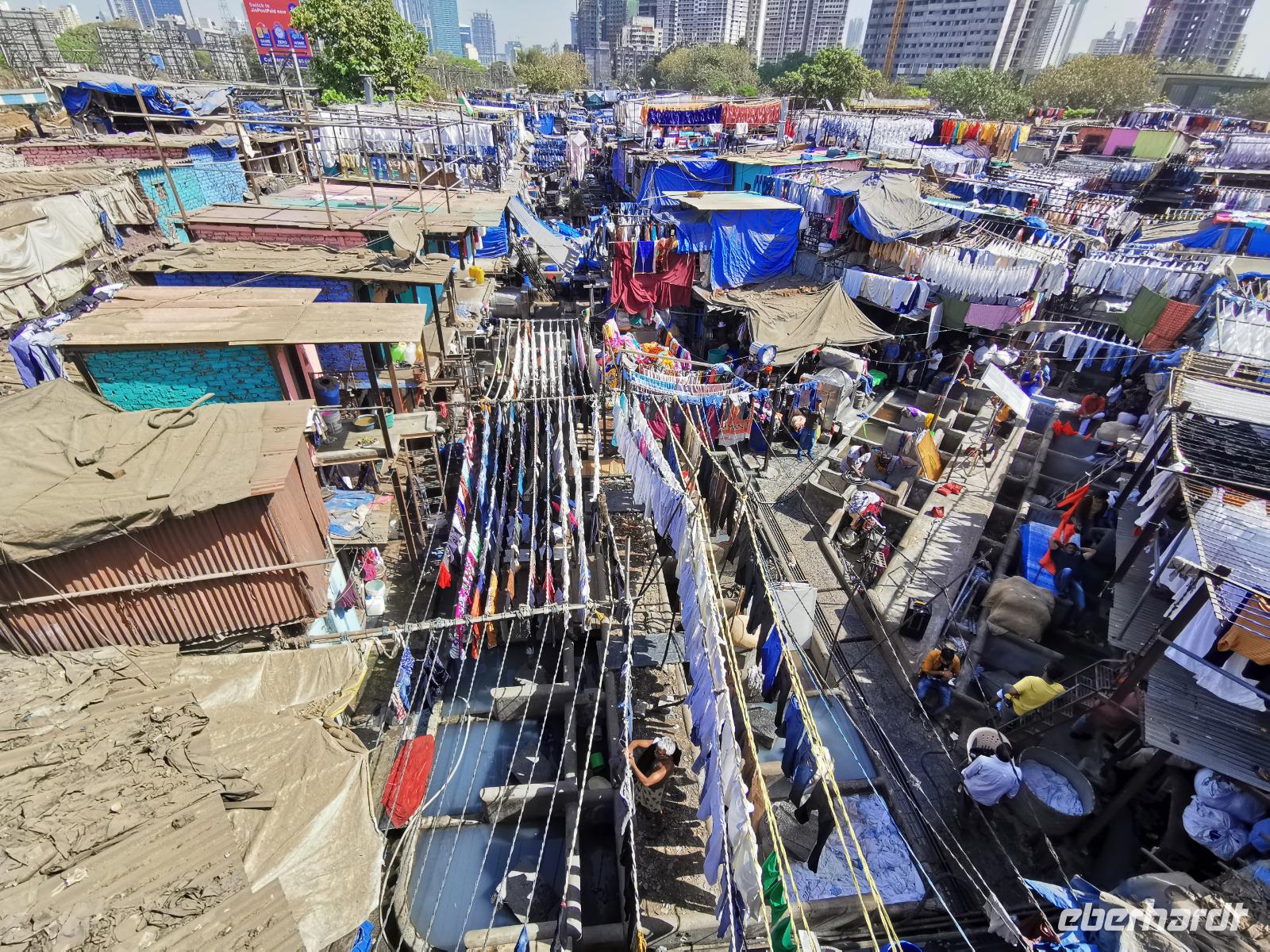 Gerade wird einer der 700 jährlich produzierten Bollywoodstreifen hier gedreht, wir sehen die Kamerateams herumwuseln und die unzähligen Leinen mit den sortierten Wäschestücken von einer Terrasse aus und können es einfach nicht fassen.