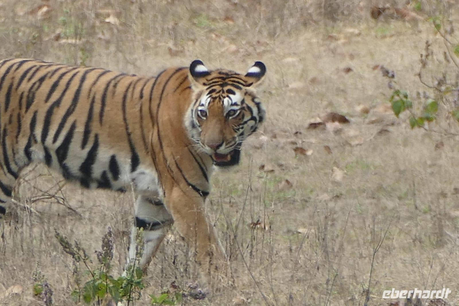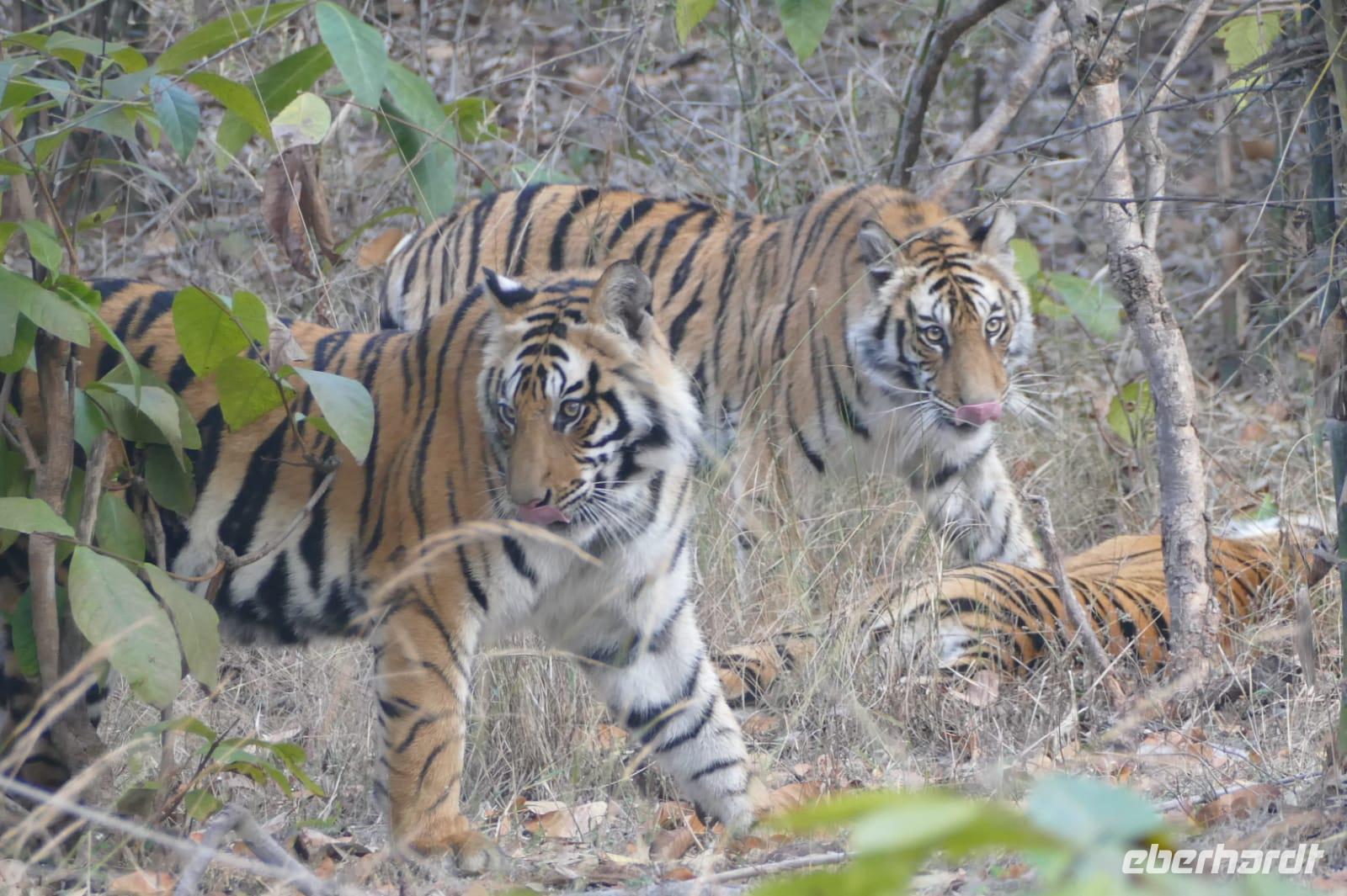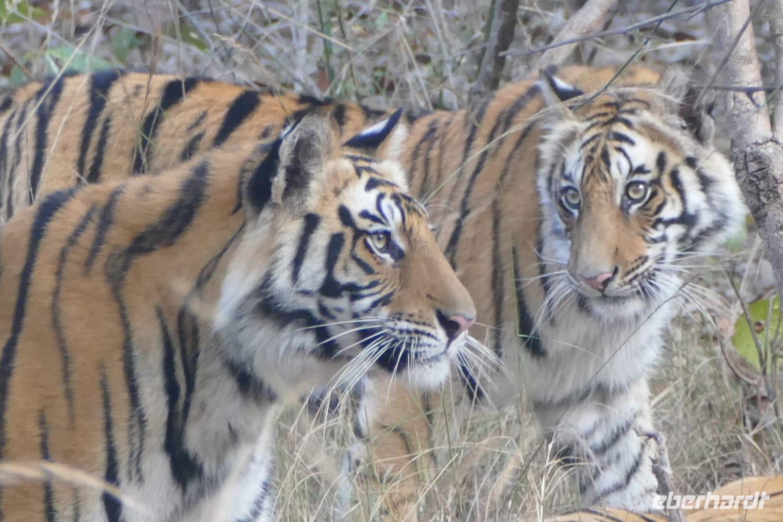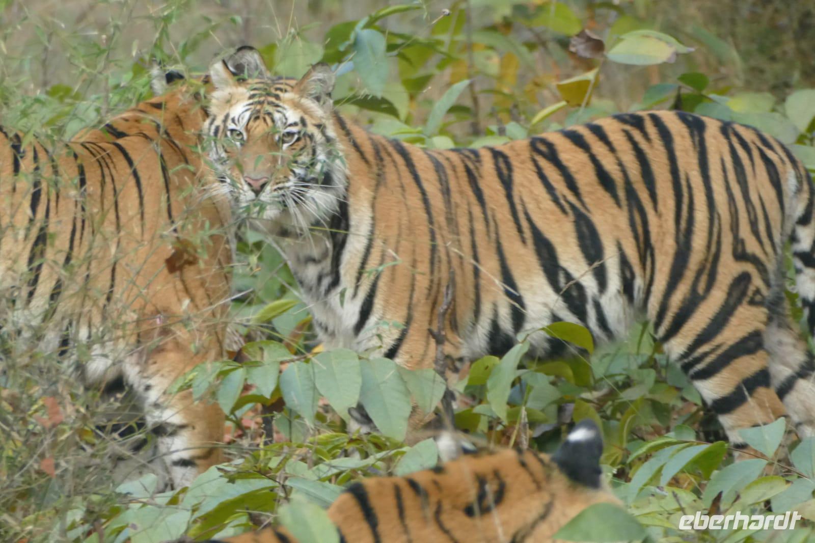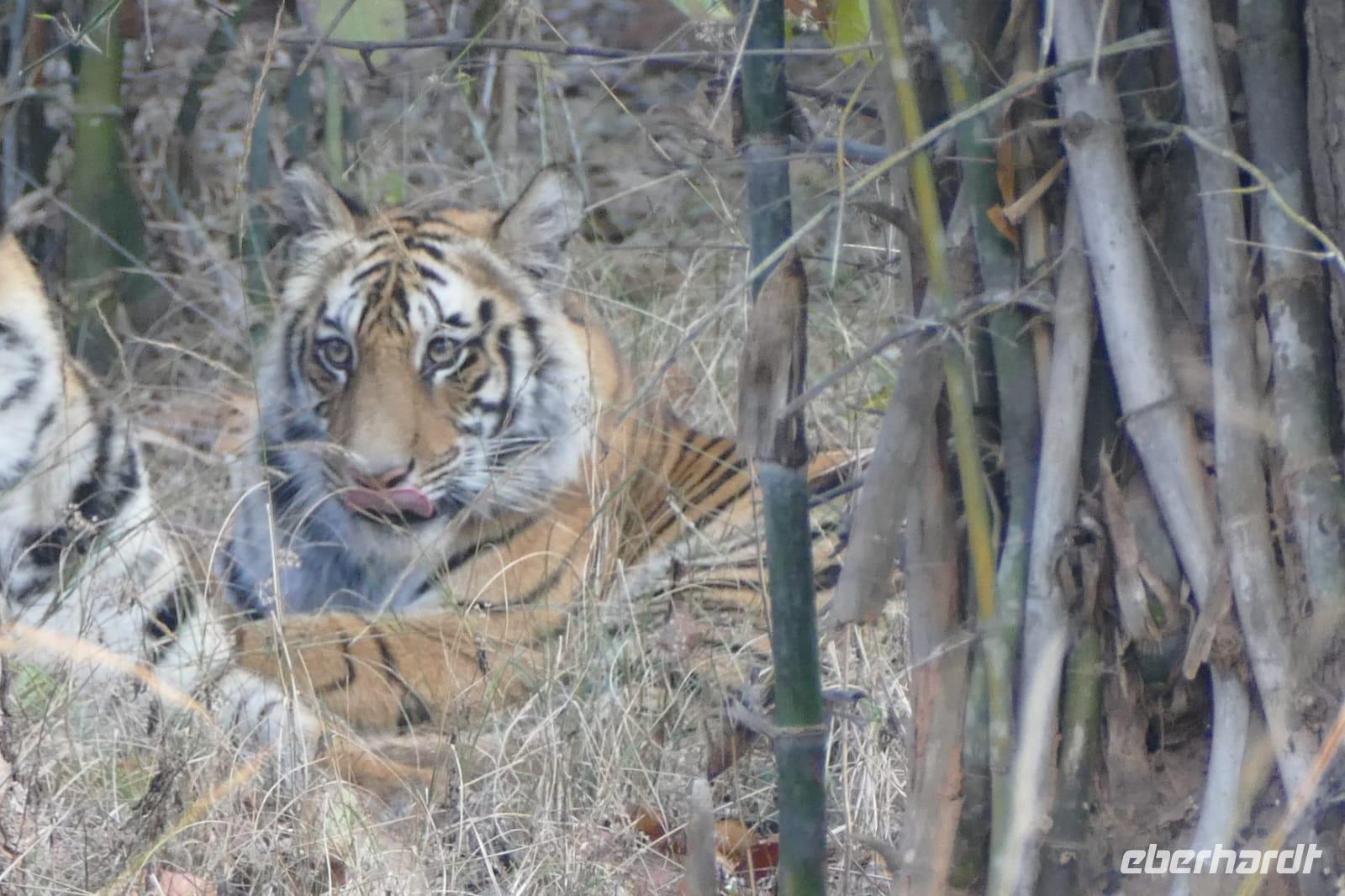 Auch heute sehen wir die wunderschönen Bengaltiger aus nächster Nähe, sie kreuzen mehrmals genau auf den Pisten auf und lassen sich überhaupt nicht durch unsere Anwesenheit stören. Sie schreiten stolz und gemächlich durch das Gras und wir können erneut tolle Fotos machen.
