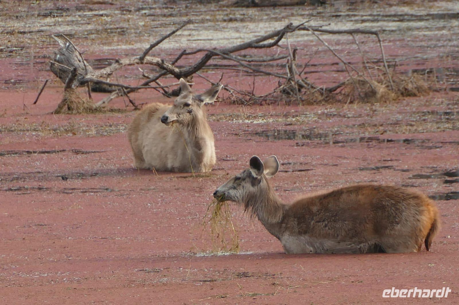 Von Ferne sehen wir auch einige, der nur hier vorkommenden Barasinghahirsche.