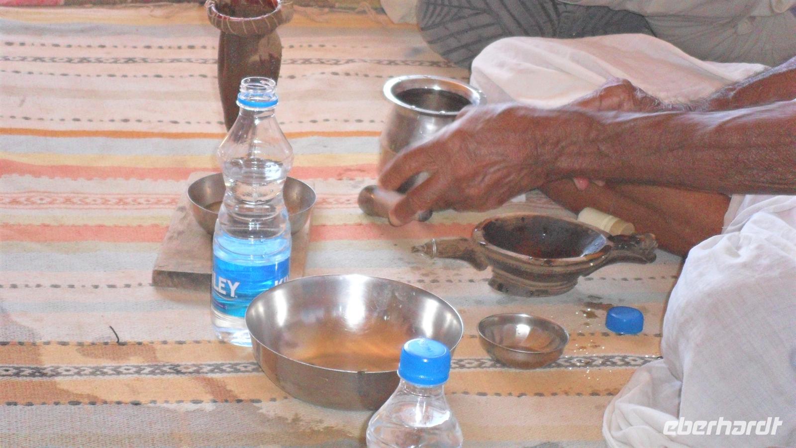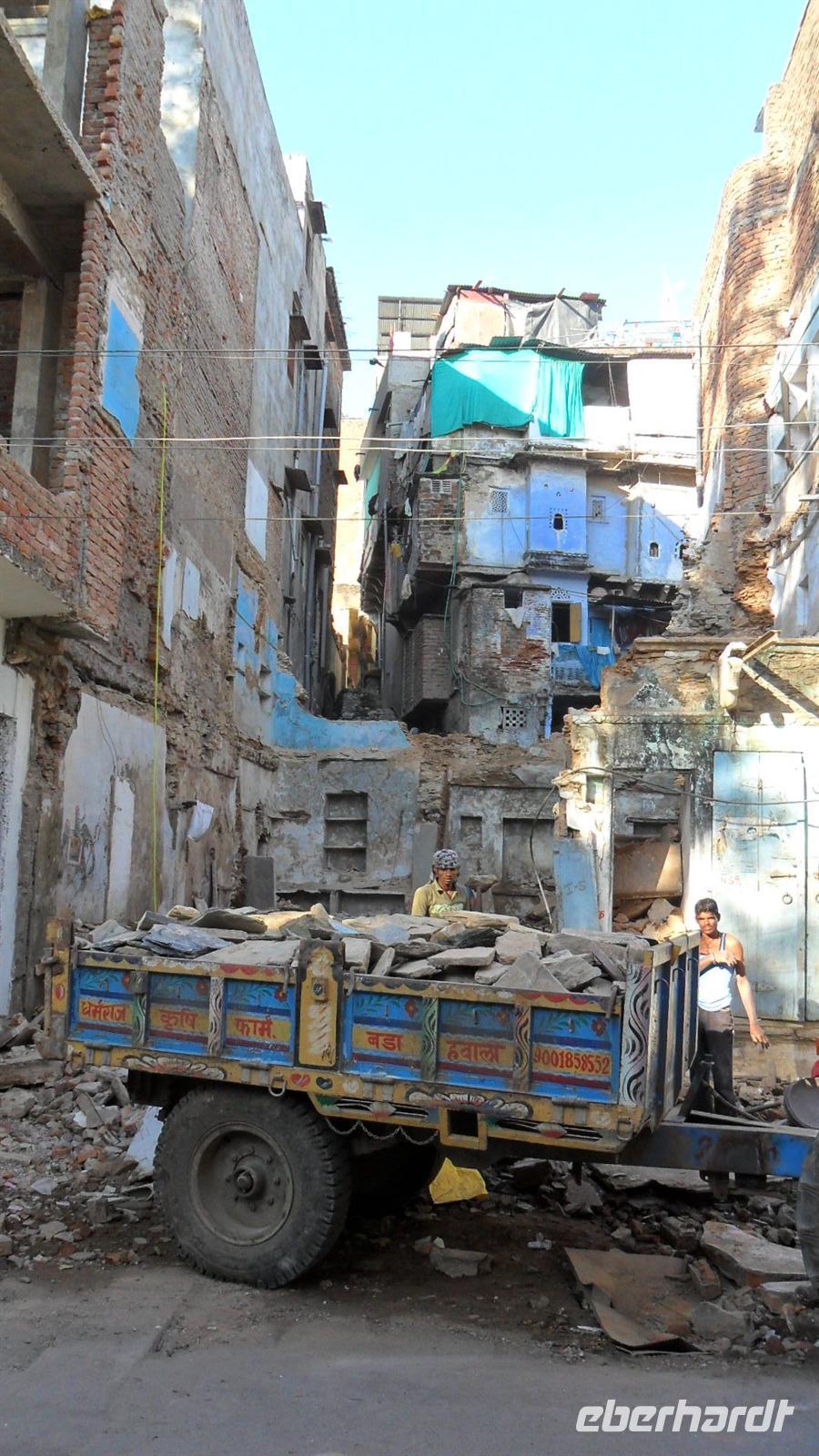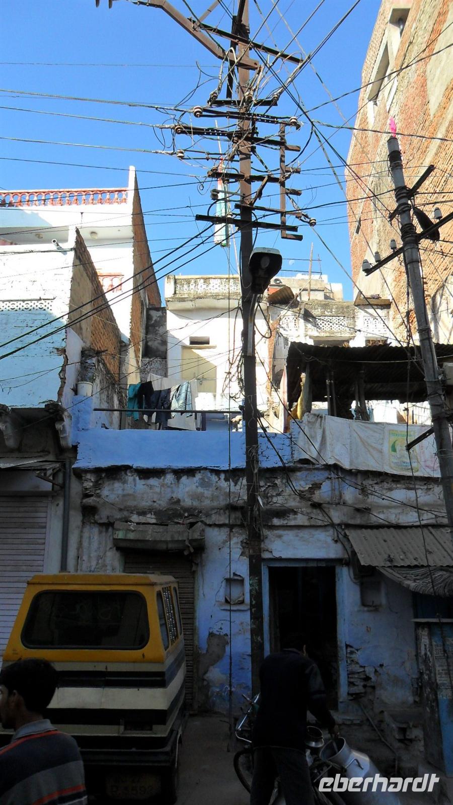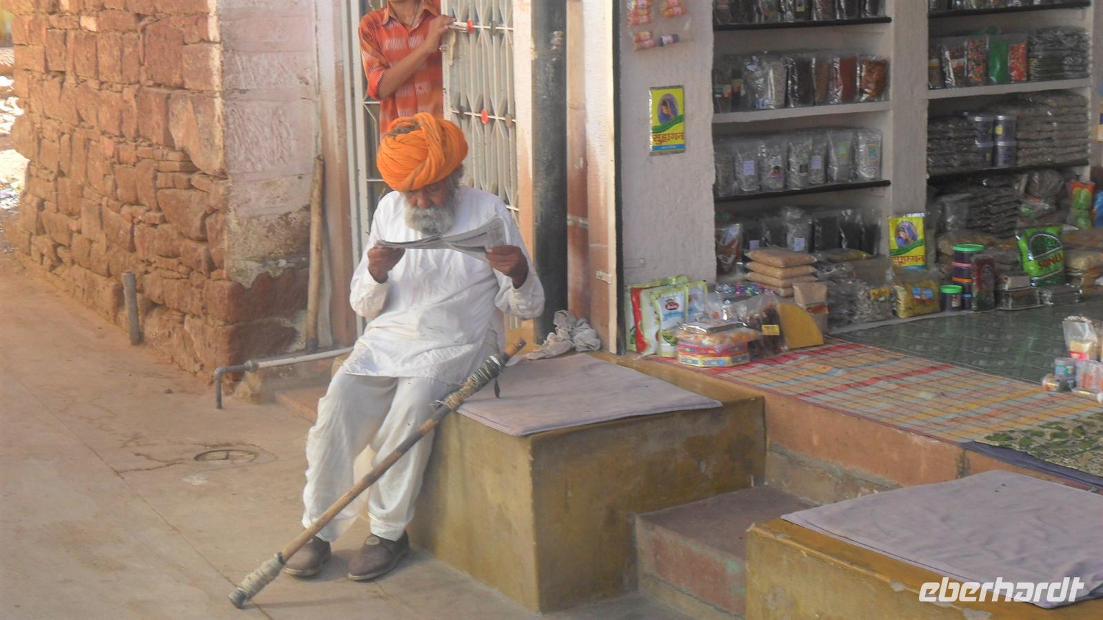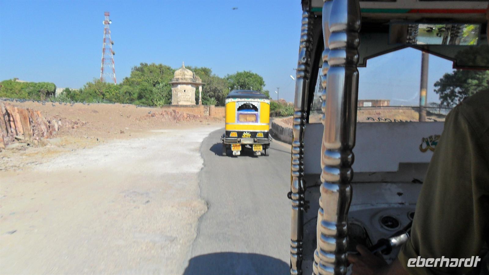 Anschließend nutzen wir das wohl interessanteste und bisher immer wieder verstohlen beobachtete indische Verkehrsmittel - per Dreiradtaxi fuhren wir vom Fort in die engen Gassen der Altstadt von Jodhpur und suchten dort zunächst einen bekannten Gewürzhändler auf. Danach spielte der wohl bunteste und vielseitigste Markt von Rajasthan eine Rolle. Mich erinnert er jedesmal an mittelalterliche Märkte in Europa bzw. unsere Vorstellung davon - bis hin zum Zahnarzt, der auf dem Markt sein „Handwerk“ ausübt, ohne Narkose Zähne zieht und sie zumeist triumphierend ausstellt. Übrigens - mein Tipp wie jedes Jahr;: auf dem Markt von Jodhpur gibt es das garantiert beste Lassi in Indien, ein traditionelles Joghurt-Milch-Getränk in vielerlei Geschmacksrichtungen, das hier z.B. mit Safran zubereitet wird.