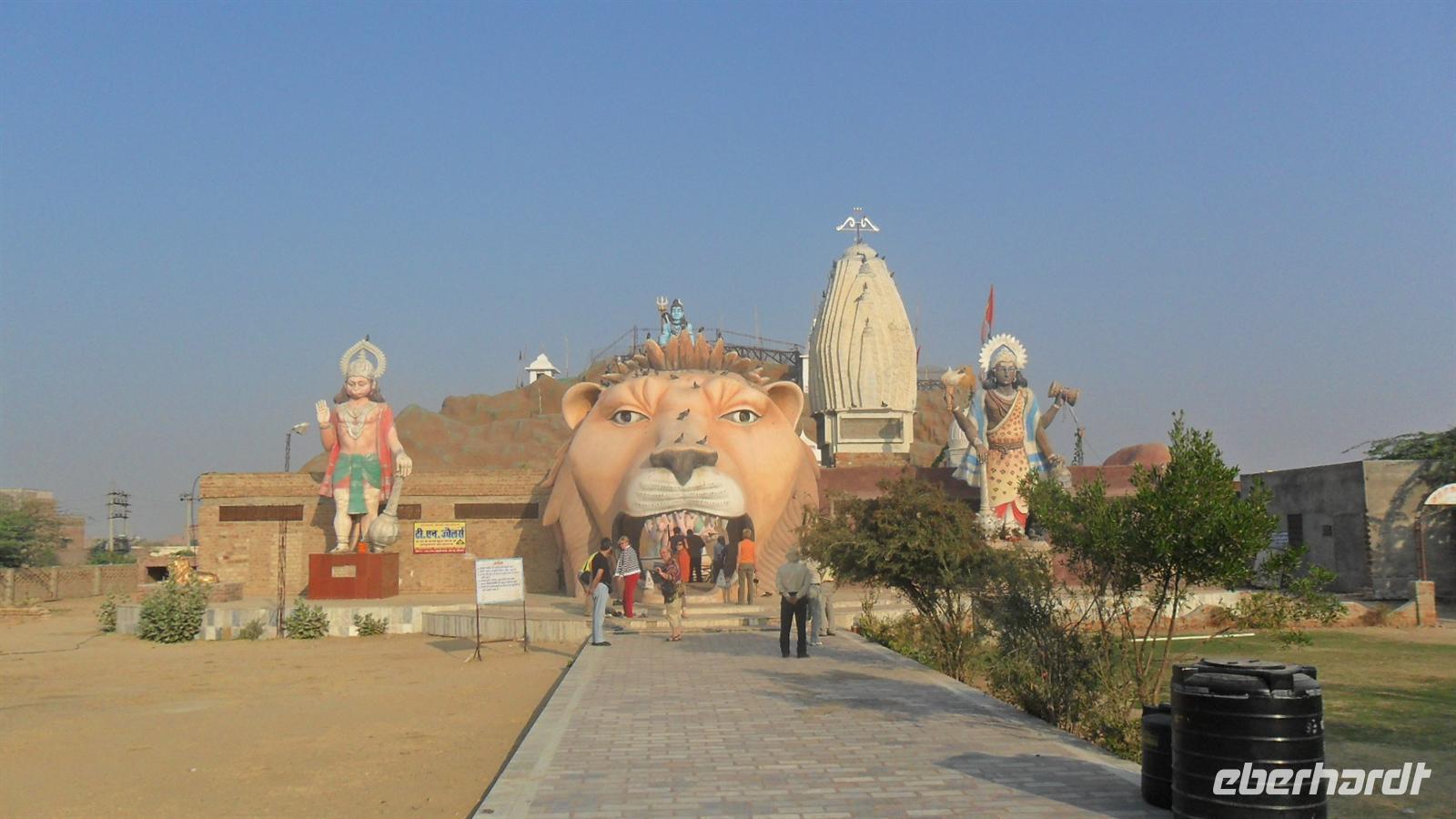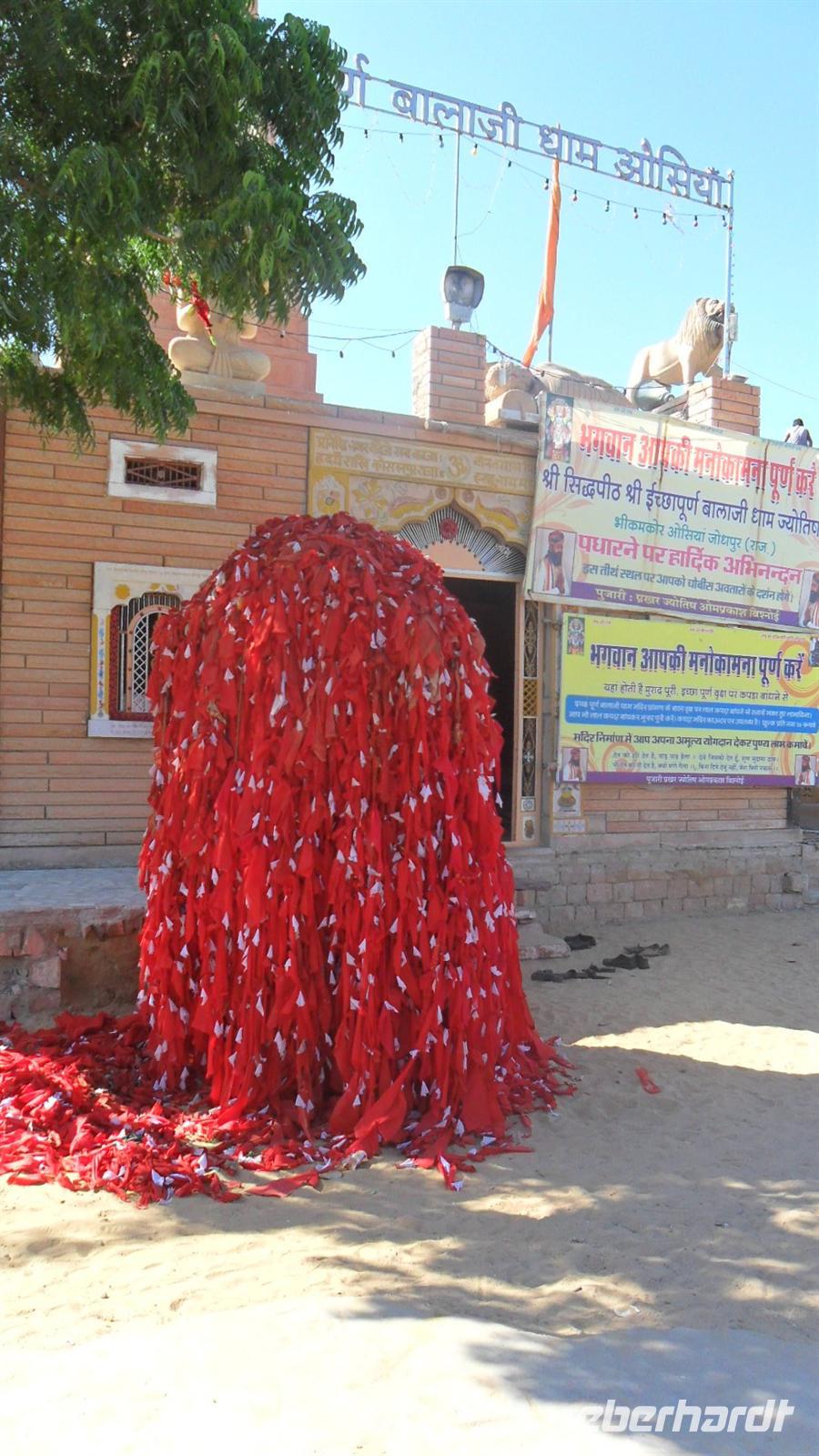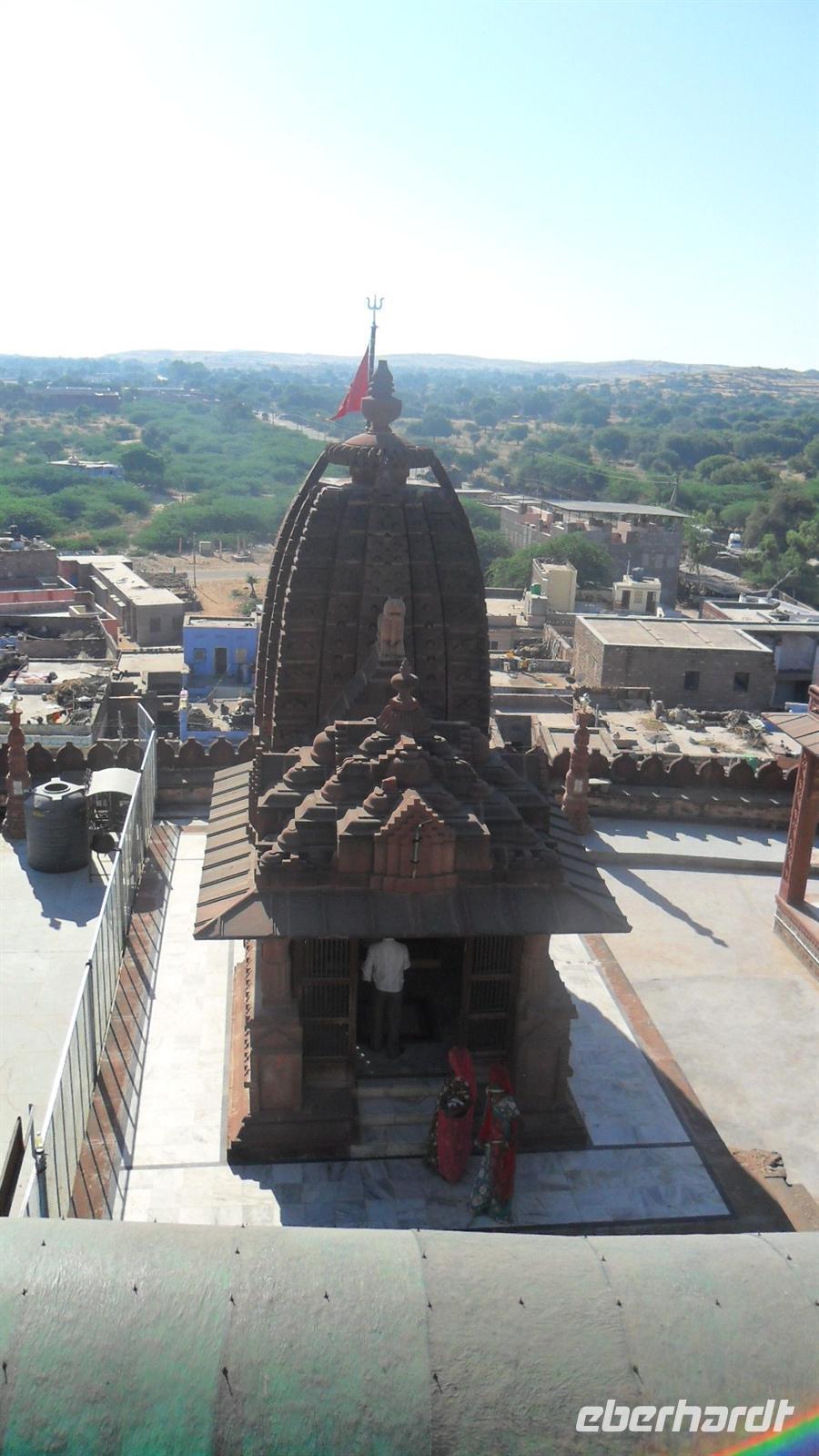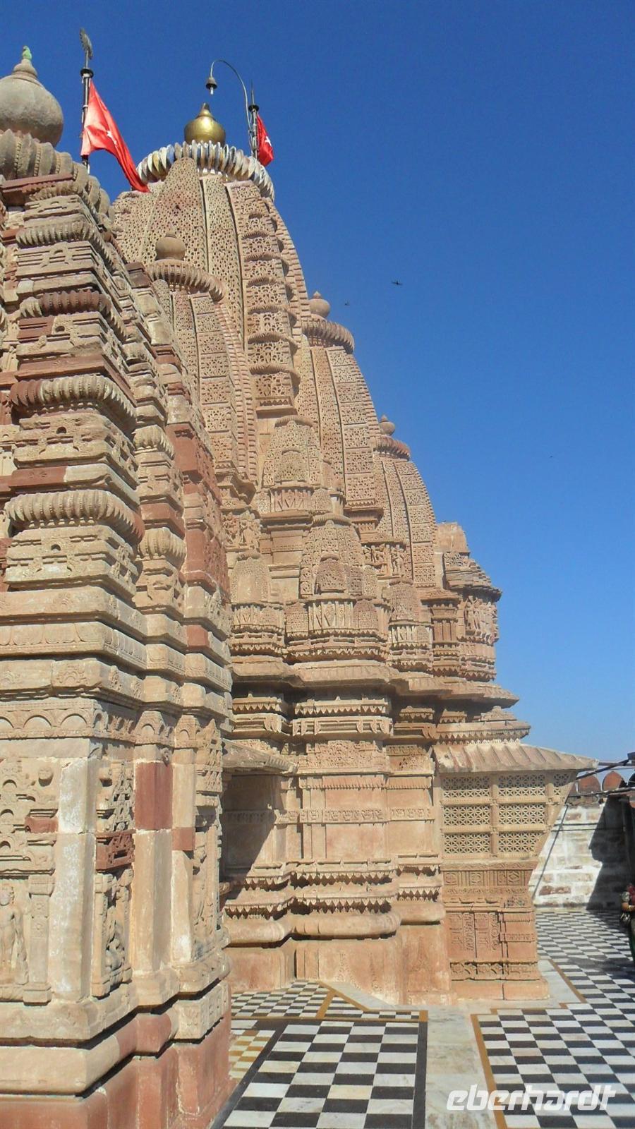 Der neunte Reisetag war wieder mit einer längeren Strecke verbunden. Nach knapp zwei Stunden Fahrt erreichten wir die berühmten Tempel von Osyan. Hier sieht man mehrere kleine, schon um 800 n.Chr. errichteten Sandsteintempel, z.B. für den Sonnengott Indra aus errichtet und inzwischen aufgegeben. Verlassen aber zugänglich stehen die alten Bauwerke an der Straße. Ganz anders der gewaltige aktive Pilgertempel, die mehrmals im Jahr hunderttausende Besucher erlebt. Der Einrichtungen um die Tempel herum - inklusive der zahlreichen Verkaufsstände für Opfergaben - ermöglichen es, sich ziemlich genau den Ablauf einer indischen Pilgerfahrt vorzustellen.