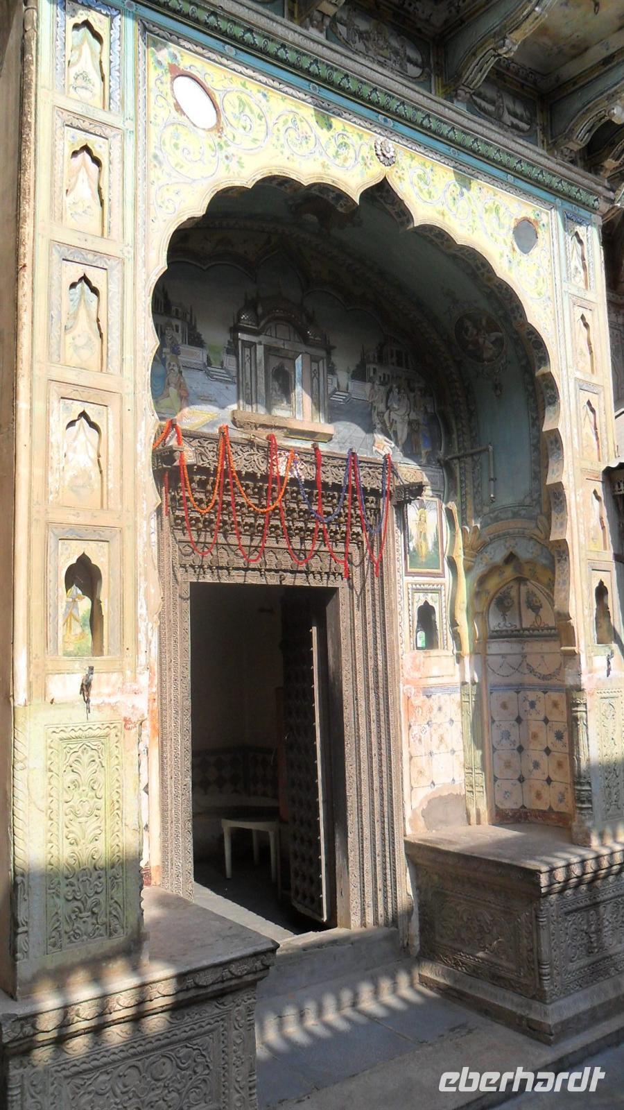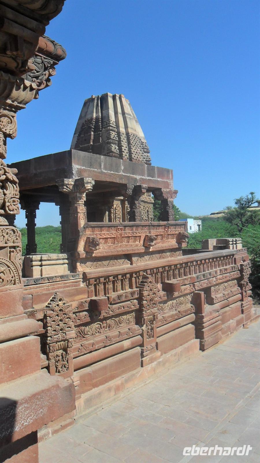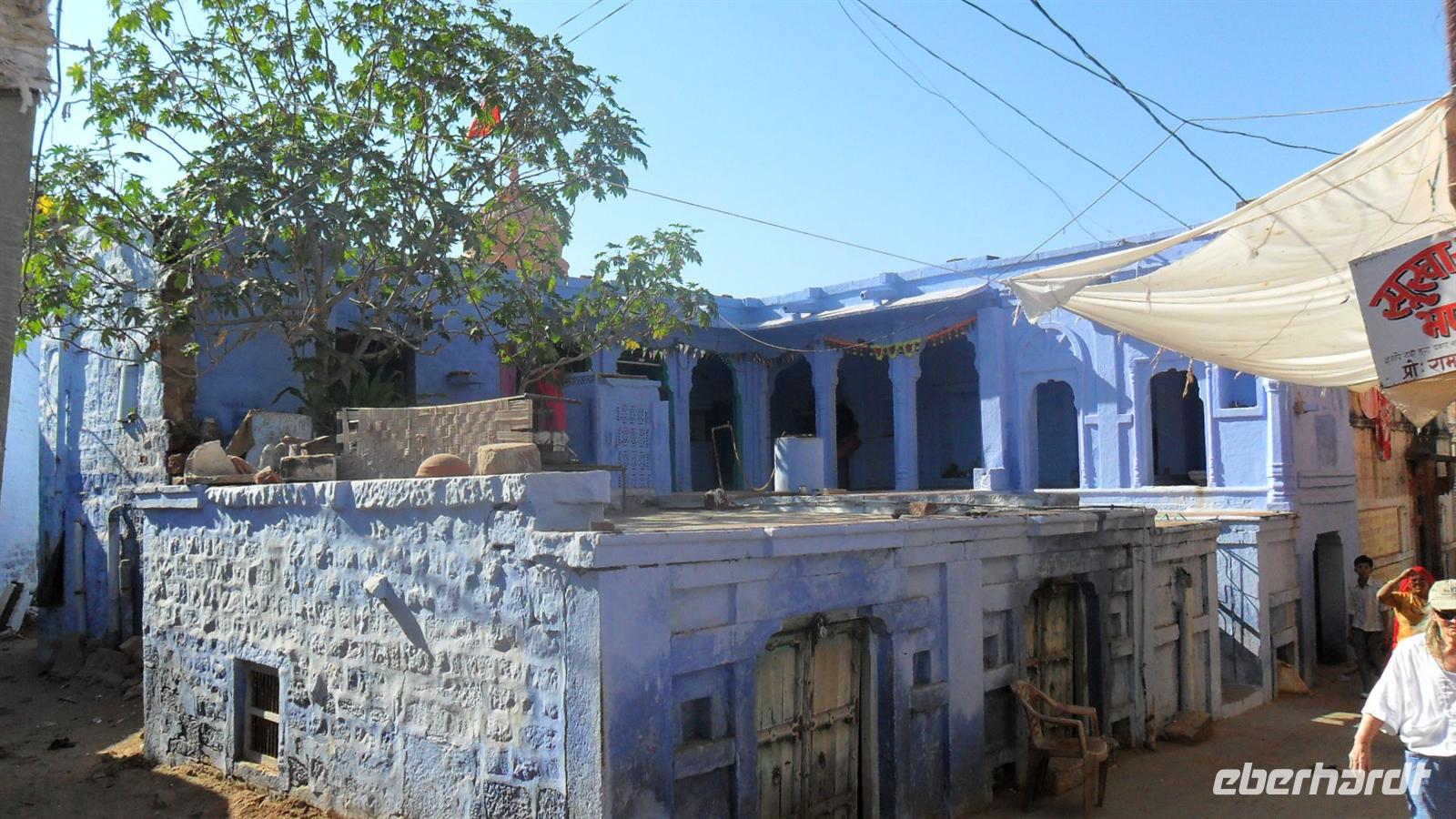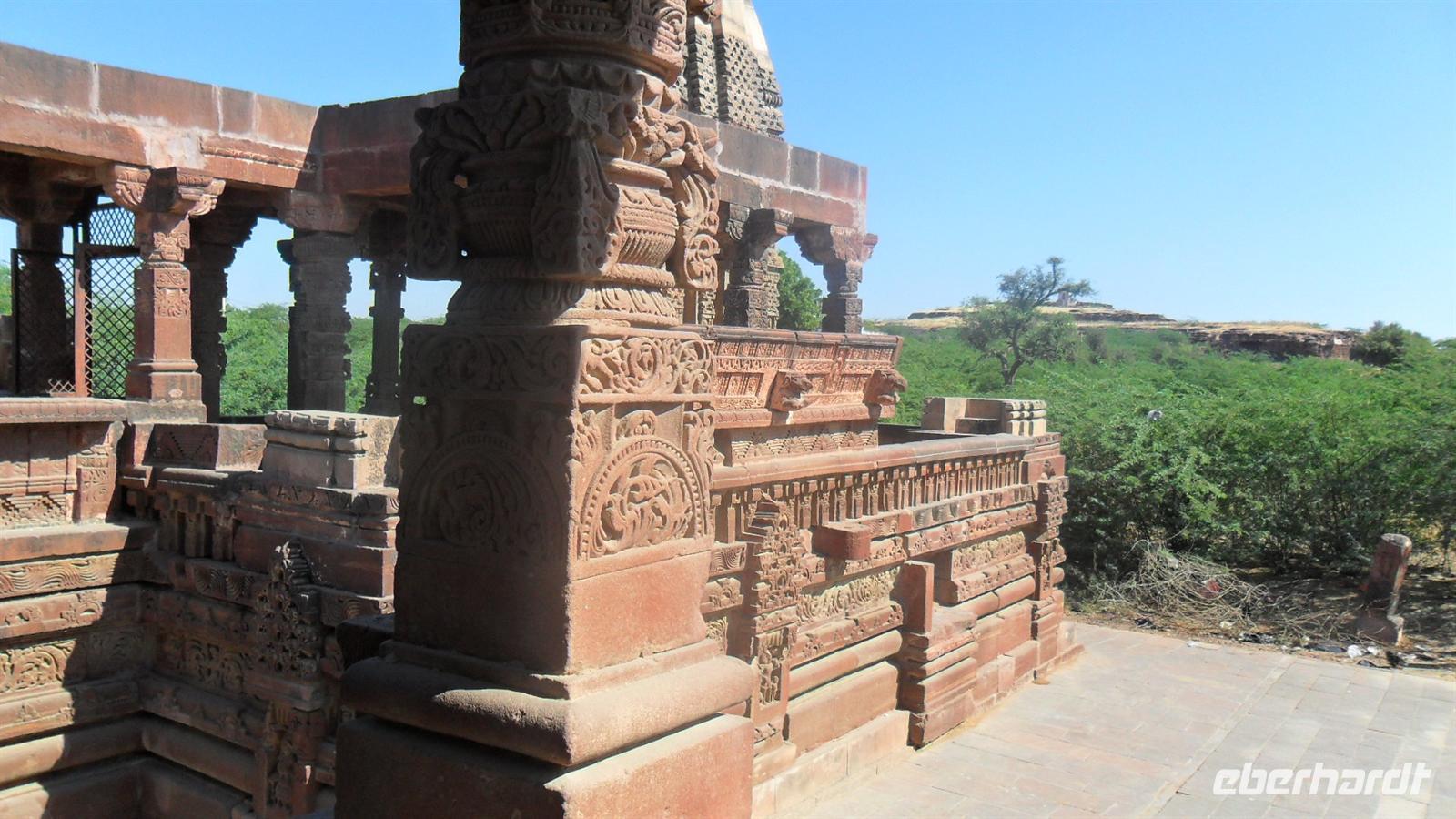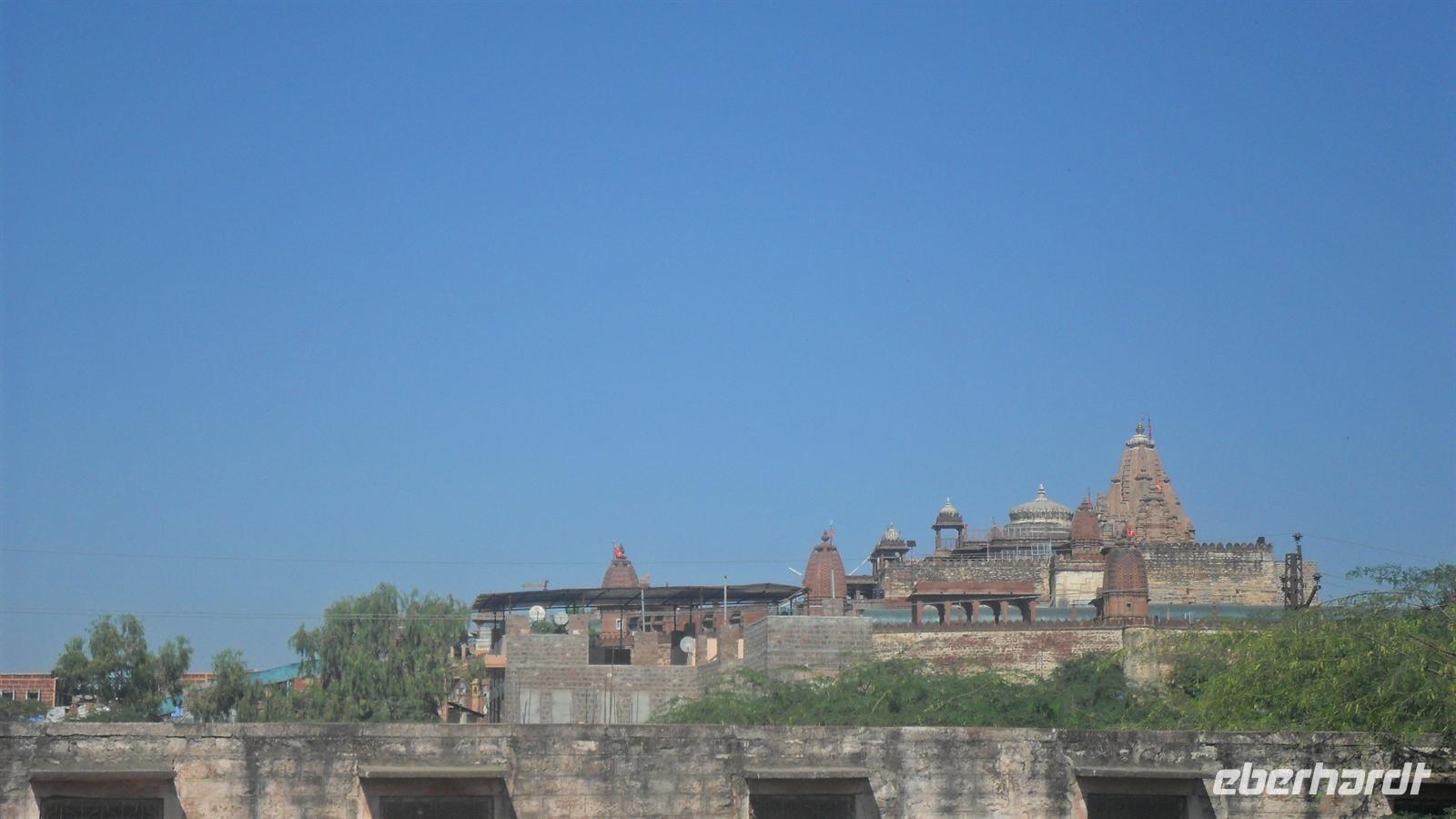 Der neunte Reisetag war wieder mit einer längeren Strecke verbunden. Nach knapp zwei Stunden Fahrt erreichten wir die berühmten Tempel von Osyan. Hier sieht man mehrere kleine, schon um 800 n.Chr. errichteten Sandsteintempel, z.B. für den Sonnengott Indra aus errichtet und inzwischen aufgegeben. Verlassen aber zugänglich stehen die alten Bauwerke an der Straße. Ganz anders der gewaltige aktive Pilgertempel, die mehrmals im Jahr hunderttausende Besucher erlebt. Der Einrichtungen um die Tempel herum - inklusive der zahlreichen Verkaufsstände für Opfergaben - ermöglichen es, sich ziemlich genau den Ablauf einer indischen Pilgerfahrt vorzustellen.