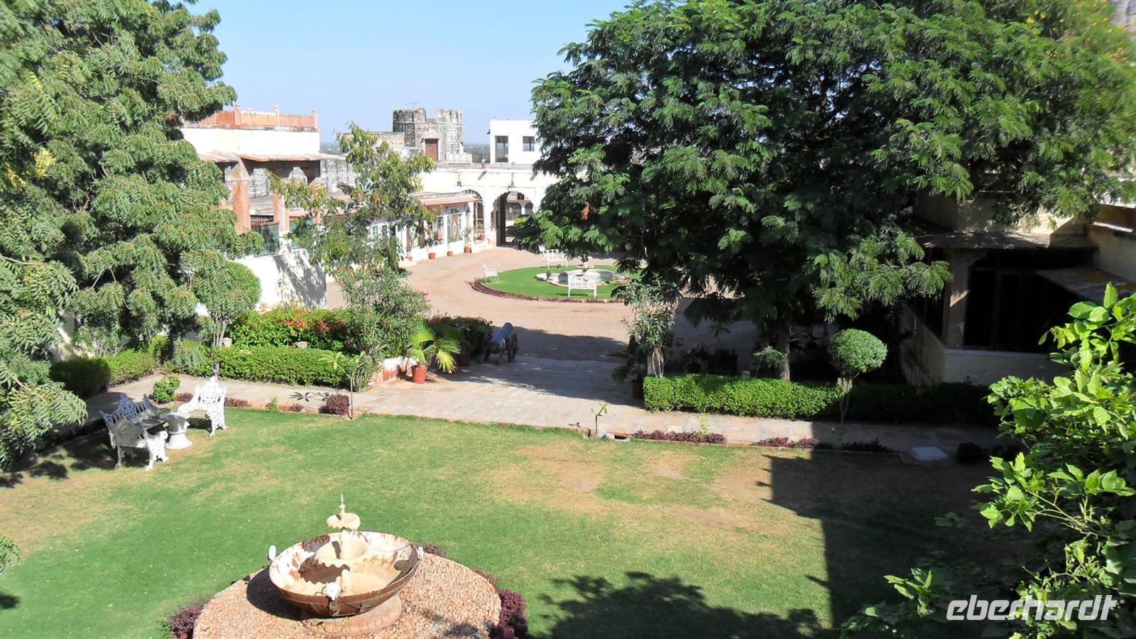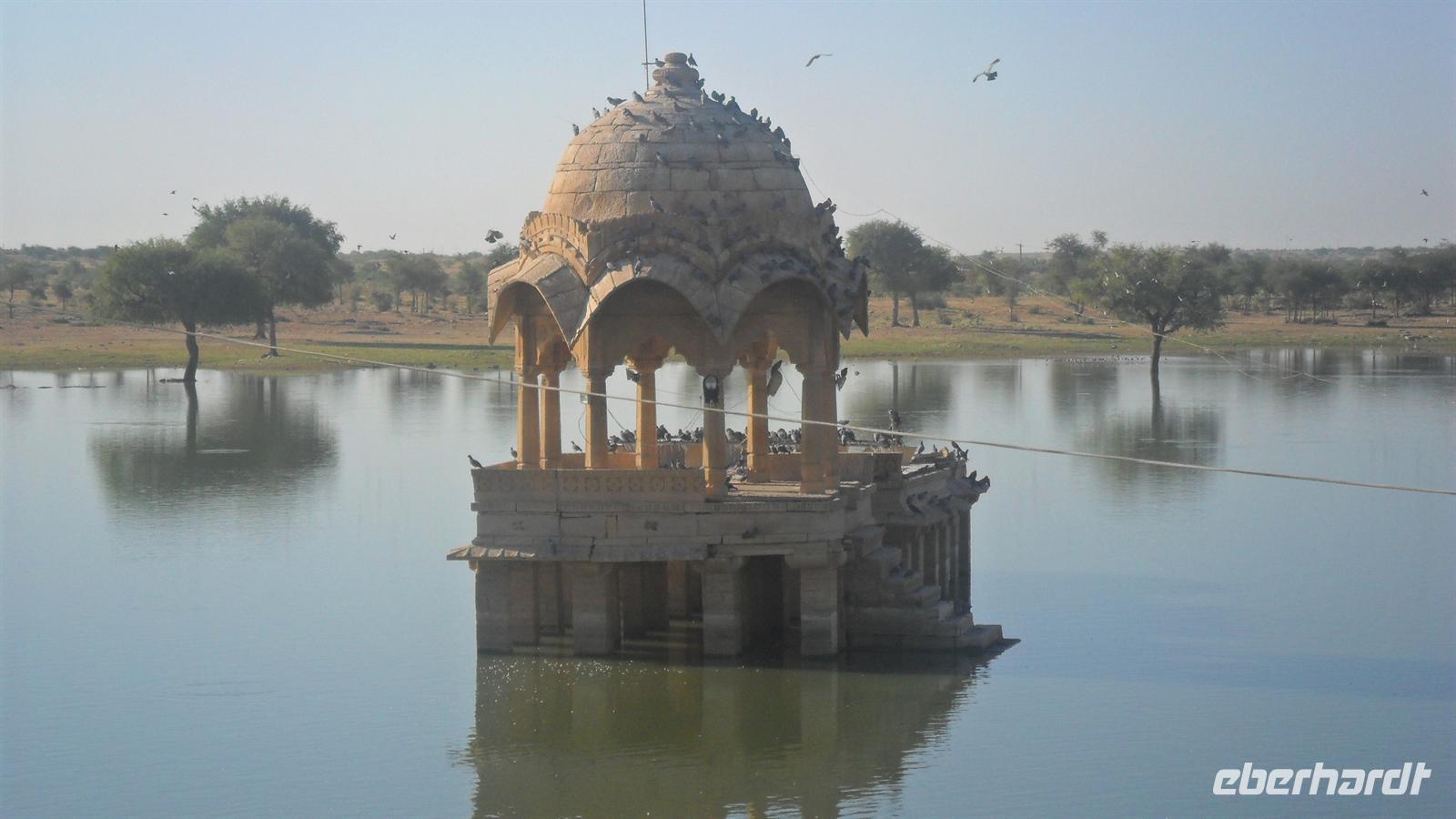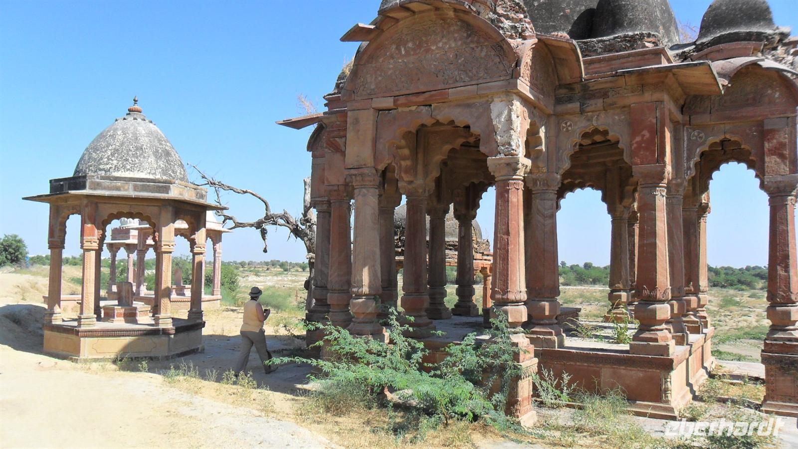 Nach mehreren anstrengenden (und mitunter auch recht langen) Reisetagen hat man sich zwar inzwischen an Indien „gewöhnt“, aber zur Entspannung tut ein Tag zur freien Verfügung ganz gut. Für alle die, die noch etwas mehr vom ländlichen Indien sehen und erkunden wollten, wurde eine halbtägige Jeepsafari angeboten. Die Gäste, die teilnahmen, wurden nicht enttäuscht: Ein Tempel am See, ein sogenanntes „Opiumdorf“ des alten Volksstammes der Bishnoi und die traditionellen Verbrennungsstätten der Familie des Rajas von Khejrela gehörten ebenso zum Halbtagesprogramm wie das als Picknick organisierte Mittagessen an einem Felsenheiligtum. Den Rest des Tages verbrachten wir erholsam und wohl auch ein bisschen faulenzend am Pool.