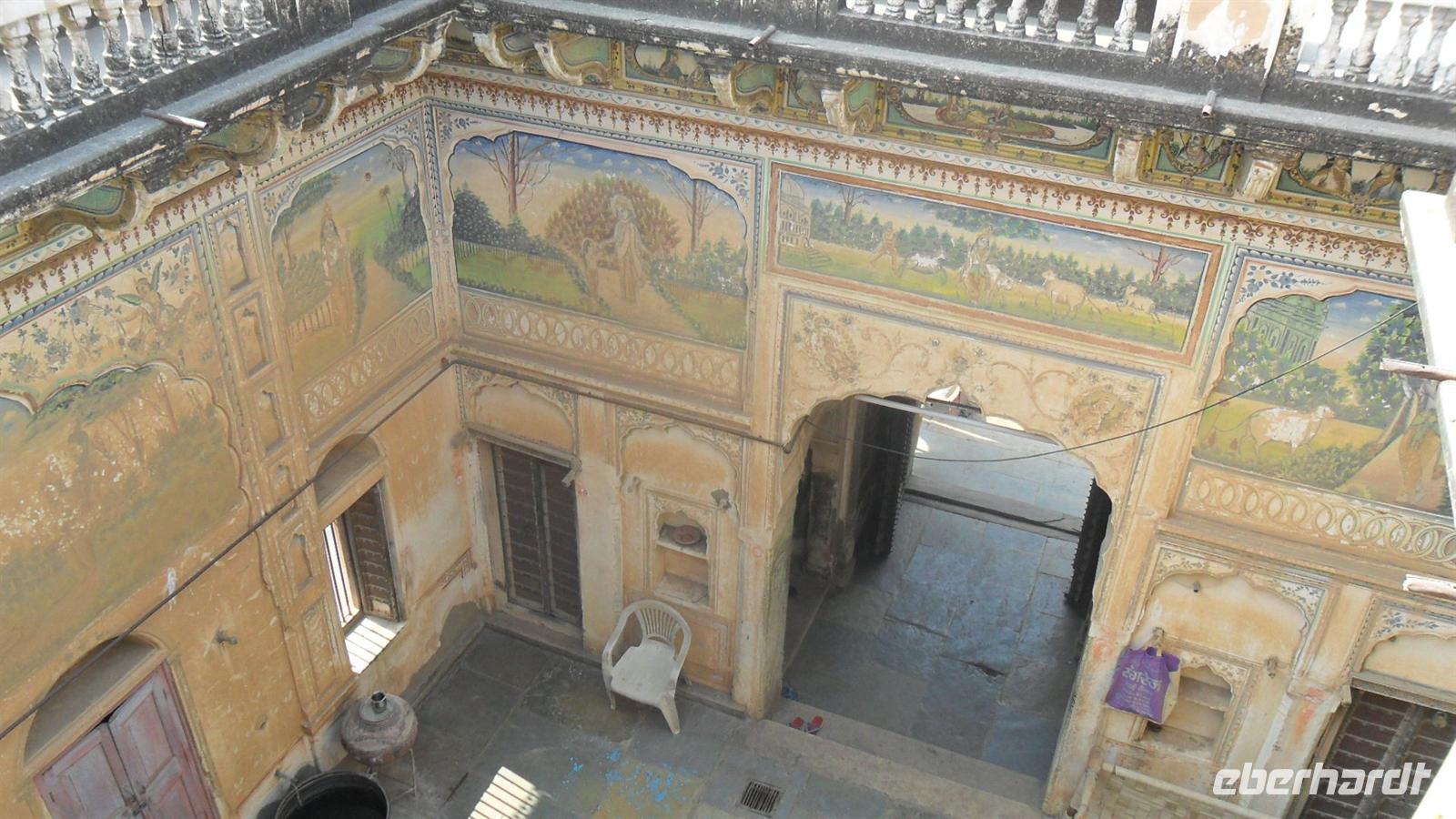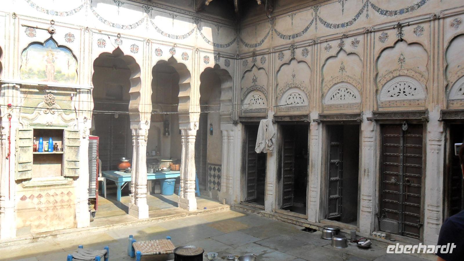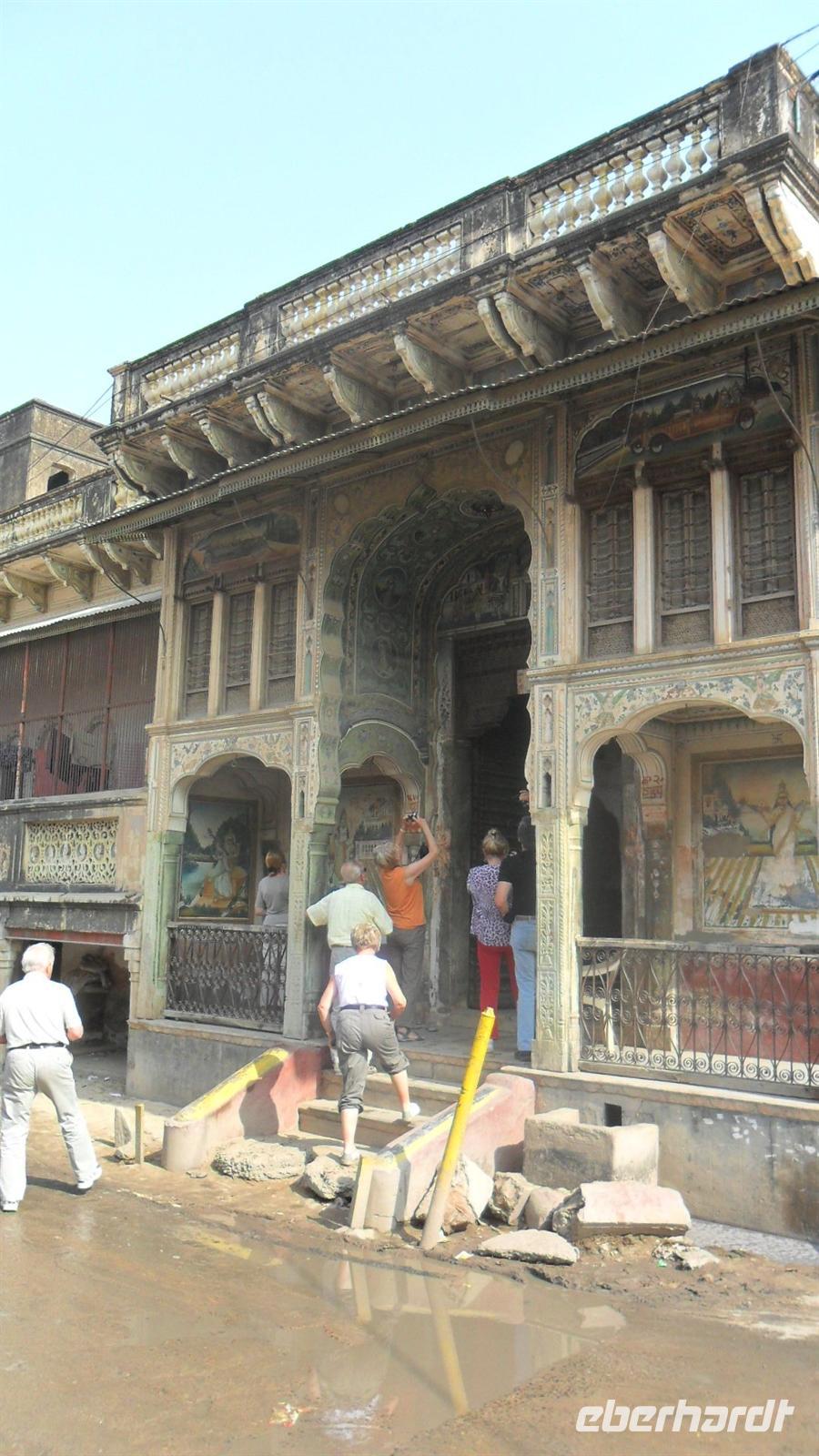 Der zwölfte Reisetag führte uns bereits wieder auf den Weg nach Delhi zurück. Die Strecke nach Jaipur ist lang, und eigentlich waren für heute keine Besichtigungen mehr vorgesehen, da wir das Junargarh Fort am Vortage gesehen hatten. Allerdings war Zeit für ein „Richtig Reisen!“ Extra: wir legten einen kleinen Bummel mit längerem Fotostopp in Fatehpur ein. Die Stadt mit ihren verwinkelten engen Gassen liegt im „Shekawati“-Gebiet und ist für bemalte Händlerhäuser - „Havelis“ - bekannt. Meist verlassen oder nur noch von Verwalterfamilien bewohnt, zeigen die alten Paläste aber noch einen Abglanz einstiger Pracht. Später erreichten wir dann Jaipur. Das Abendessen nahmen wir in einem renommierten Restaurant ein, untermalt von Musik- und Tanzdarbietungen.