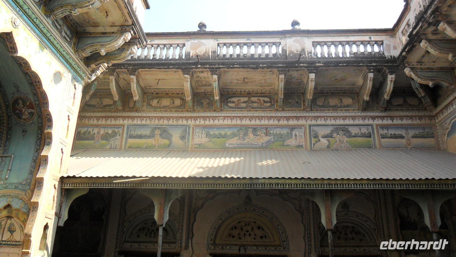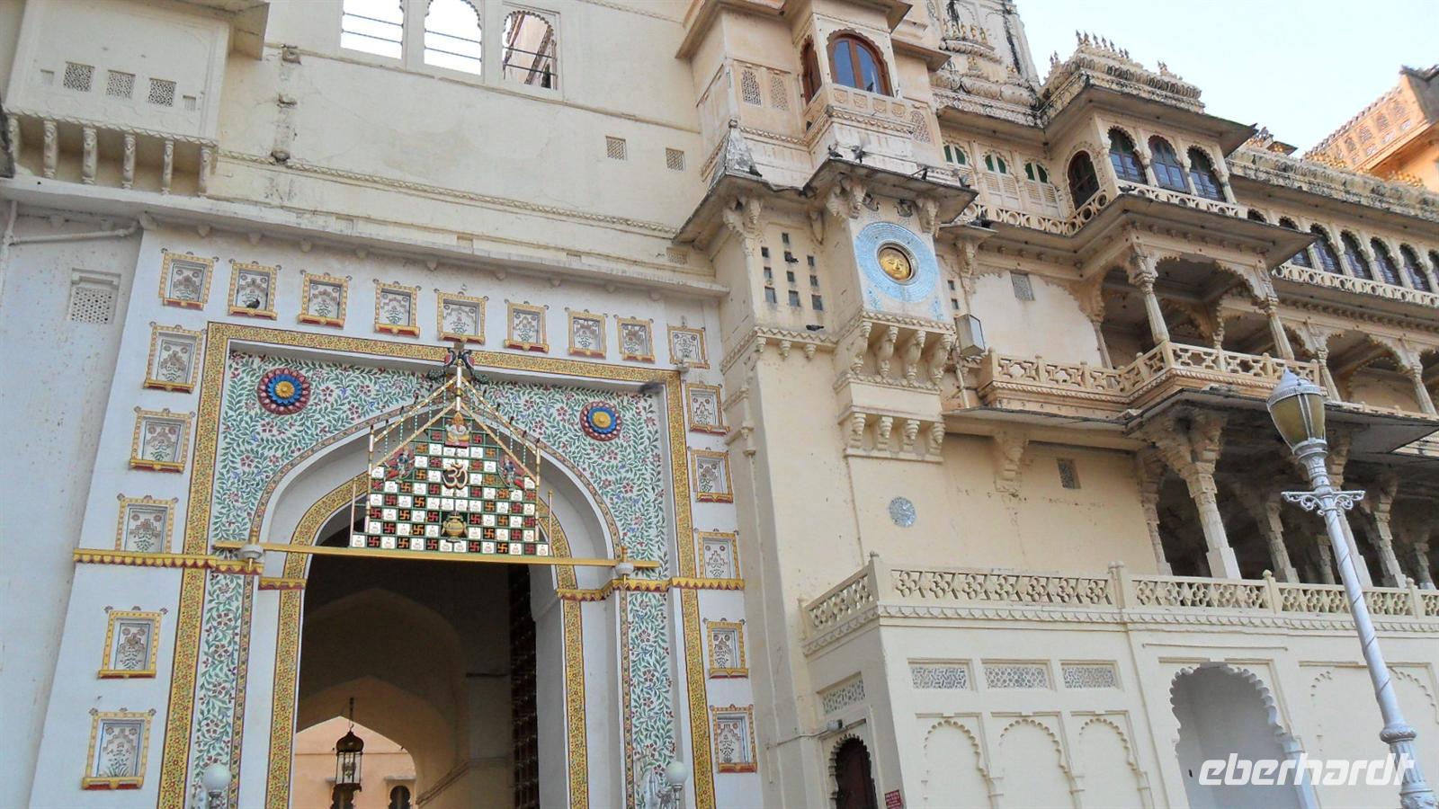 So bildete die Besichtigung der Thronsäle, Frauengemächer, Tempel und Innenpaläste des Palastes von Udaipur den Höhepunkt des Tages. innerhalb des Hauses bilden der Audienzsaal und verschachtelte Höfe das „Innenleben“ eines der größten Indischen Stadtpaläste und zeugen von Reichtum und Macht des Maharadschahs, der hier, im ehemaligen Land Mehwar, übrigens „Maharana“ genannt wird. Seine Stadt Udaipur und sein Reich von Mehwar wichen einst der Mogulherrschaft nicht ohne Kampf - eine reichhaltige Waffensammlung zeugt davon! Nach dem Palastbesuch gab es zum Tasgesausklang noch einen interessanten Besuch in einer der traditionellen Malschulen von Udaipur. Ein besonderes Erlebnis ist es, die Künstler, die bekannt sind für Ihre Detailtreue, die Nutzung selbst hergestellter Farben aus Mineralien und die Bewahrung der Überlieferung uralter Maltradition, bei ihrer Arbeit zu beobachten. Jede Schule in Udaipur hat ihr „nie gelüftetes Geheimnis“ der Farbherstellung und der Auswahl traditioneller Motive. Wir lernten auch, in welchen Etappen die immer wiederkehrenden „klassischen Motive“ entstehen und wie man verblüffende Effekte mit der Wahl unterschiedlicher Mal-Untergründe erzielt: neben Seidenmalerei kann man hier Papiergemälde (ausgeführt auf alten Koranseiten), Miniaturen auf Kamelknochen oder auf effektvoll durchscheinenden Marmorplatten erwerben.