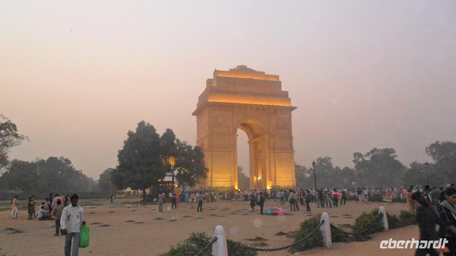 Von hier brachte uns der Bus nioch zum India Gate, wo wir den letzten Sonnenuntergang in Indien inmitten zahlloser indischer Familien und umgeben vom Stimmengewirr der Händler und Anbieter verbringen konnten - Abschiedsstimmung in Delhi!