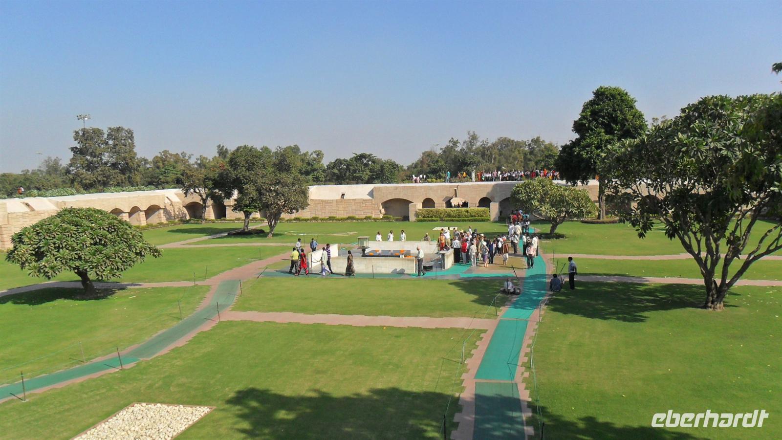 Danach fuhren wir, wie erwähnt, zum Rajghat. Diese Gedenkstätte befindet sich an der rituellen Verbrennungsstätte des Gründers der Indischen Union, Mahatma Ghandi. Der „Vater der Nation“ genießt bis heute große Verehrung und auch wir zollen ihm bei jeder Reise unseren Respekt, wenn wir sein Ehrenmal besuchen.
