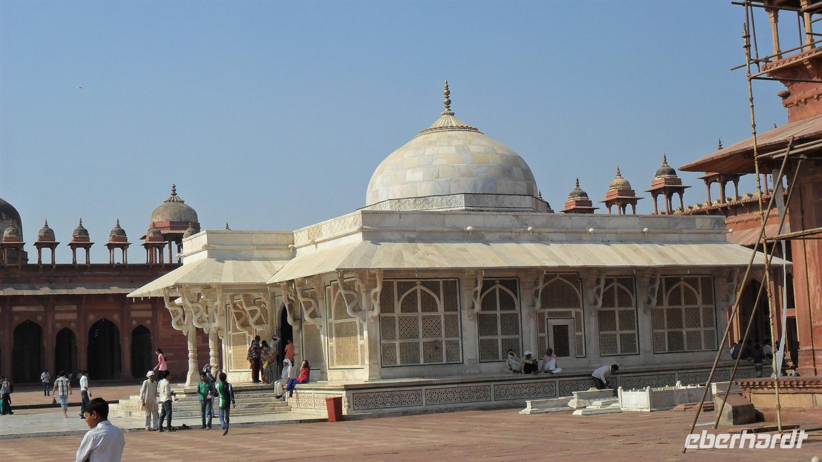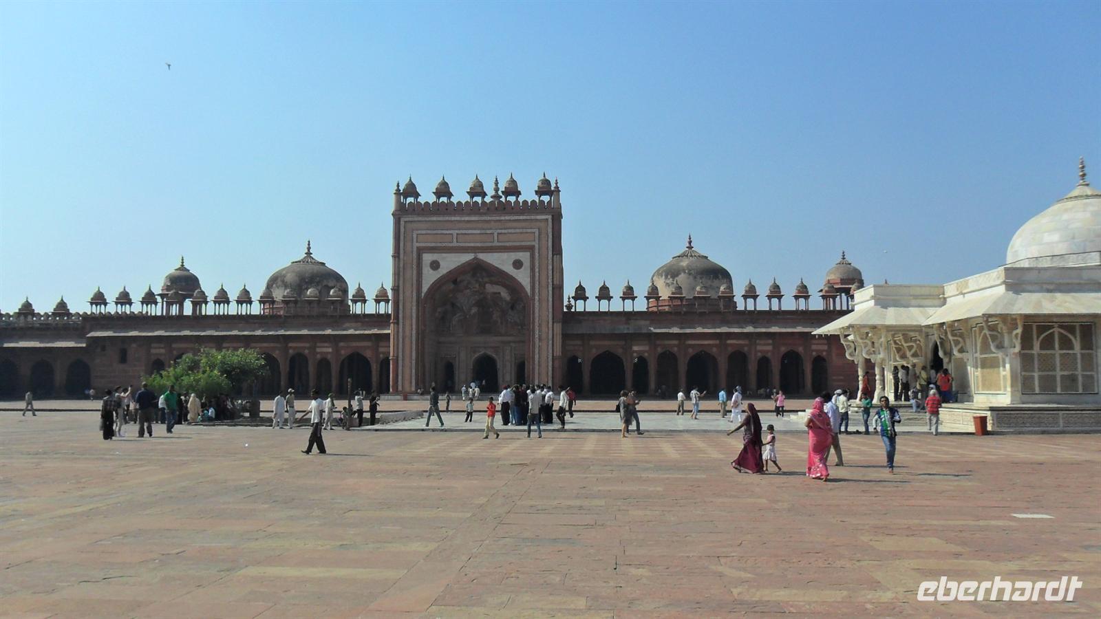 Auch der religiöse Bezirk mit Siegestor, Moschee und strahlend weißem Marmorgrabmnal ist eine Attraktion in Fatehpur Sikri.