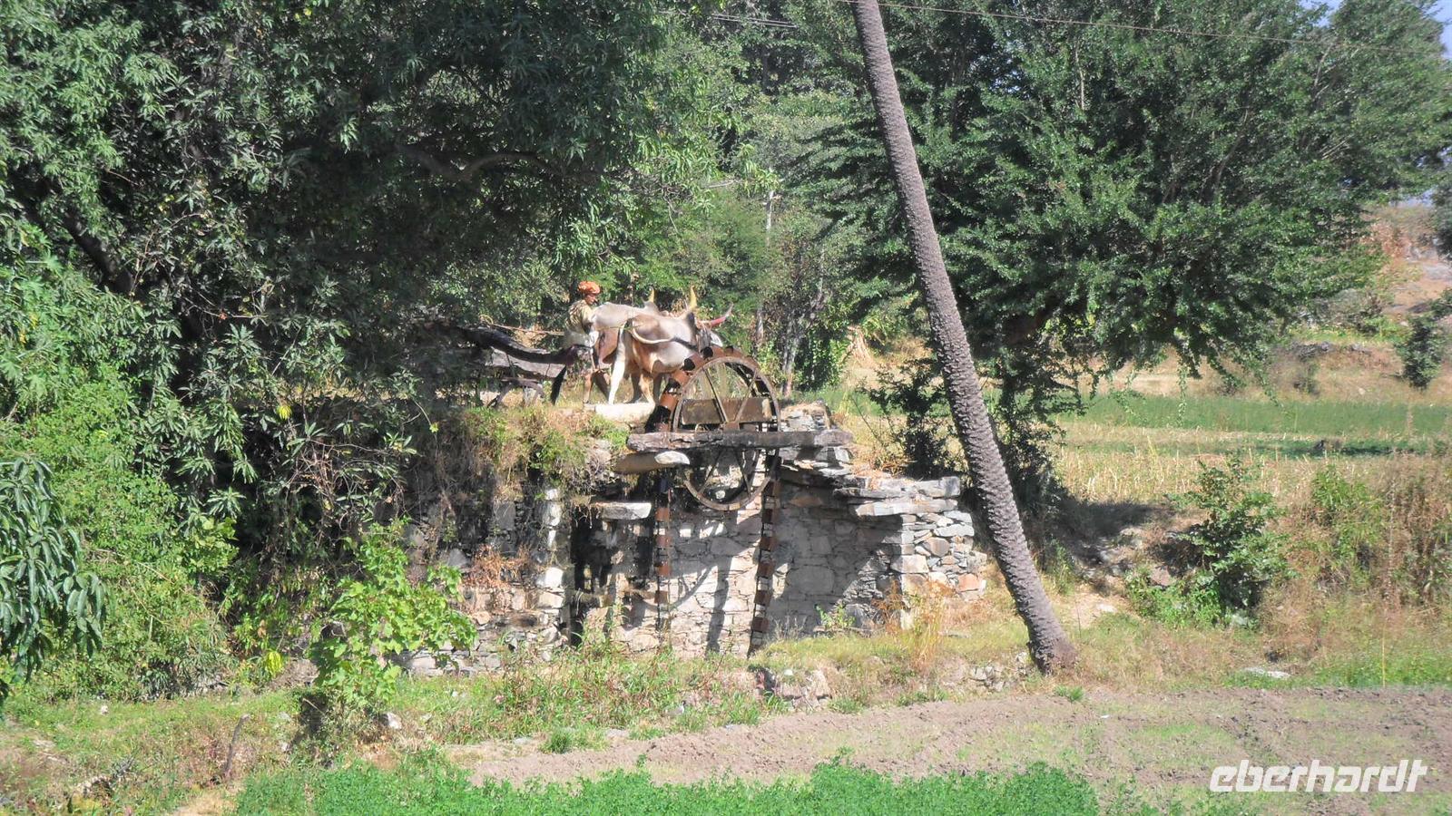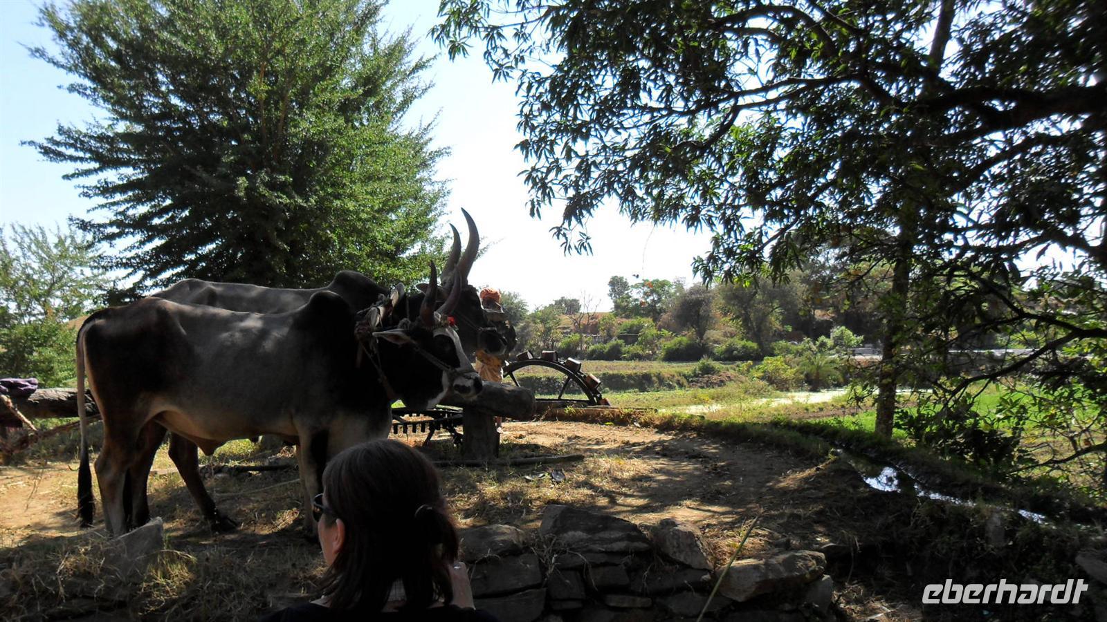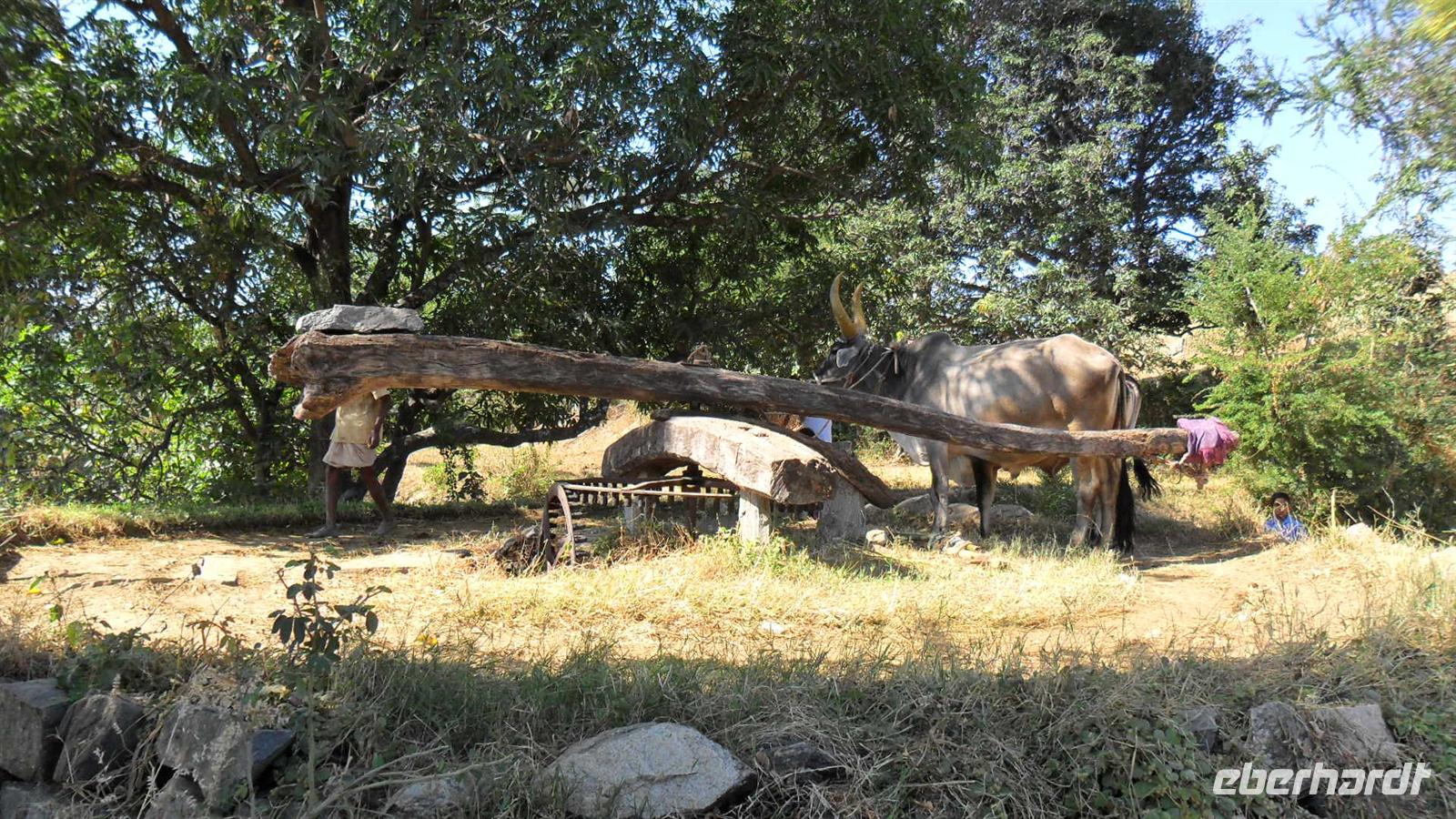 Nach der Bootsfahrt setzten wir die Indien-Tour im Bus fort - nach Ranakpur mit Fotostopps an den historischen Wasserschöpf-Anlagen im interessanten Aravalli-Gebirge und an einem Baum, in dem tagsüber zahlreiche Flughunde von ihren nächtlichen Aktivitäten ausruhen.