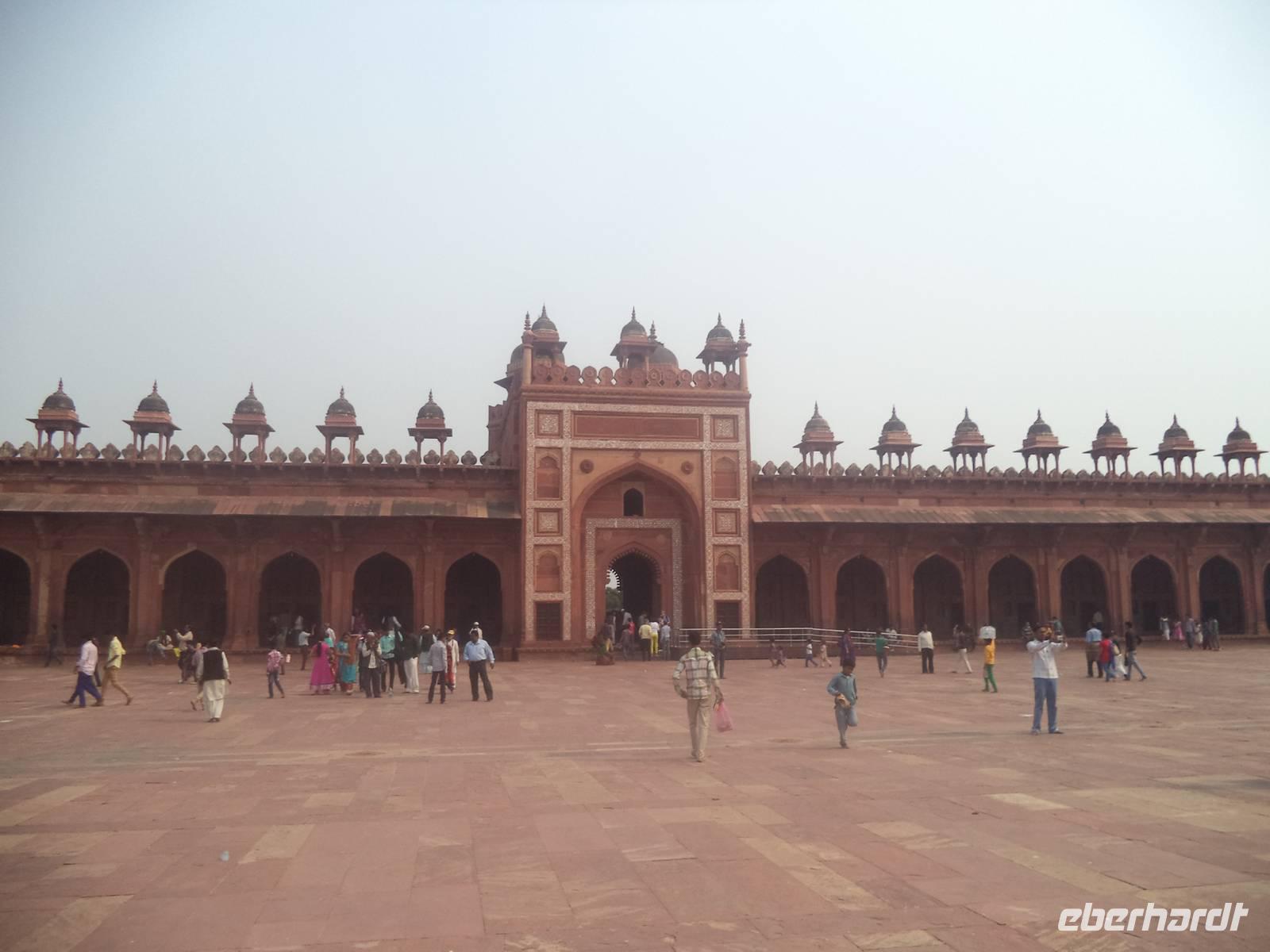 Auch der religiöse Bezirk von Fathepur Sikri, der Indiens höchstes je gebautes Siegestor enthält und neben einer Moschee mitten im Hof ein strahlend weißes Marmor-Mausoleum für einen berühmten Sufi-Heiligen beherbergt, war Ziel unserer Besichtigung.