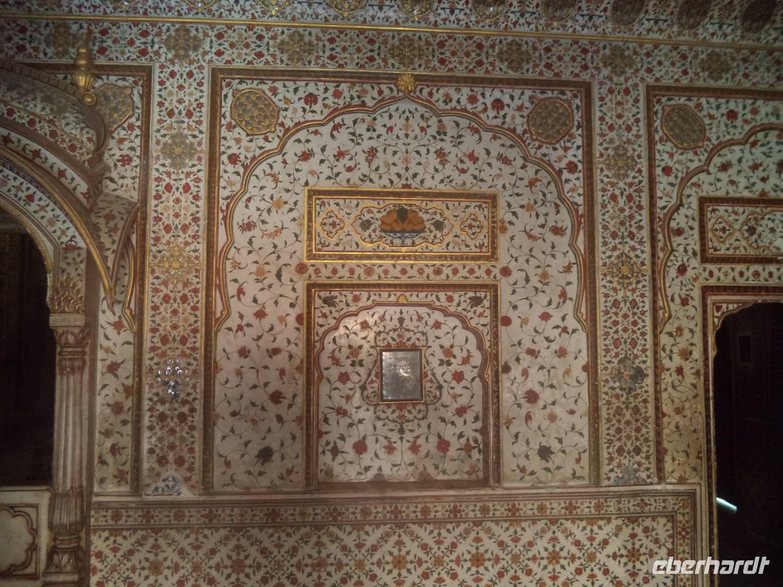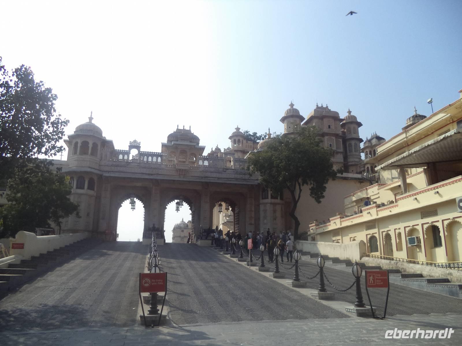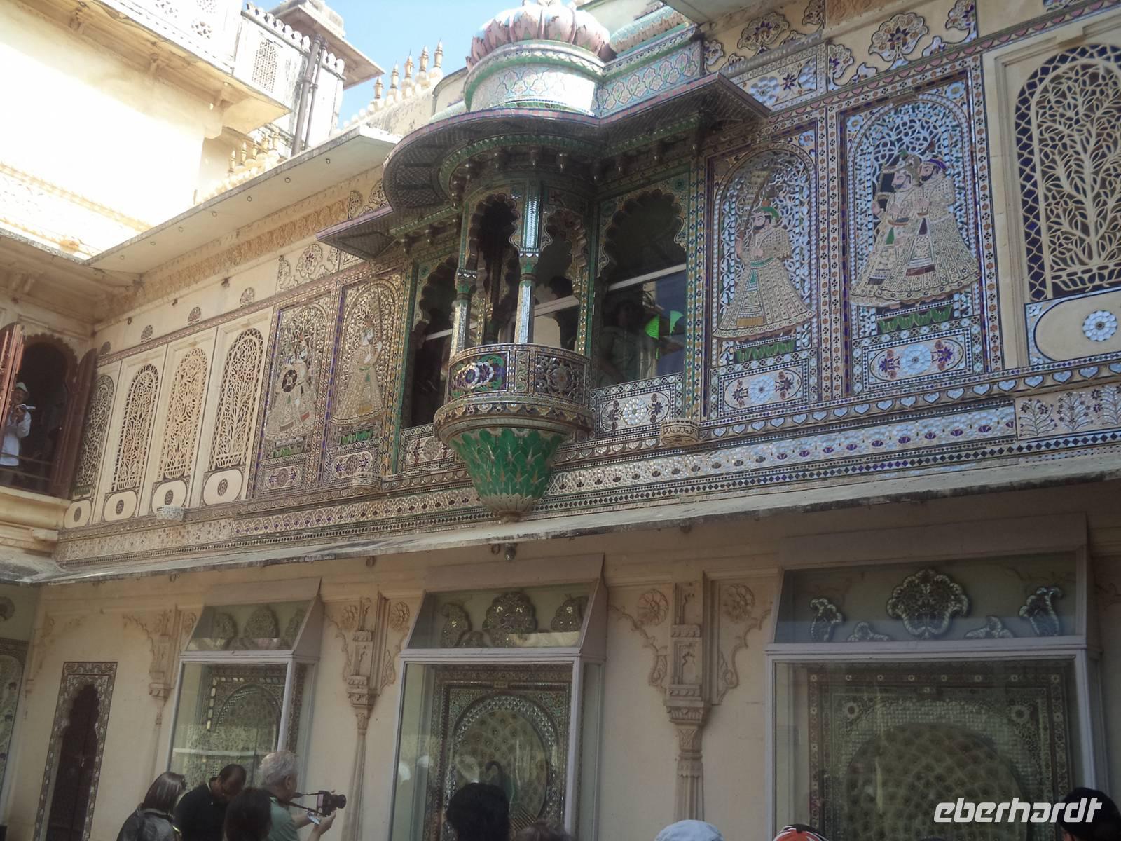 Wesentlich jünger ist der Stadtpalast, teilweise noch vom Maharaja bewohnt und erst vor etwa 120 Jahren erbaut. Wir haben den traditionell gestalteten Palast, der heute auch Schauräume und Museen enthält, zum Abschluss noch besucht.