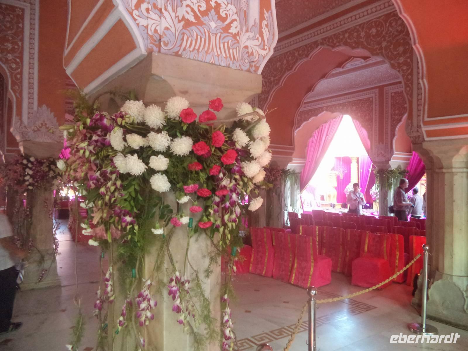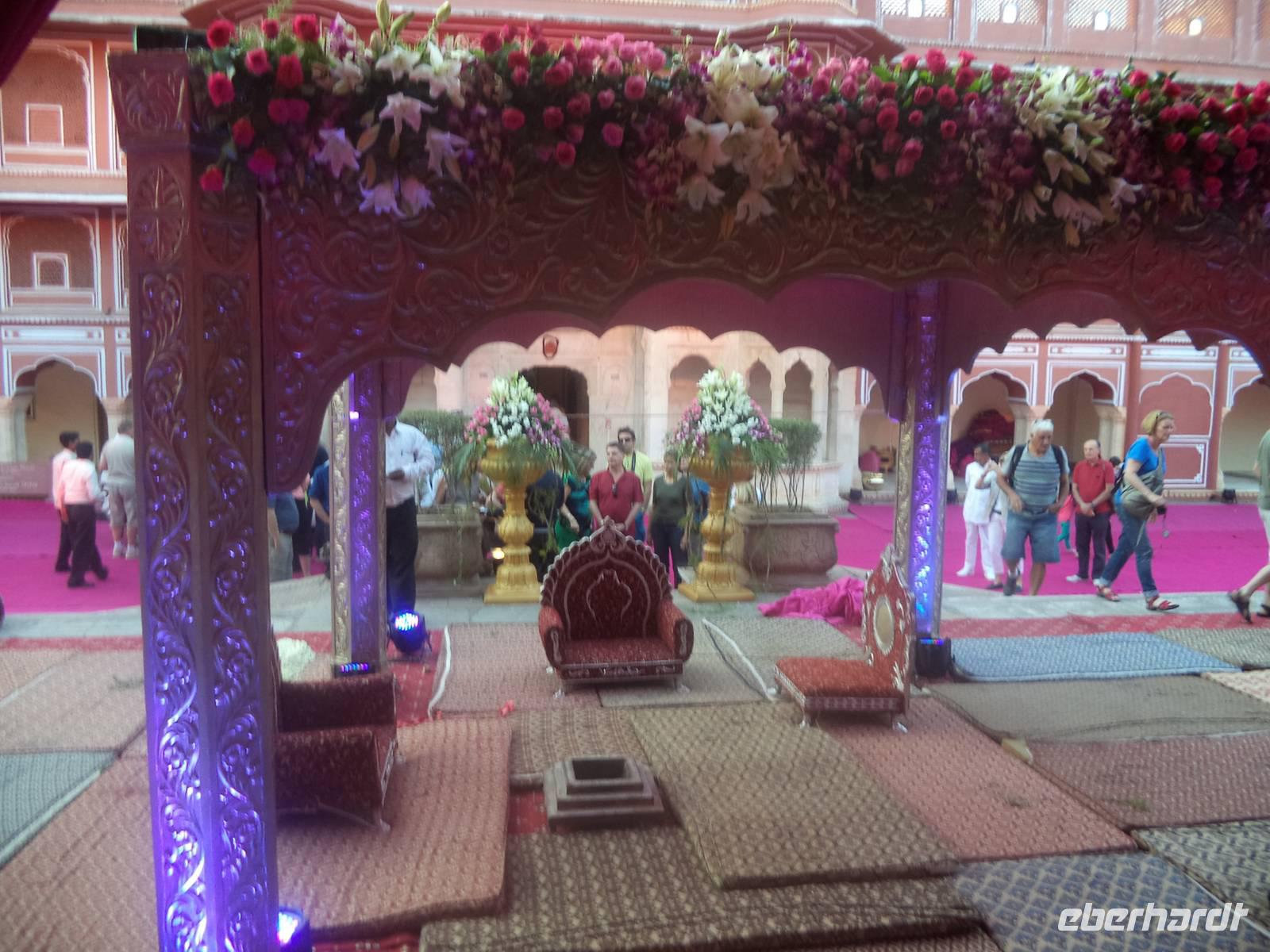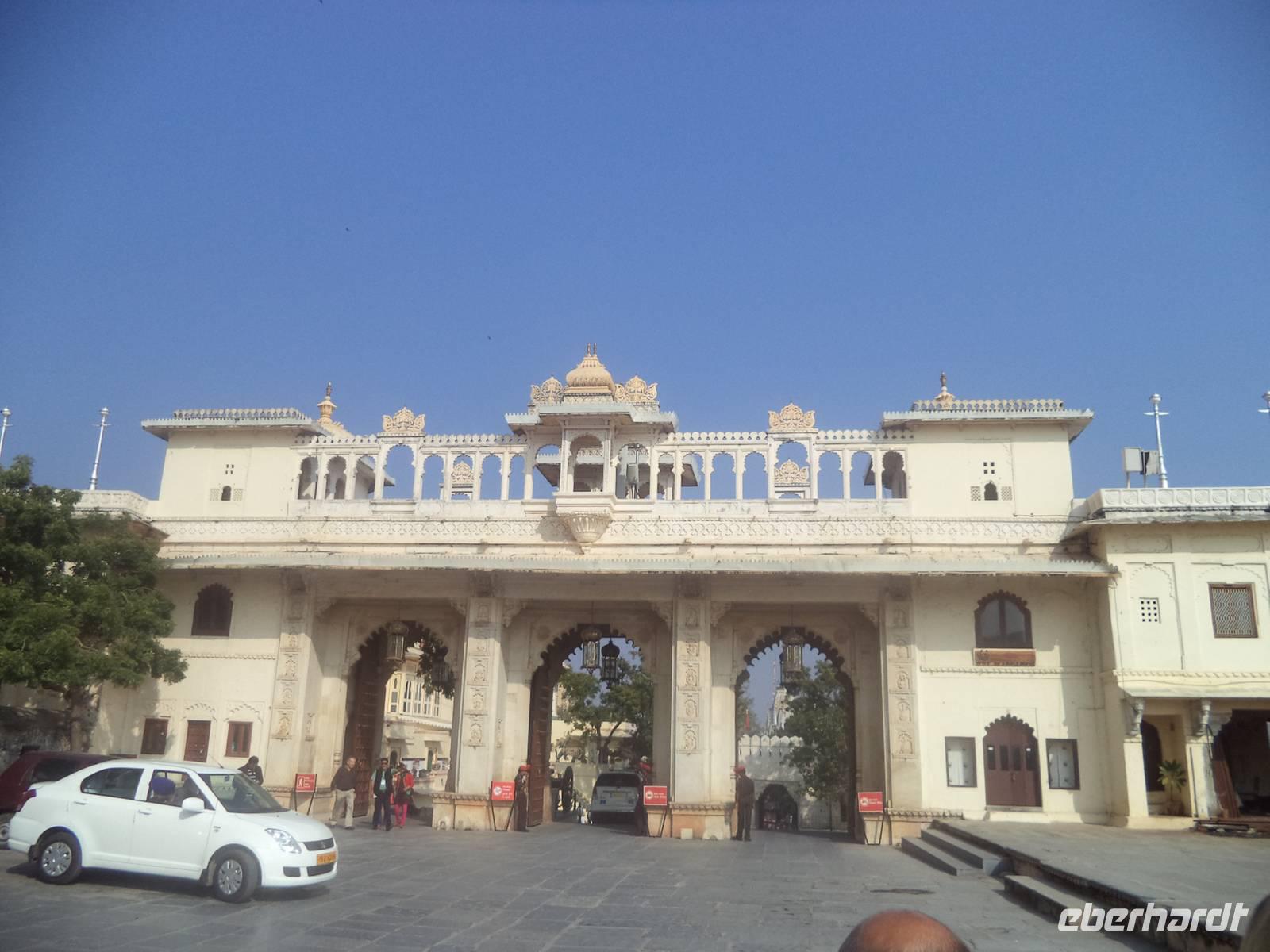 Wesentlich jünger ist der Stadtpalast, teilweise noch vom Maharaja bewohnt und erst vor etwa 120 Jahren erbaut. Wir haben den traditionell gestalteten Palast, der heute auch Schauräume und Museen enthält, zum Abschluss noch besucht.