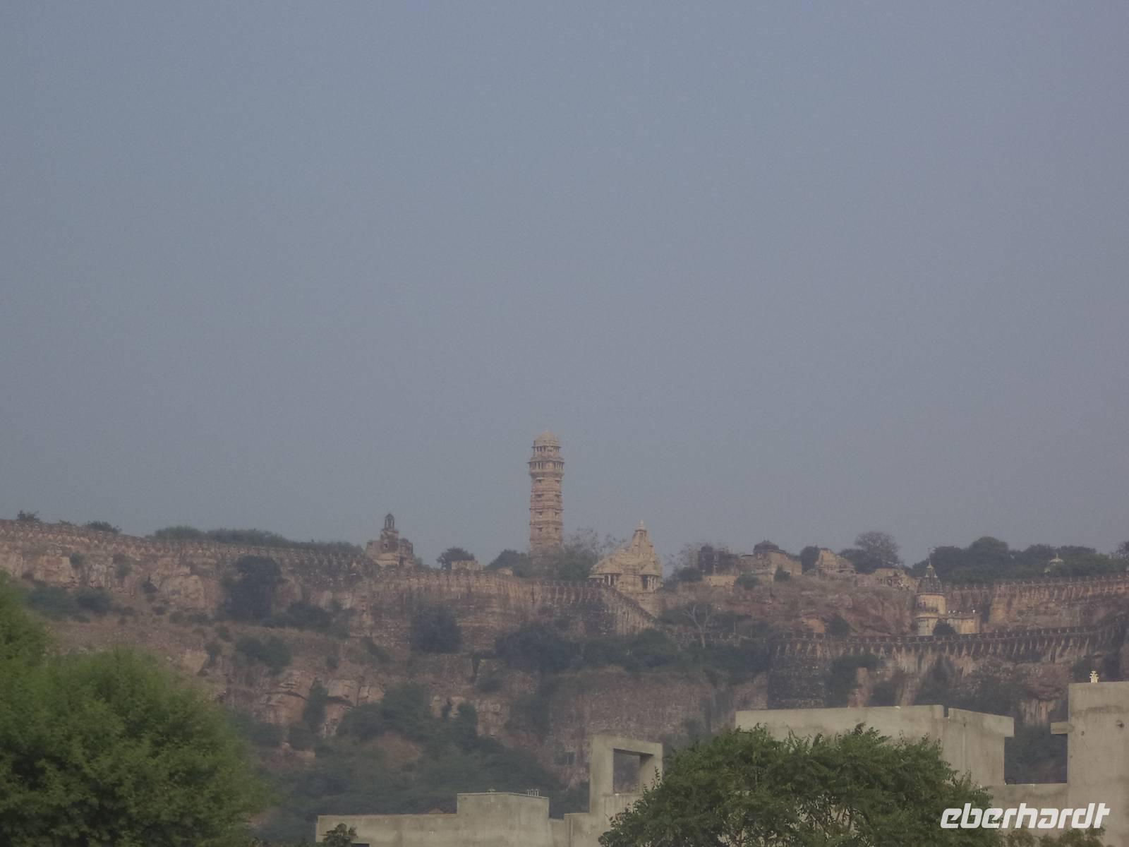 Heute erwartete uns der streckenmäßig längste Tag der Indienreise. Zwar war die Autobahn gut ausgebaut, doch brauchten wir fast die ganze Zeit von Sonnenauf- bis Sonnenuntergang, um nach Udaipur, einer weiteren Hauptstadt Rajasthans, zu gelangen. Am frühen Nachmittag erreichten wir die Stadt Chittorgarh, einst bedeutender als Udaipur. Nach zahlreichen Kriegen wurde die Hauptstadt des Königsreiches Mewar von hier nach Udaipur verlegt. Wir unterbrachen unsere Fahrt für eine Mittagsrast um dann weiter der Autobahn bis nach Udaipur zu folgen, das wir am Abend erreichten und wo wir in einem Hotel mitten in der zunächst wegen eines Festes lärmenden Innenstadt übernachteten.