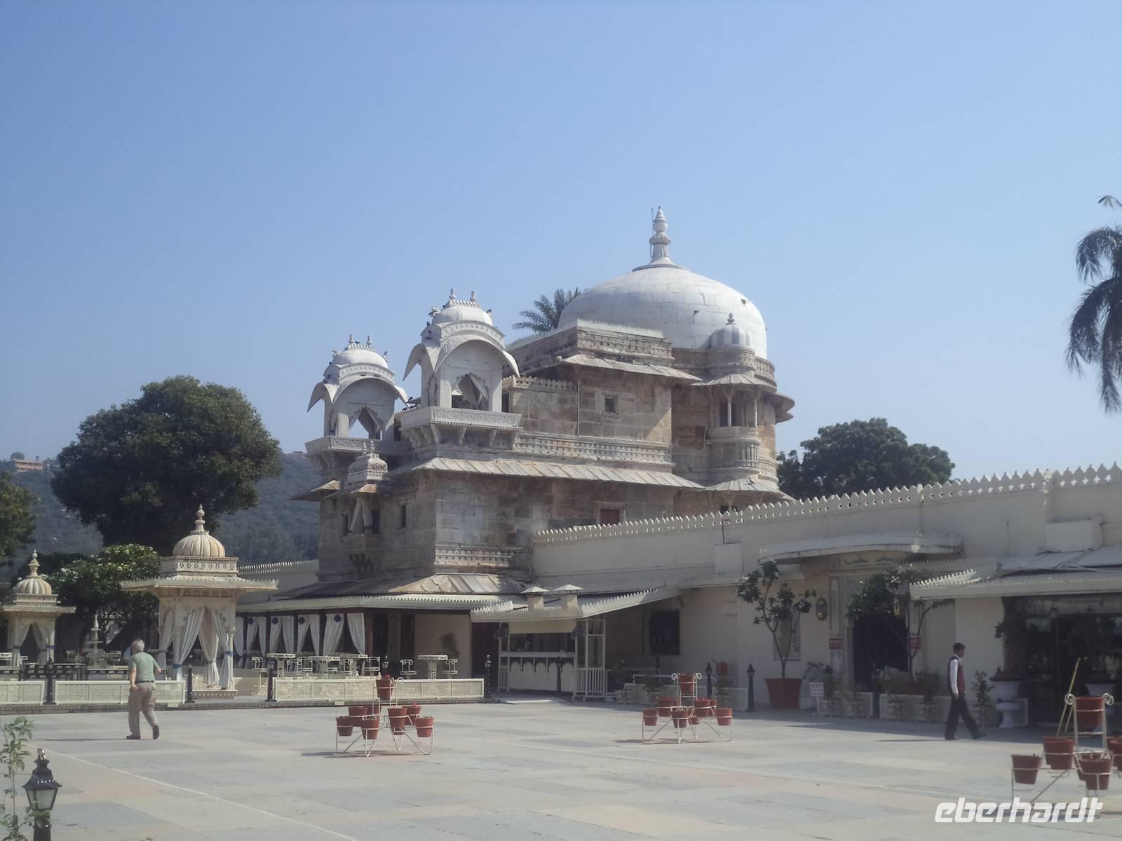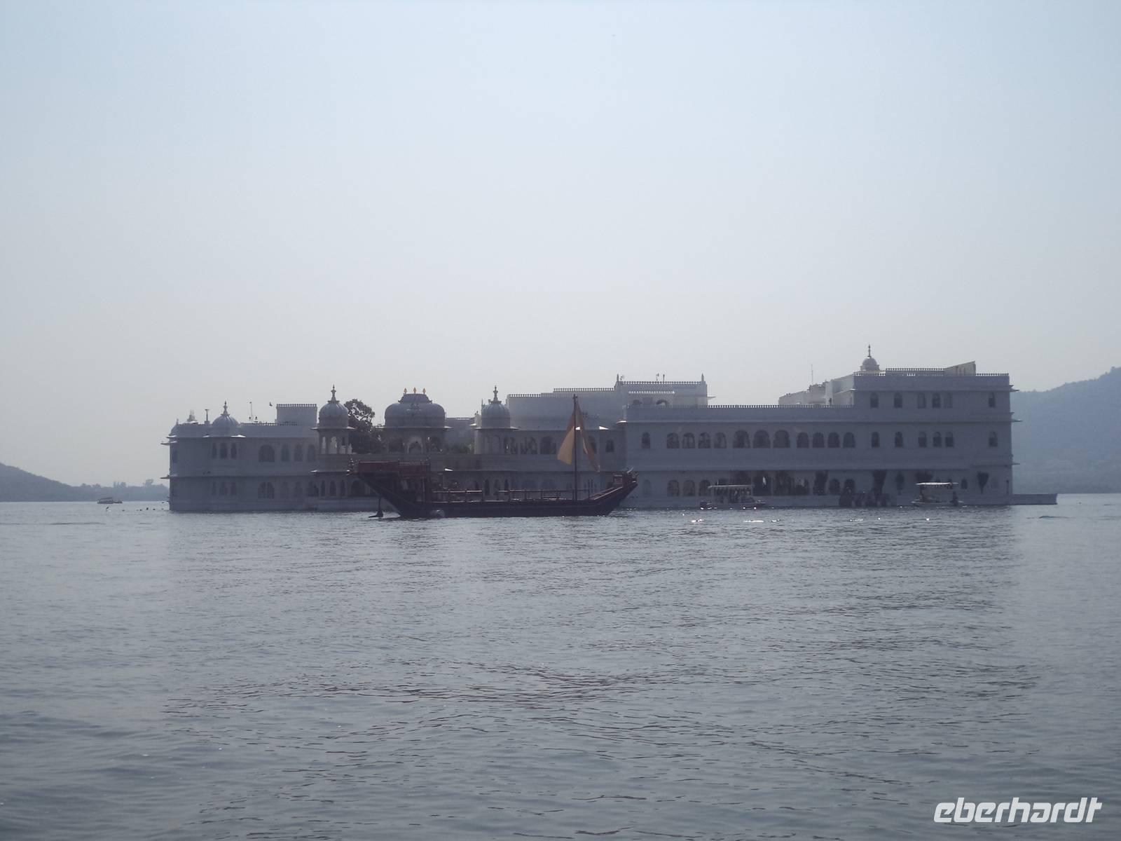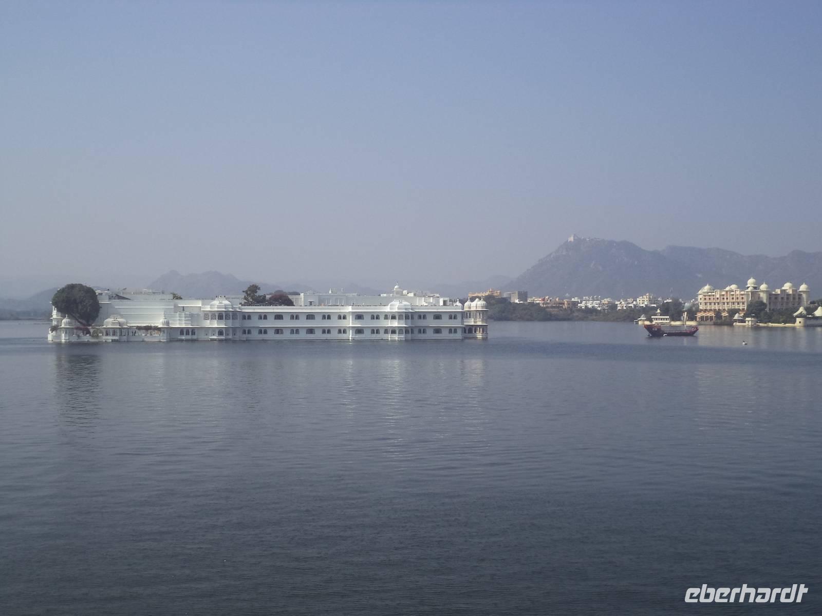 Auf dem Wasser scheint das Seehotel zu schwimmen, schneeweiß anzusehen scheint es aus demselben Material wie das Taj Mahal zu sein. Vielen kommt dieses flach auf einer Insel liegende Gebäude seltsam bekannt vor: es diente beispielsweise als Filmkulisse für den James-Bond-Fils „Octopussy". Übrigens wurde auch ein berühmter deutscher Zweiteiler in Udaipur und am „Lake Palce" gedreht: „Der Tiger von Eschnapur" und „das indische Grabmal", 1958/1959 von Regisseur Fritz Lang, mit Paul Hubschmidt in der Hauptrolle.