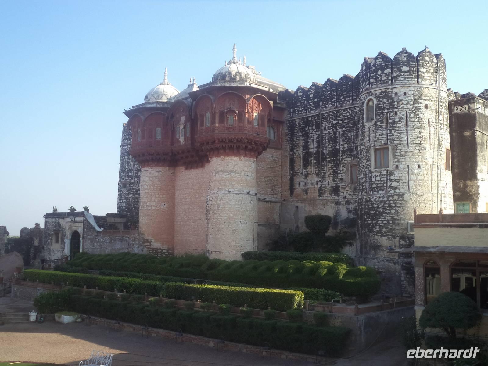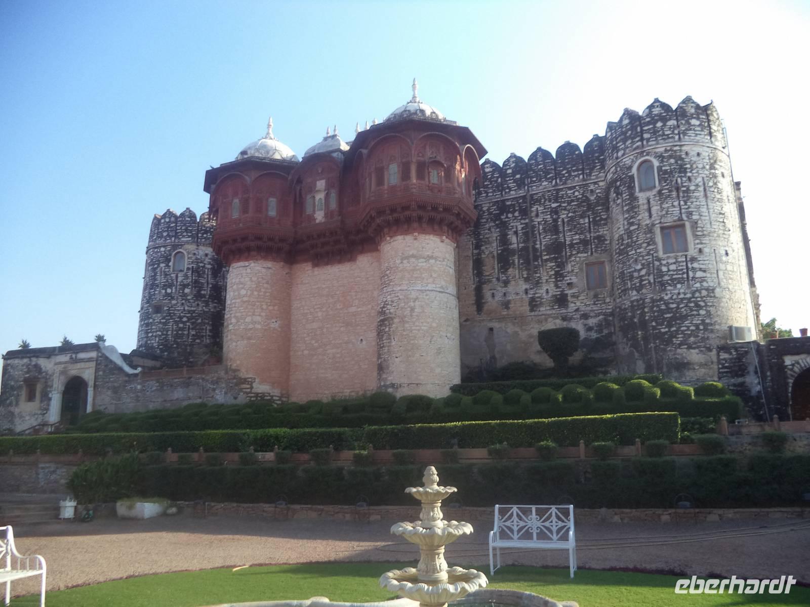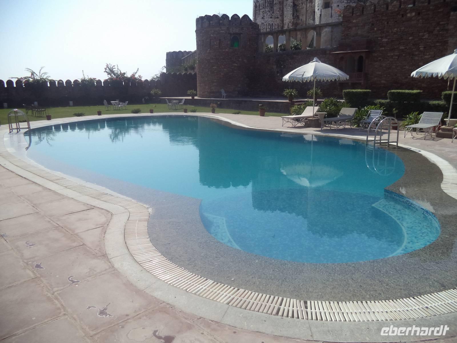 Der heutige Tag sollte - nach den „Reizüberflutungen" der letzten Tage und den vielen Eindrücken, die Indien vor allem für „Einsteiger" bietet, erst einmal der Ruhe gewidmet sein. Bei herrlichem Wetter konnten wir geruhsame Stunden im besonderen Ambiente des alten Forts verbringen, in dem Geschäfte, ein Garten, Terrassen und eine schöne Poolanlage mit Entspannung offerieren.