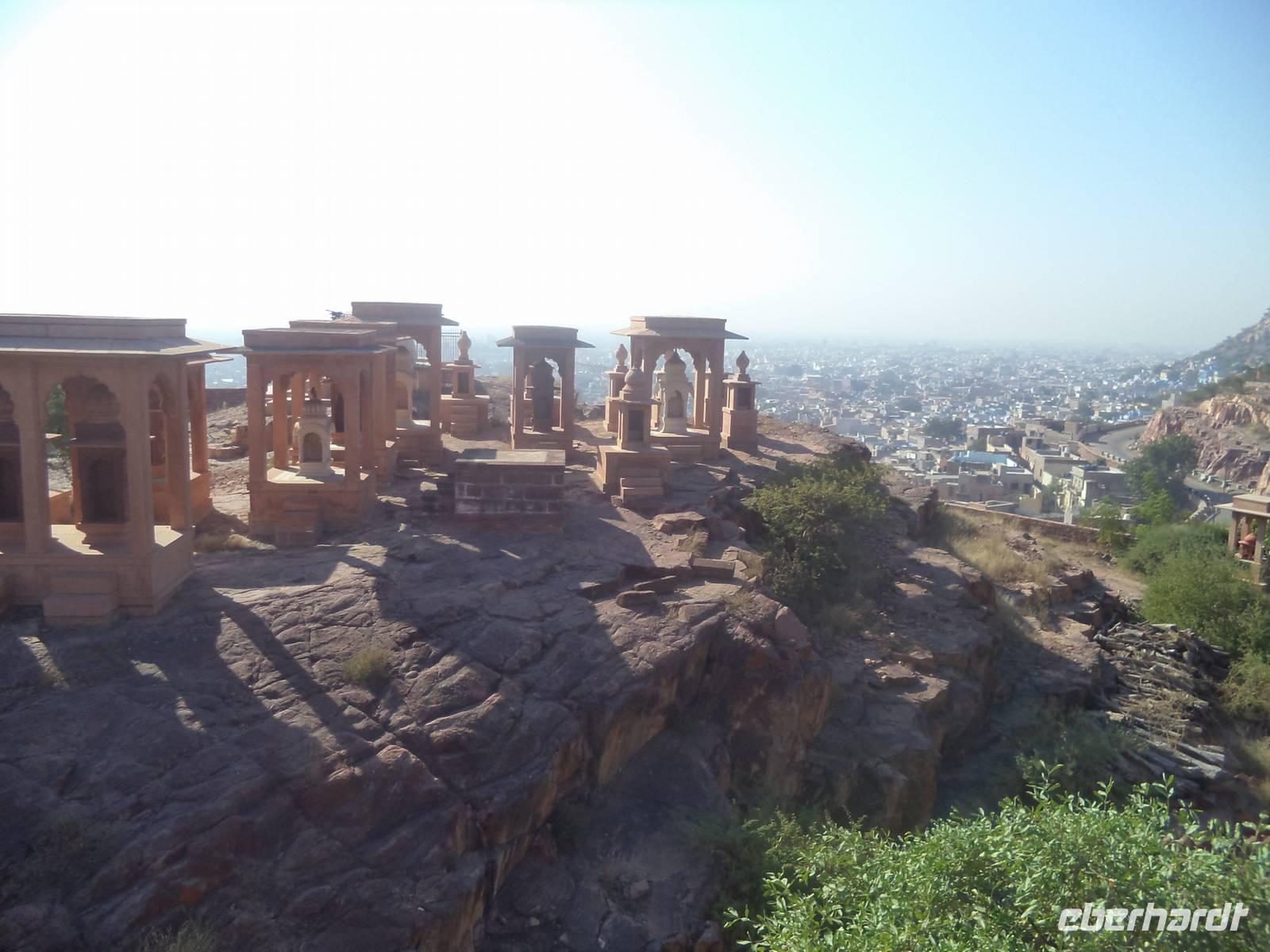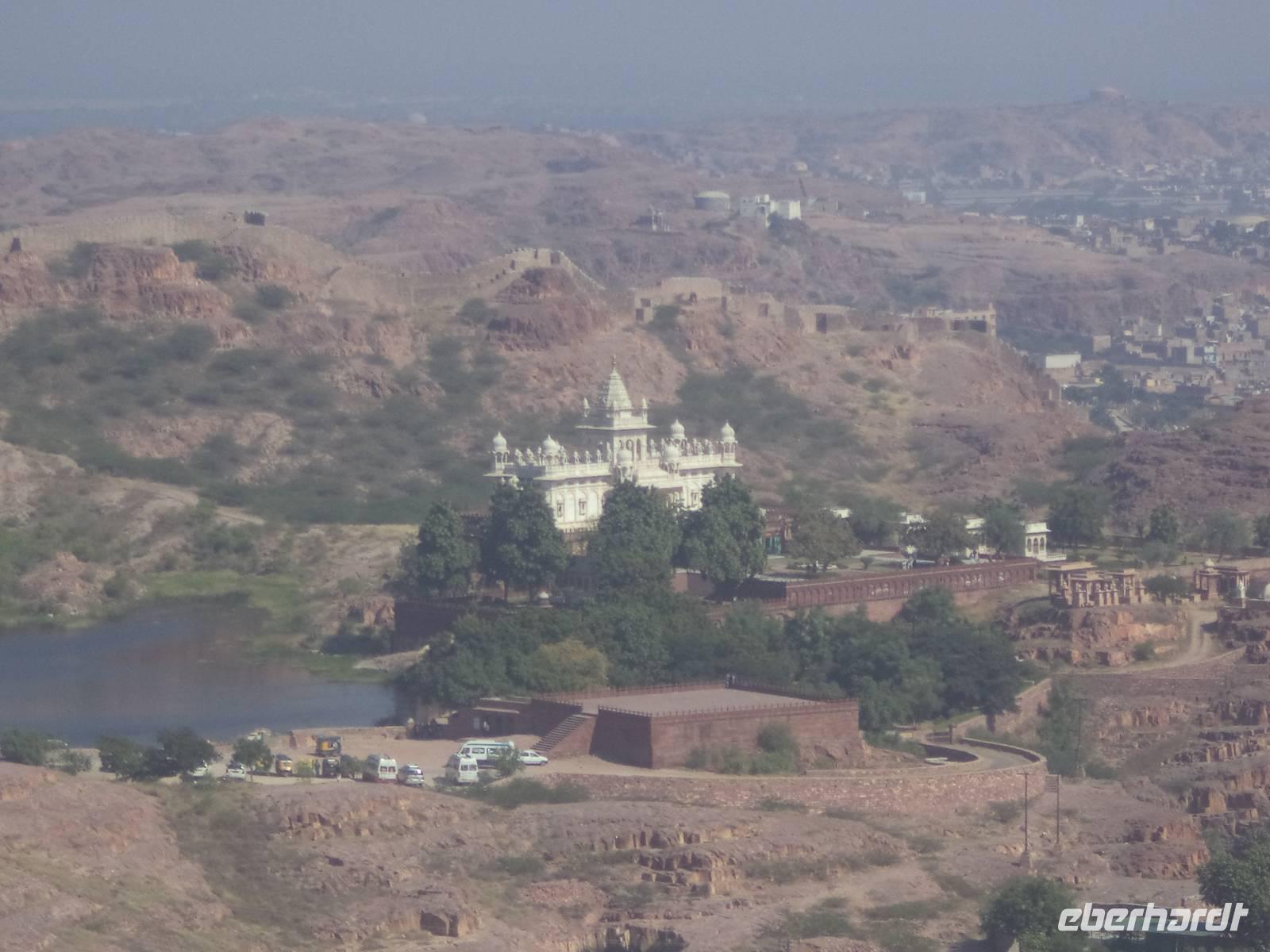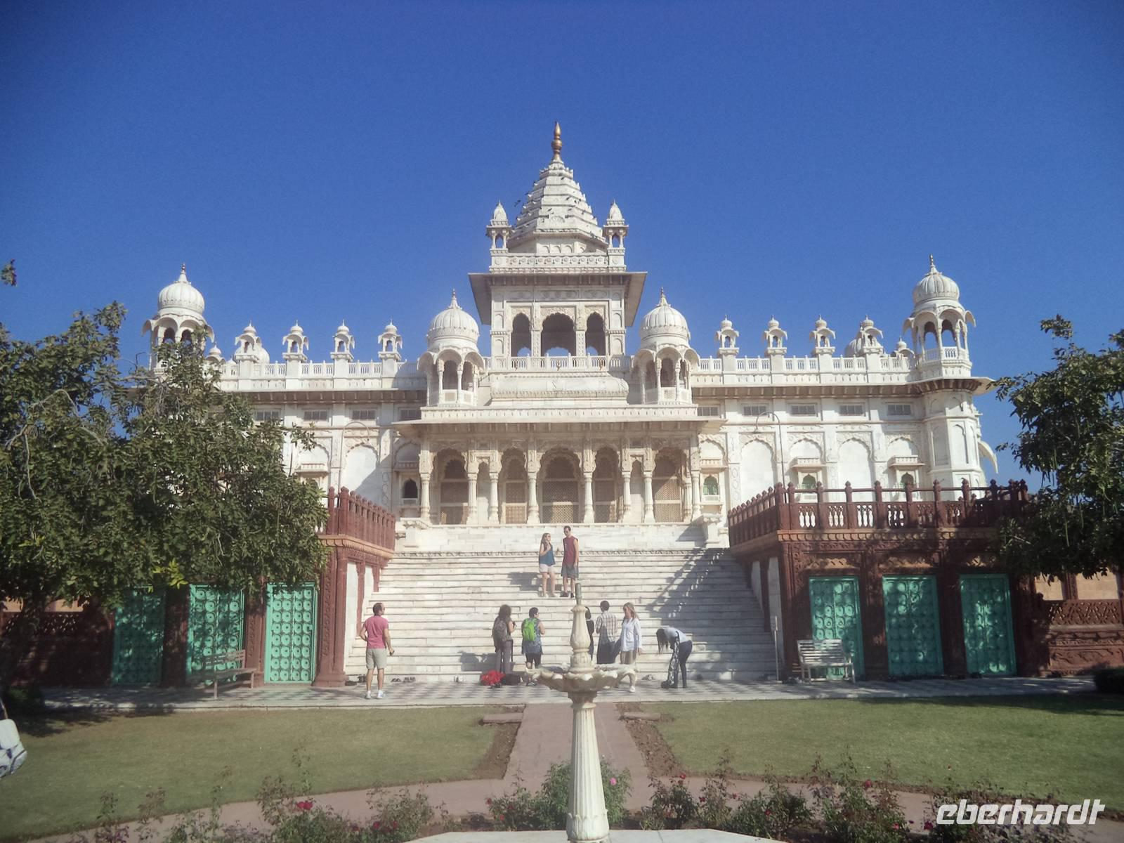 Jodhpur war früher die Hauptstadt des Königreiches Marwar und ist auch heute eine der Hauptstädte Rajasthans, denn neben der Verwaltungshauptstadt Jaipur hat dieser indische Bundesstaat aus historischen Gründen noch weitere Hauptorte. Eines der Wahrzeichen der Millionenstadt Jodhpur, wegen des bevorzugten Anstriches ihrer Wohnhäuser auch „Blaue Stadt" genannt, ist das Marmorgrabmal Jaswant Thada. Wie das Taj Mahal ist das Mausoleum aus weißem rajasthanischen Marmor errichtet und es wurde zur Verehrung eines Maharadschahs errichtet, im Grundgedanken von Liebe, Verehrung und Achtung.