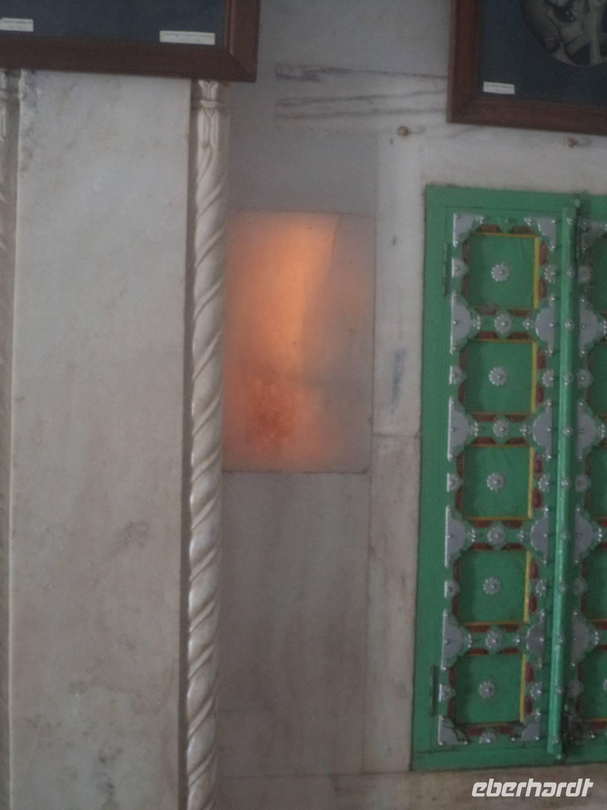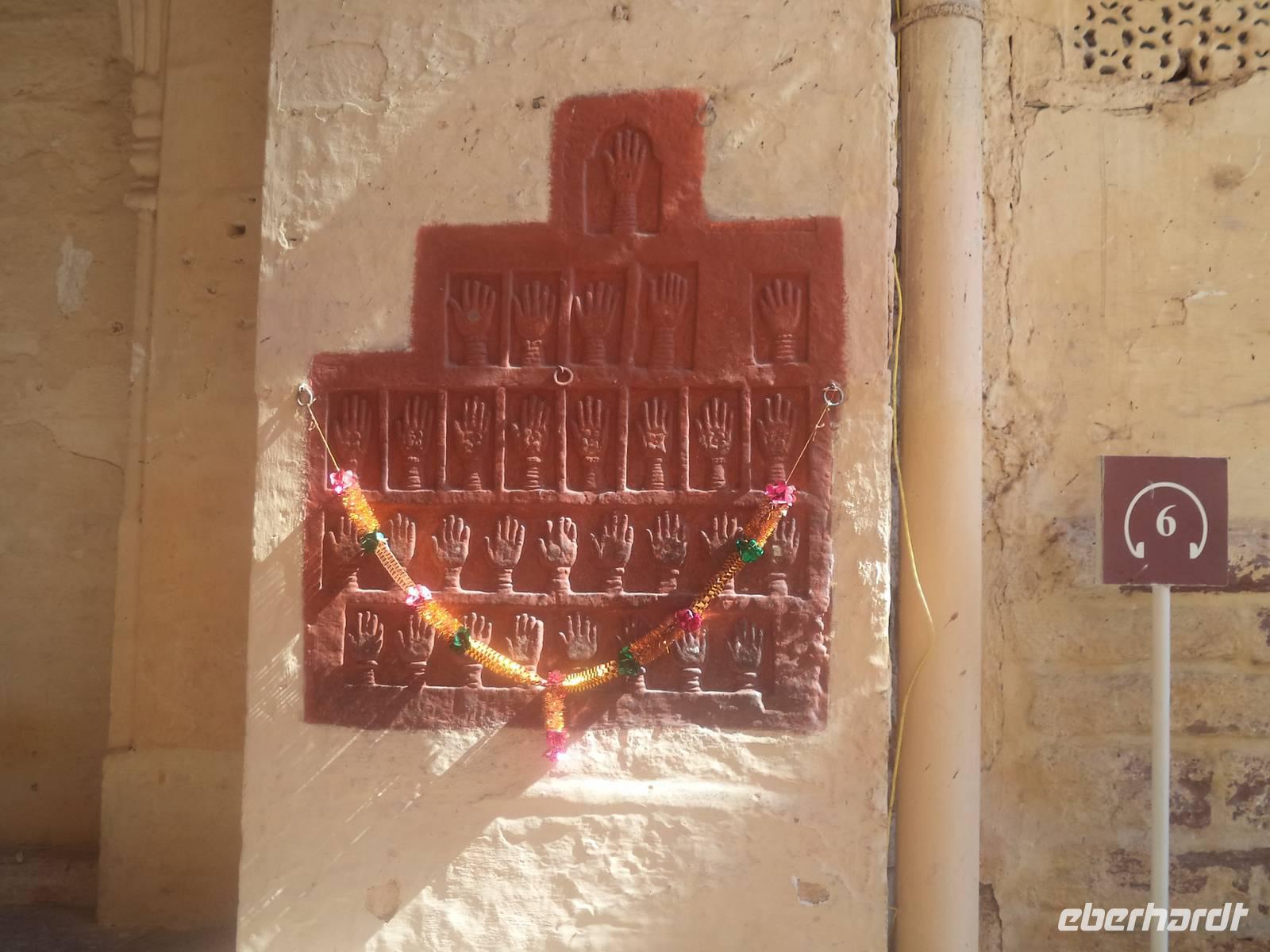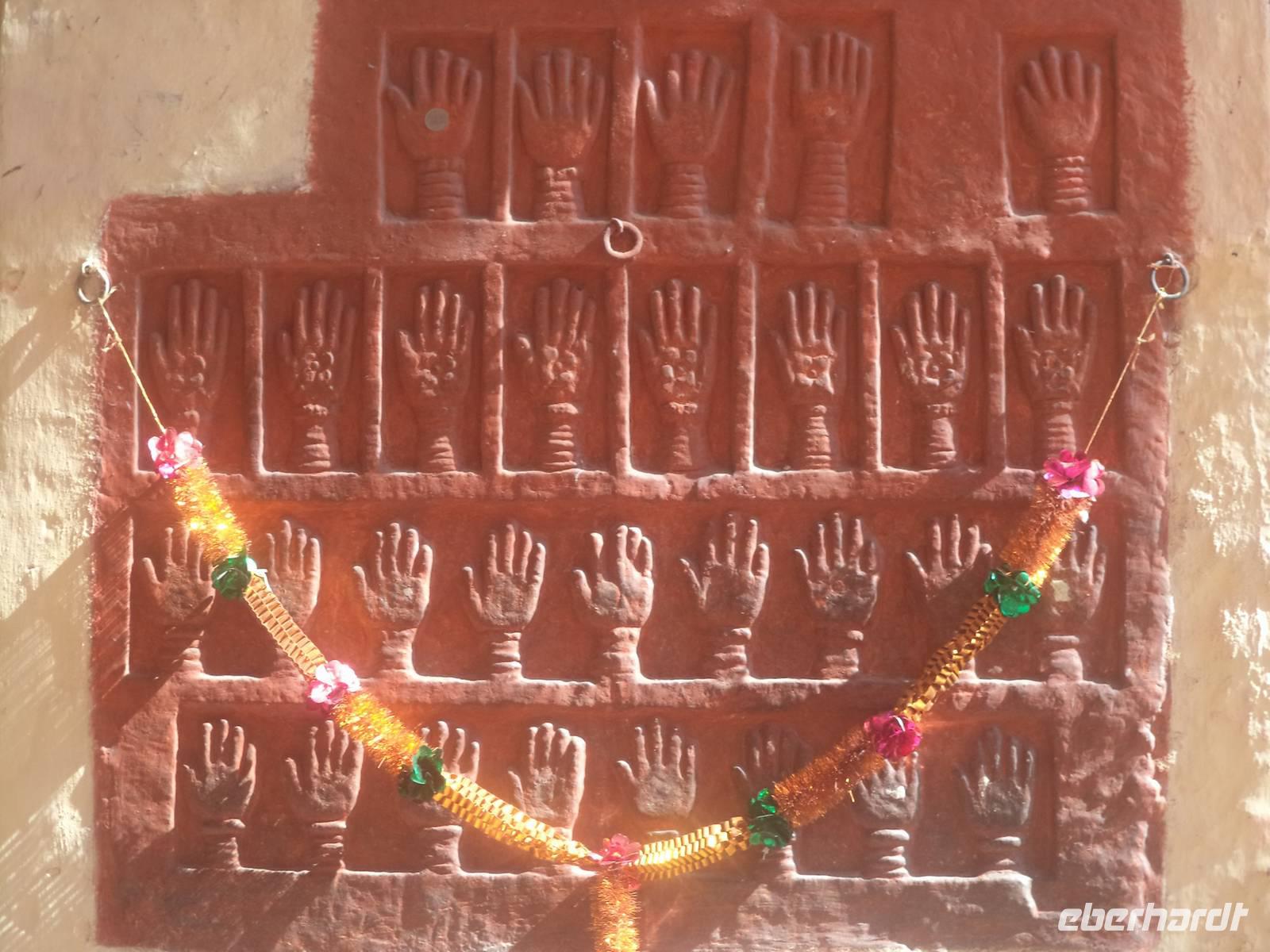 Auf dem Weg aus dem Fort sahen wir noch die in die Torfahrt eingelassenen berühmten „Sati-Steine", mit denen früher die Opfer der berüchtigten Witwenverbrennungen geehrt wurden.