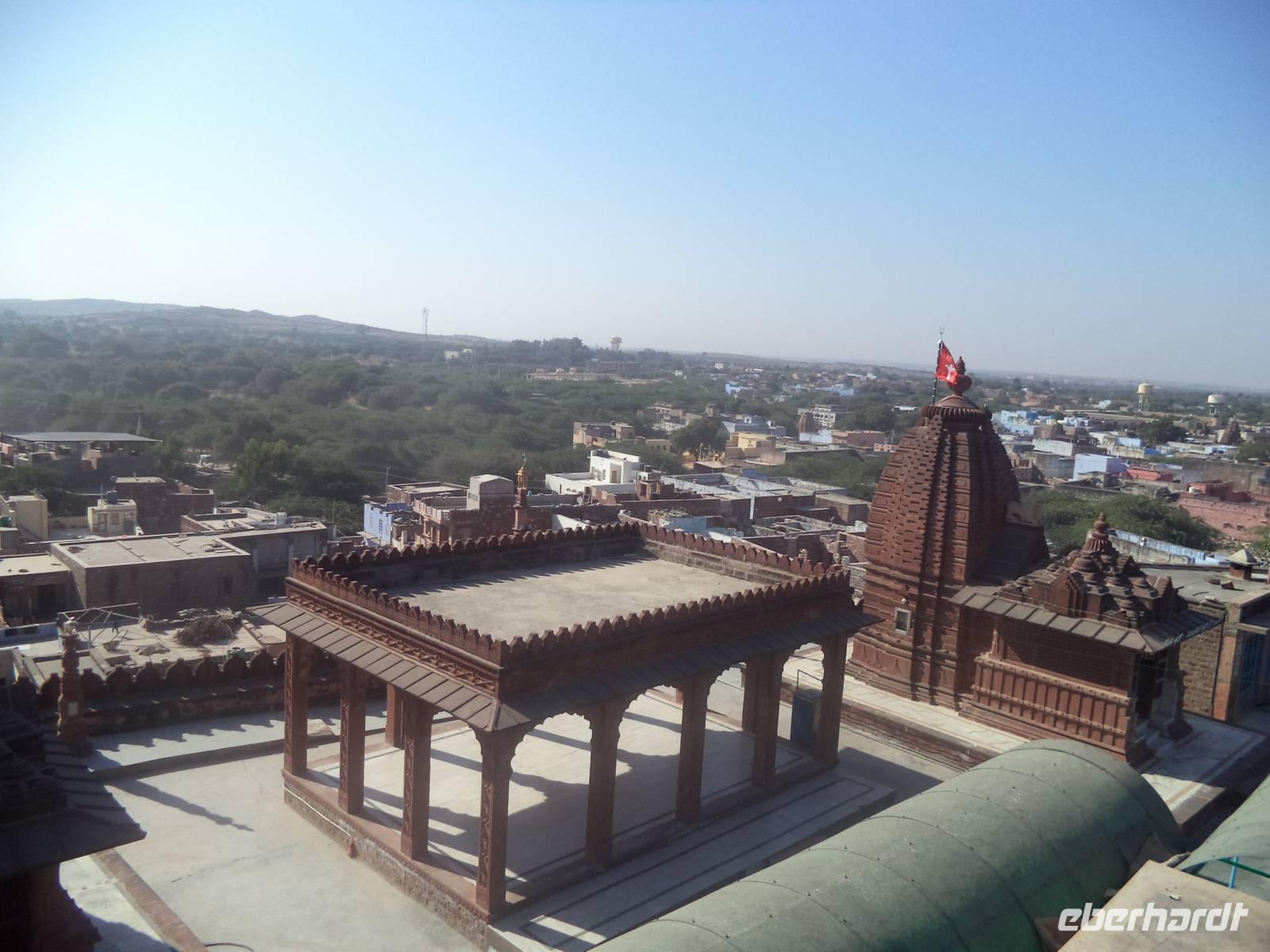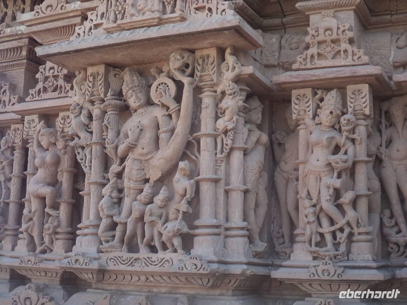 Heute würden wir nach längerer Strecke einen der Hauptorte der Thar-Wüste erreichen. Den ersten Stopp legten wir an den berühmten Tempeln von Osyan ein. Seit etwa 1300 Jahren ist der Ort ein Wallfahrtsziel und Pilgerzentrum. Erhalten sind hier viele kleine, heute nicht mehr genutzte um 700 - 800 n.Chr. errichtete Sandsteintempel. Sie werden nicht mehr genutzt, denn der Kult des einst hier verehrten früheren Sonnengottes Indra ist heute nicht mehr üblich.