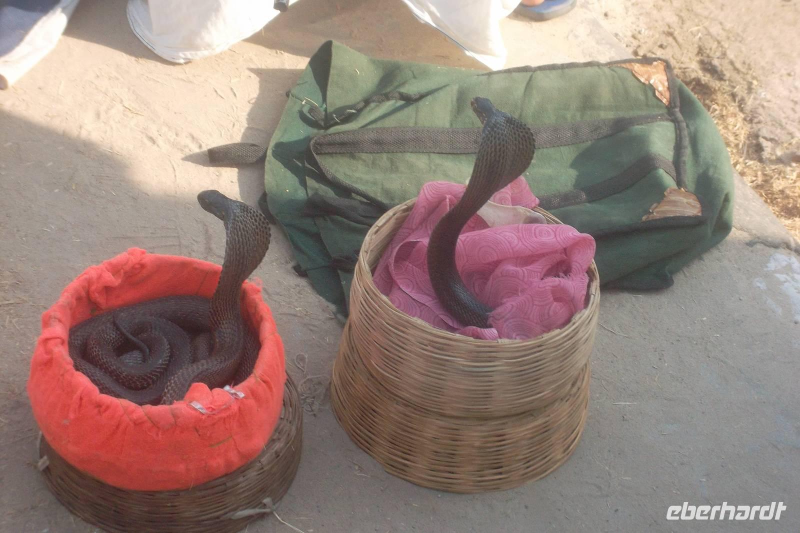 Ihre Gewohnheit, sich die zu gemeinsamen Zeremonien im Familienclan oder mit den Männern des ganzen Dorfes zu treffen, konnten wir in einer eigens für uns arrangierten Zusammenkunft kennenlernen. So gewannen wir einen kleinen Einblick in das authentische Dorfleben im Stamme der Bishnoi. Später beendete der Besuch eines historischen Felsenheiligtums unsere halbtägige Jeepsafari. Ein als Picknick organisiertes Mittagessen schuf einen Abschluss und am Nachmittag gab es endlich die versprochene Erholung am Pool ... Nach dem Abendessen fanden wir uns dann noch zu einer kleinen Zaubershow zusammen, die uns ein leibhaftiger indischer „Magier" bot!