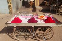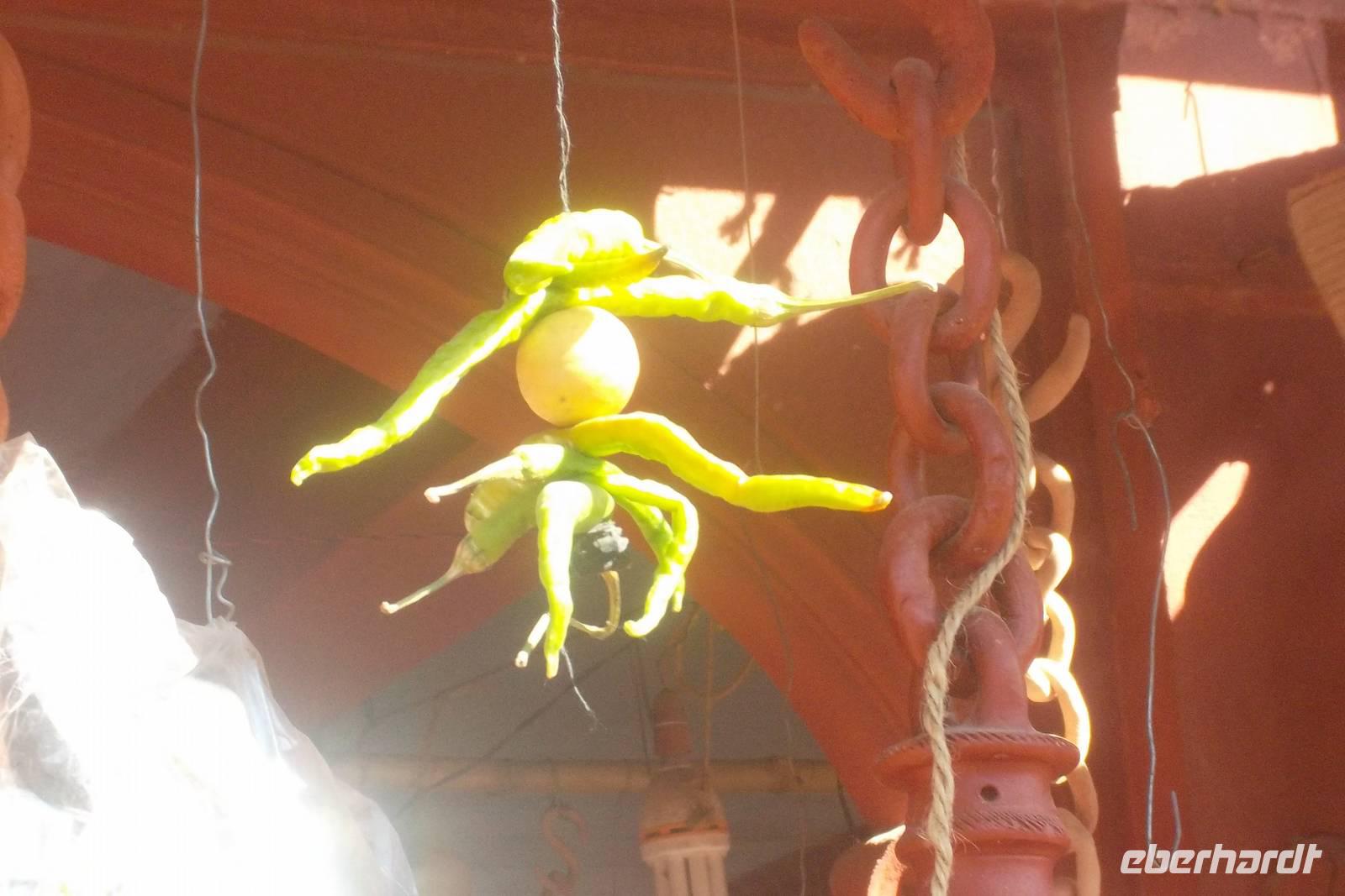 Nach dem Mittagessen in einem Stadtrestaurant fuhren wir mit ein paar Dreirad-Taxis, doe in Indien überall herumwimmeln, in die engen Gassen der Altstadt von Jodhpur, um bei einem bekannten Gewürzhändler etwas über indische Gewürze und ihre Verwendung zu erfahren. In der anschließenden Freizeit konnten wir uns dann einem der belebtesten, buntesten und aufregendsten Märkte von Rajasthan, vielleicht sogar ganz Indiens, widmen. Er wimmelt von Kleinhandwerkern, Imbißbuden und man kann hier (fast) alles kaufen, was man so braucht - vor allem natürlich Lebensmittel, Obst und Gemüse, Kleidung, Einrichtungsgegenstände oder Schmuck. Wer möchte, kann sich hier aber auch direkt etwas anfertigen oder anpassen lassen - ein Vorhängeschloss vielleicht oder ein Paar Sandalen aus alten Autoreifen...