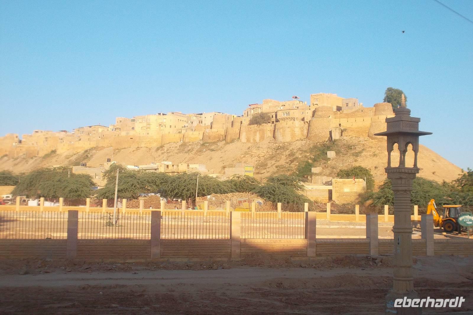 Im letzten strahlenden Sonnenlich erreichten wir dann die alte Wüstenstadt Jaisalmer, deren Zitadelle golden erglänzte und uns bereits zur Besichtigung für den nächsten Tag einlud...