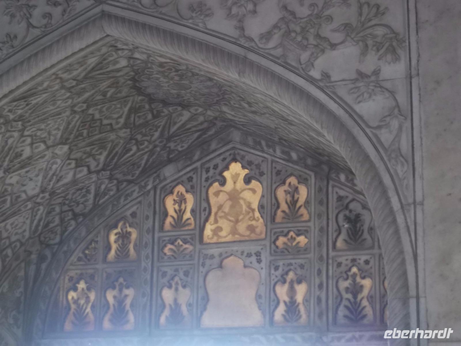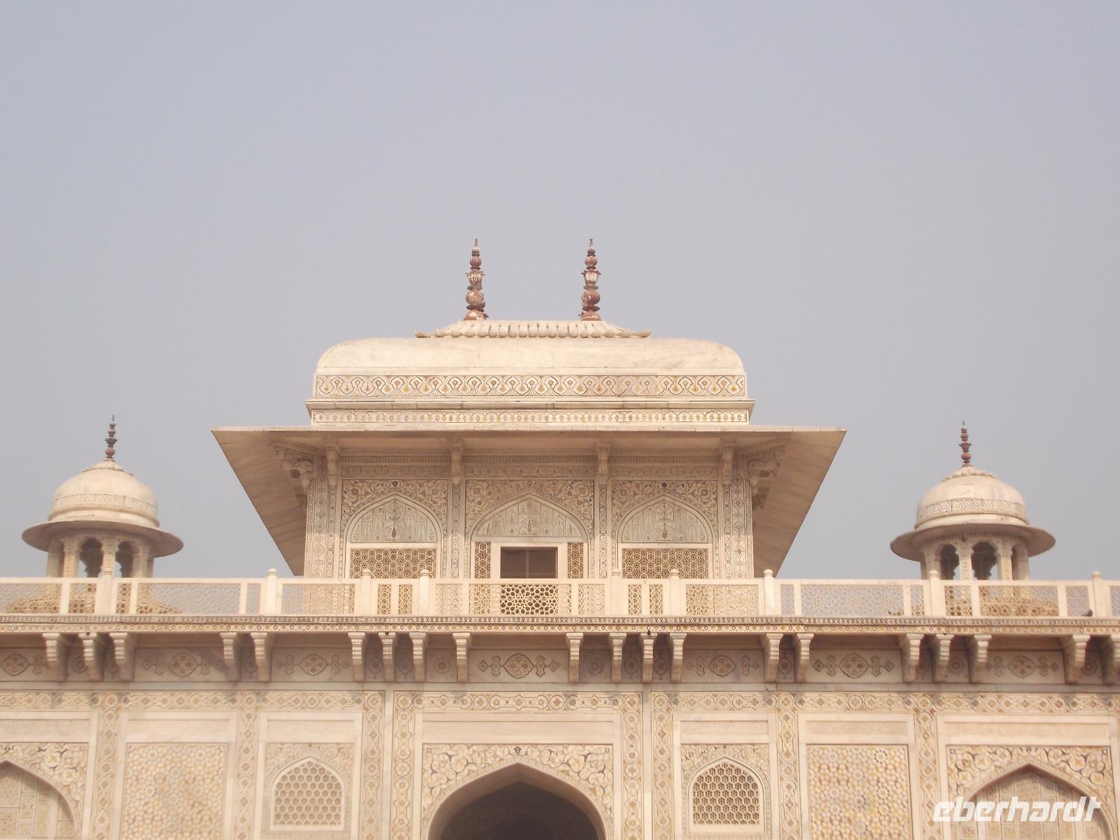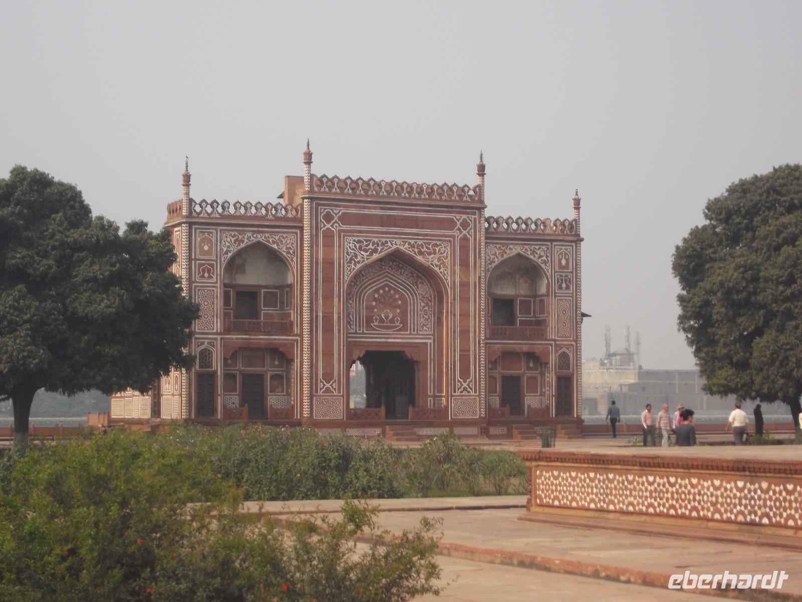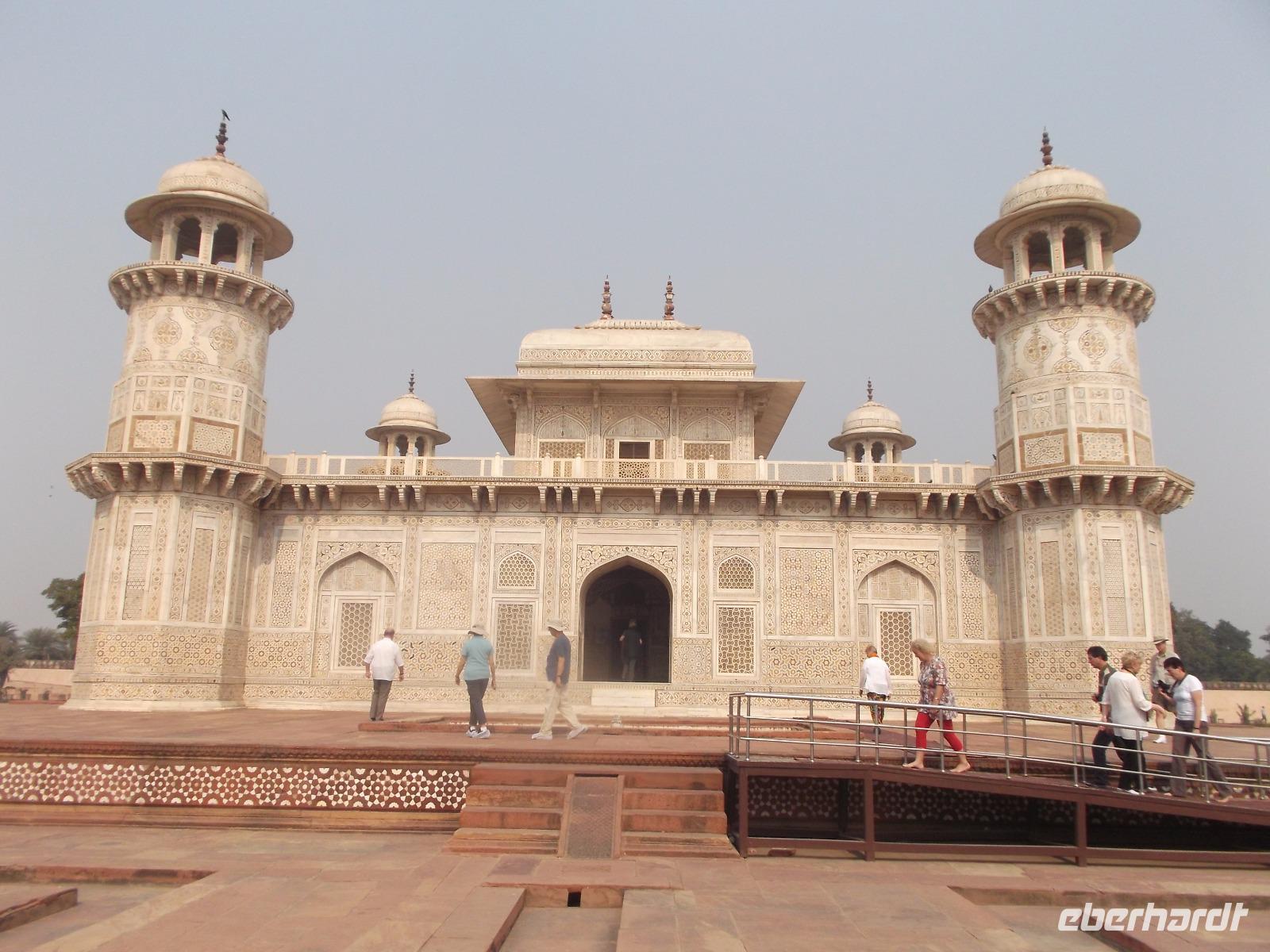 Den Auftakt bildete - als unerwartetes „Richtig-Reisen-Extra" - das direkt am „heiligen" Fluss Yamuna gelegene Grabmal „Itimad-ud-Daula",. Es wurde aus schneeweißem Marmor mit Malereien, Stuck und architektonischen Verzierungen für einen Wesir des Mogulherrschers Jehangir im 17. Jh. errichtet