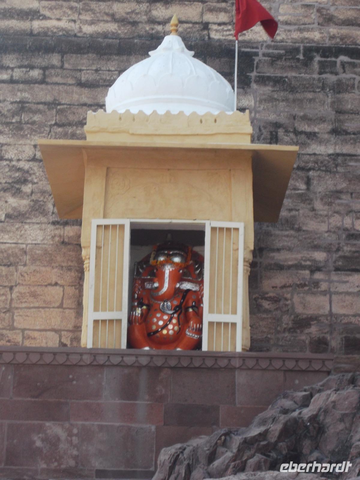 Eindrucksvoll war unsere Tempelbesichtigung und anschließend gab es Gelegenheit zum Mittagessen. Am Nachmittag fuhren wir weiter zu unserem Etappenziel Jodhpur.Unterwegs, gerade war die Dunkelheit angebrochen, legten wir einen Stopp an einem der vielleicht kuriosesten Tempel Indiens ein. Hier im Motorrad-Schrein von Chotila, kurz vor Jodhpur, tatsächlich ein Motorrad verehrt. Grund dafür ist das Schicksal des Adeligensohnes Om Bana, der vor über 20 Jahren auf dieser Straße mit einer 350er Enfield-Maschine tödlich verunglückte. Die Legende besagt, das von der Polizei beschlagnahmte Motorrad sei mehrmals verschwunden und an der Unfallstelle wieder aufgetaucht - eine nur übersinnlich erklärbare Geschichte. Daher errichtete man dem Motorrad einen Schrein, der vor allem abends außerordentlich gut besucht und mit Spenden versehen wird. Dann fuhren wir weiter nach Jodhpur, einer weiteren Hauptstadt des Königreich-Bundesstaates Rajasthan.