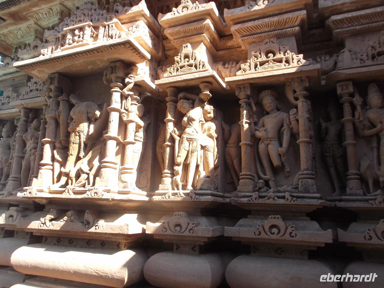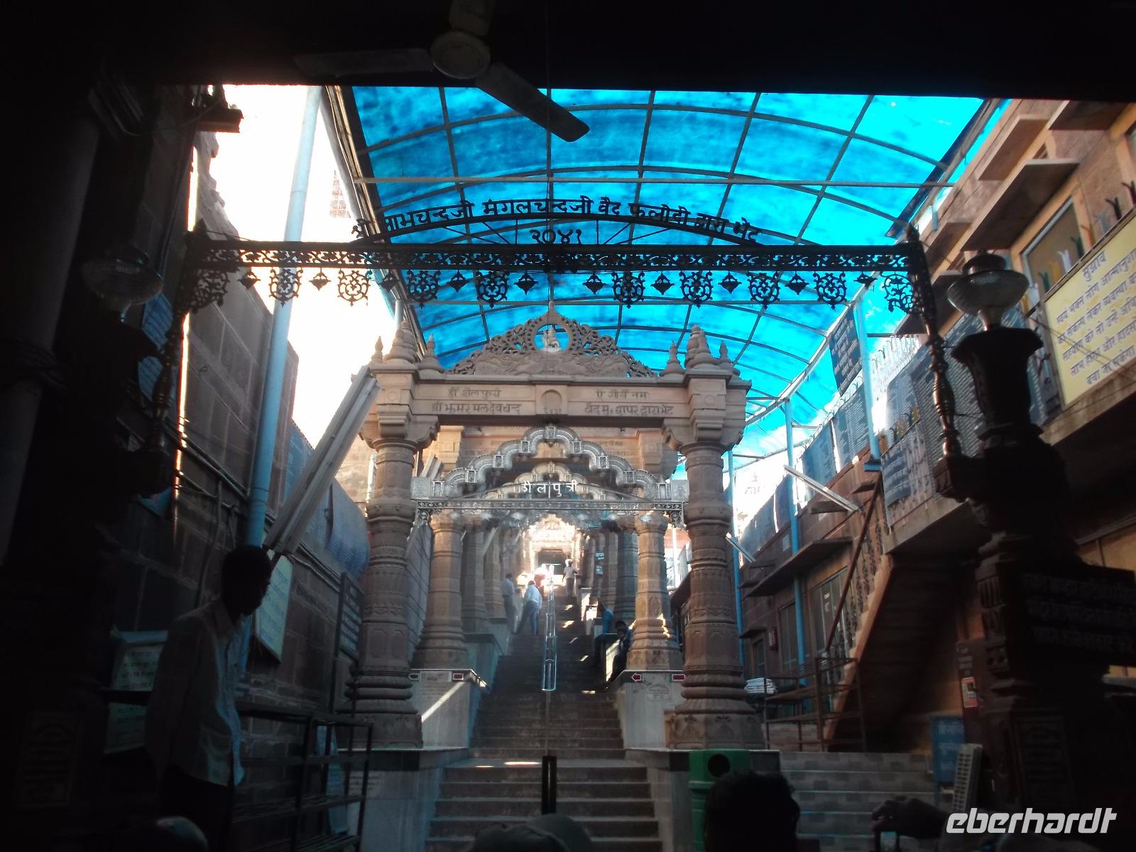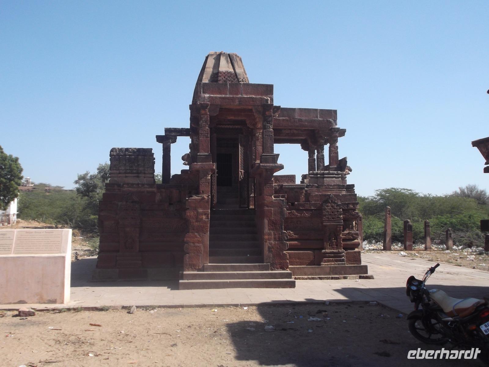 Eine längere Strecke galt es heute zurückzulegen, um die nordwestlichste rajasthanische Hauptstadt, einen der Hauptorte mitten in der Thar-Wüste, zu erreichen. Einen ersten Stopp hatten wir an den berühmten Tempeln von Osyan. Uralte Tempel, die zum Teil heute gar nicht mehr genutzt werden, machen das winzige Städtchen seit über 1300 Jahren zu einem Wallfahrtsort und Pilgerzentrum. Hier sind viele sehr kleine Schreine erhalten, heute nicht mehr genutzte Tempel, um 700 - 800 n.Chr. aus rotem Sandstein errichtet. Ihre Nutzung wurde eingestellt, nachdem der Kult des einst hier verehrten früheren Sonnengottes Indra gegenüber anderen Göttern verblasste.