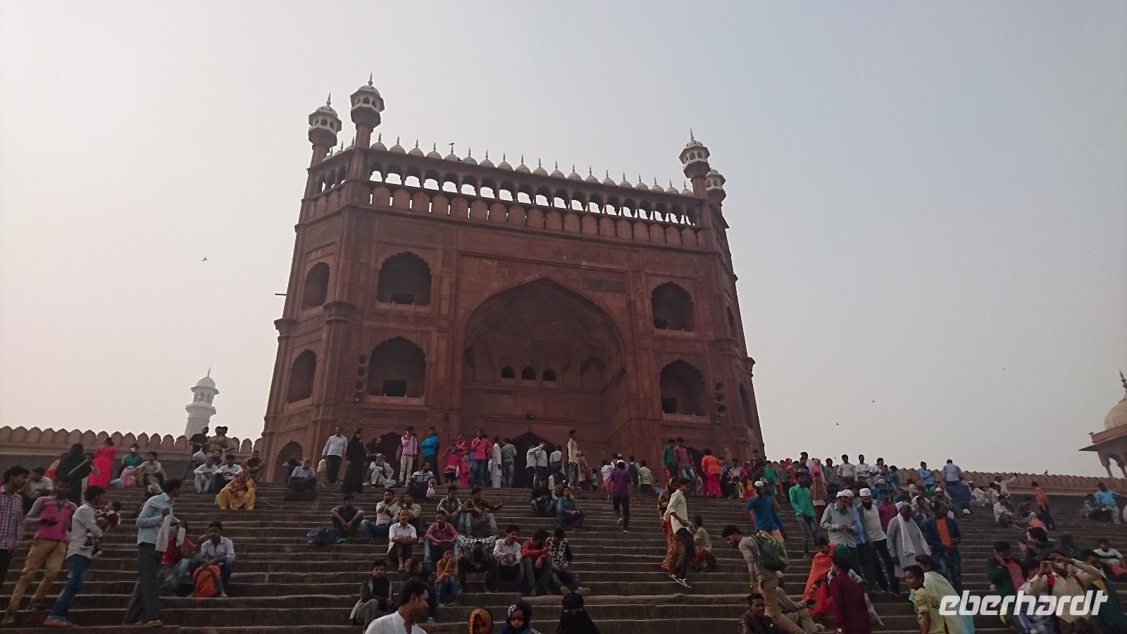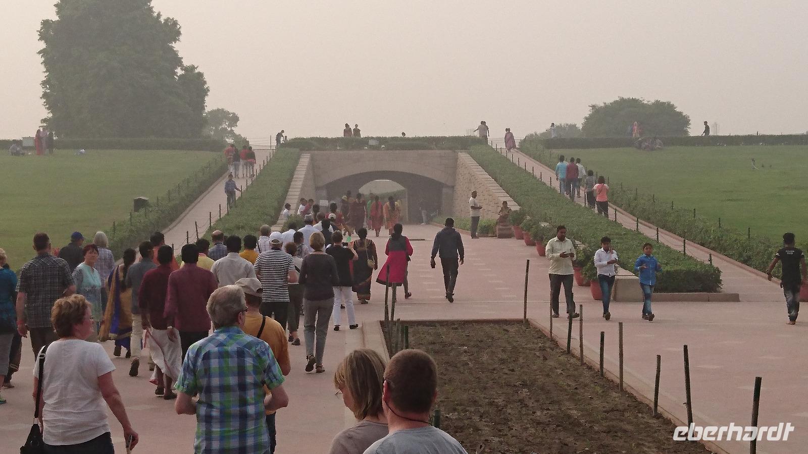 Nach dem Wiedererwachen und einem guten Frühstück im Hotelrestaurant trafen wir uns im Hotelfoyer zur Stadtrundfahrt. Unser örtlicher Reiseleiter Ambrish stellte uns noch einmal die Reise vor, Stefan verteilte schon zusammen mit dem Busboy erste Wasserflaschen und ab ging es in die Innenstadt der gerade jetzt in der Zeit nach dem Monsun durch Smog stark belasteten Metropole Indiens. Unser Weg führte zuerst zum Roten Fort, von da dann zu Fuß durch die engen Gassen zum Sikh-Tempel, wo wir einen ersten Eindruck von Indiens Religionen, aber auch von der Hilfe untereinander bekamen, denn dort befand sich neben der religiösen Stätte auch eine der größten Suppenküchen für alle Bedürftigen der Stadt. Wir sahen, wie Naanbrot gebacken, Suppe gekocht, alles verteilt und dann wieder gesäubert wurde. Später drängten wir uns, immer mit Ambrish vornweg und Stefan hinter uns, um die Gruppe zusammen zu halten, durch die engen und überfüllten, jedoch stets noch mit TukTuks und Rikschas befahrenen Gassen zur Freitagsmoschee. Wer wollte, konnte sie besichtigen. Nach einem Mittagessen in der Nähe ging es zum Gedenkpark für Gandhi und später noch zum India Gate, dessen Ausmaße uns faszinierten. Etwas müde, aber voller interessanter Eindrücke erreichten wir am Abend wieder unser Hotel, nahmen hier das Dinner ein und gingen bald schlafen. Schließlich war noch das Jetlag zu verarbeiten und viele neue Eindrücke lagen noch vor uns.