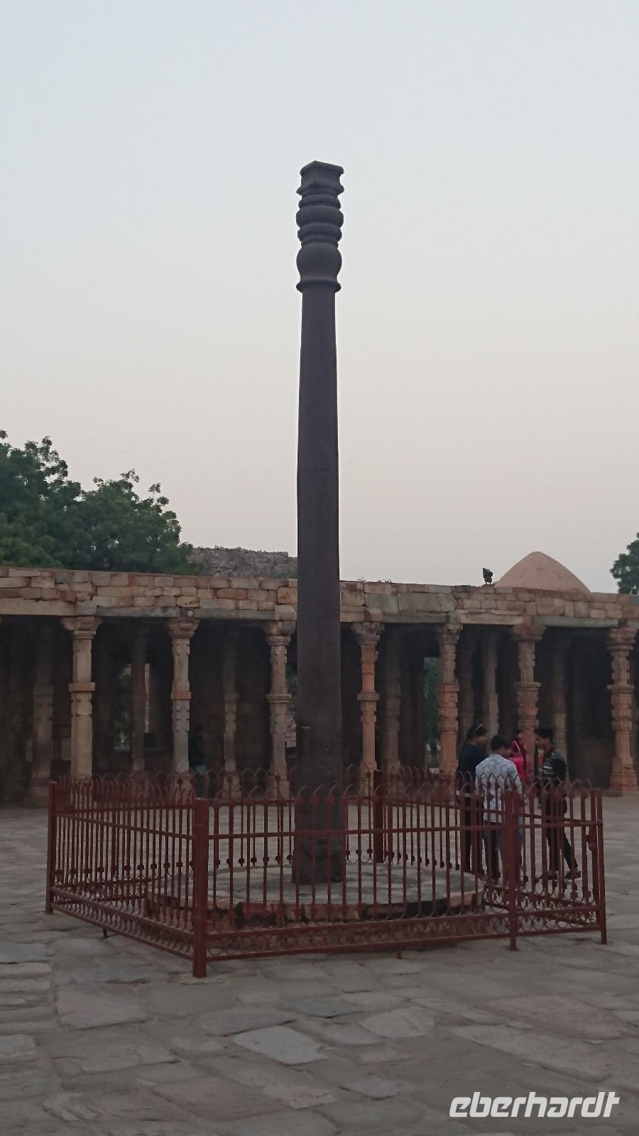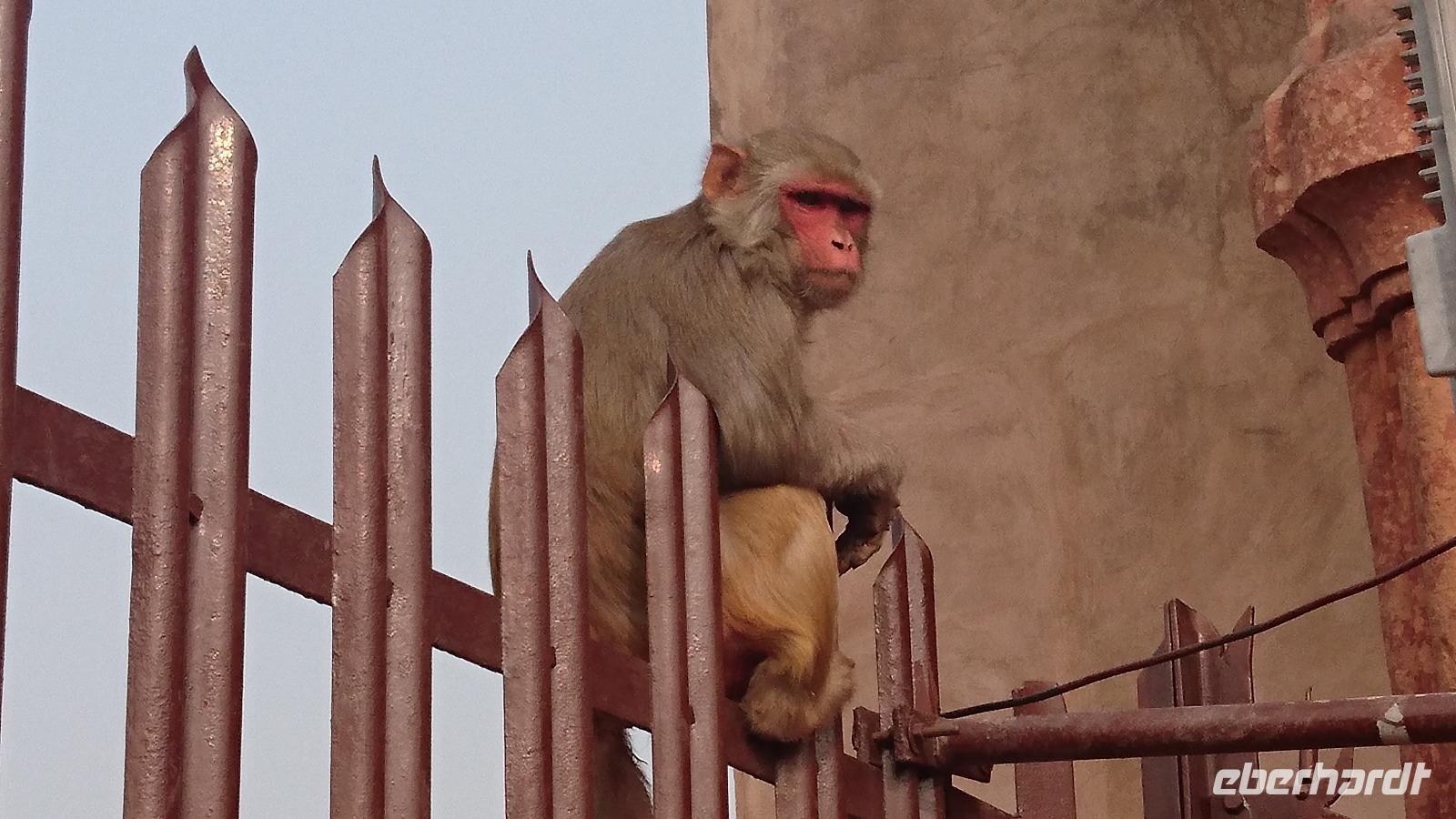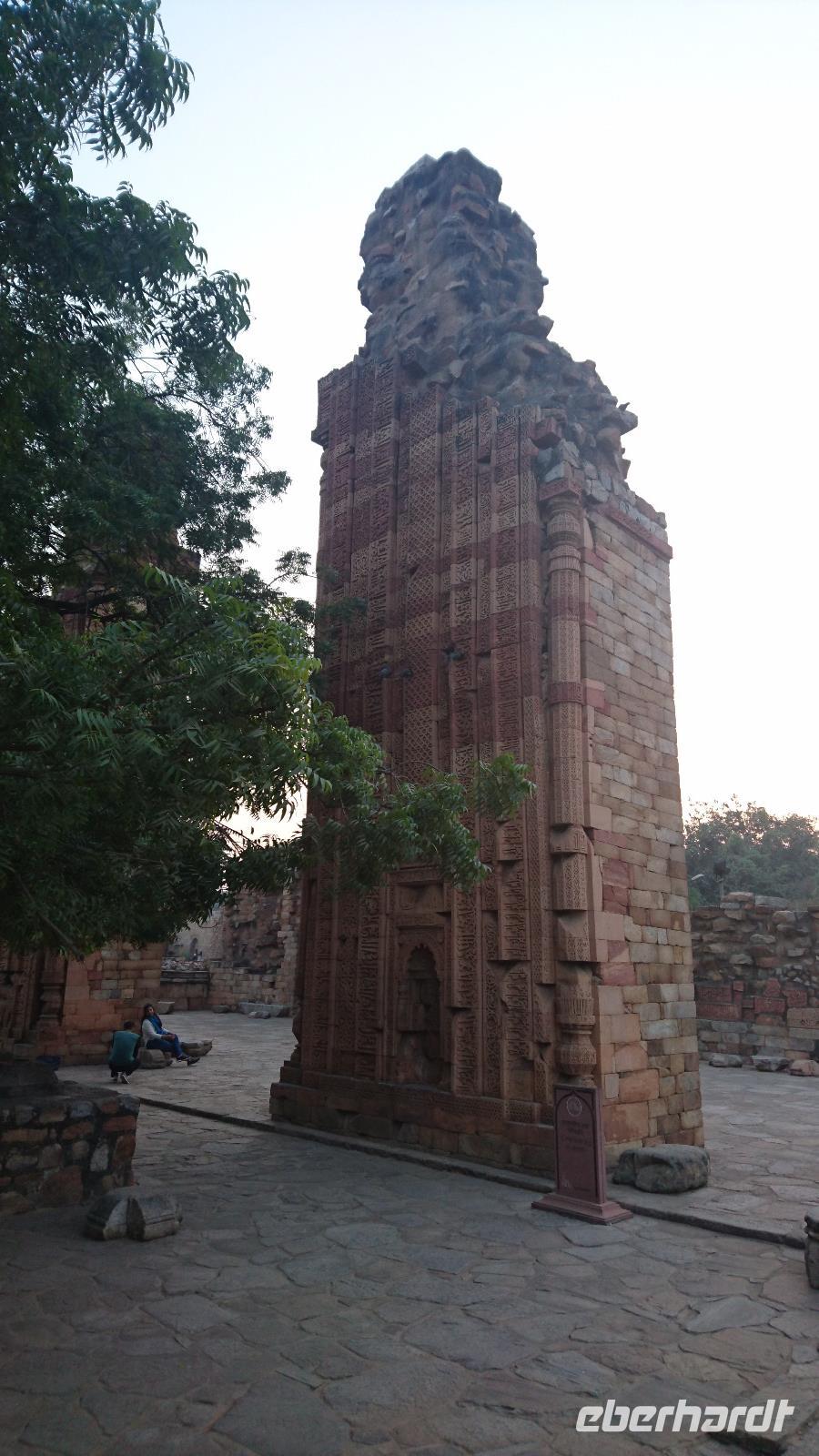 Es ist nicht weit, in Delhi gibt es noch viel zu sehen und doch geht es einfach nicht voran. Trotzdem gönnten wir uns gleich nach dem morgendlichen Aufbruch einen kleinen Stopp beim Hanuman-Tempel in der Nähe, sahen dort eine überdimensionale Statue des Affengottes und fingen noch einige interessante Fotos ein, ehe wir weiterfuhren. Um die Mittagszeit aßen wir in einem kleinen Seerestaurant einen Imbiss und erreichten am späten Nachmittag Delhi, das uns erst mit modernen Vororten, dann mit der bereits bekannten Hektik, jedoch gar nicht mehr mit wirklich wahrnehmbarem Smog empfing. Wir fuhren zum Qutb Minar, einem riesigen Minarett. Im Gebiet seiner ehemaligen Moschee befindet sich auch die nicht rostende Eisensäule, die wohl derzeit das am längsten komplett und unzerstört erhaltene eiserne Stück Geschichte der Welt sein soll. Leider war damit unsere Besuchszeit in Delhi schon zu Ende, denn offizielle und staatlich gelenkte Sehenswürdigkeiten schließen mit Einbruch der Dunkelheit, was wir hier erlebten. Wir fuhren ins Hotel, lernten dort einen der Chefs der Partneragentur unseres Reiseveranstalters kennen, der uns noch ein kleines Präsent als Erinnerung an unsere Reise überreichte. Dann verabschiedeten wir uns gemeinsam mit Stefan von Ambrish und nutzten die wenigen verbliebenen Stunden bis zur Abholung gen Flughafen in unserem Hotelzimmer.
