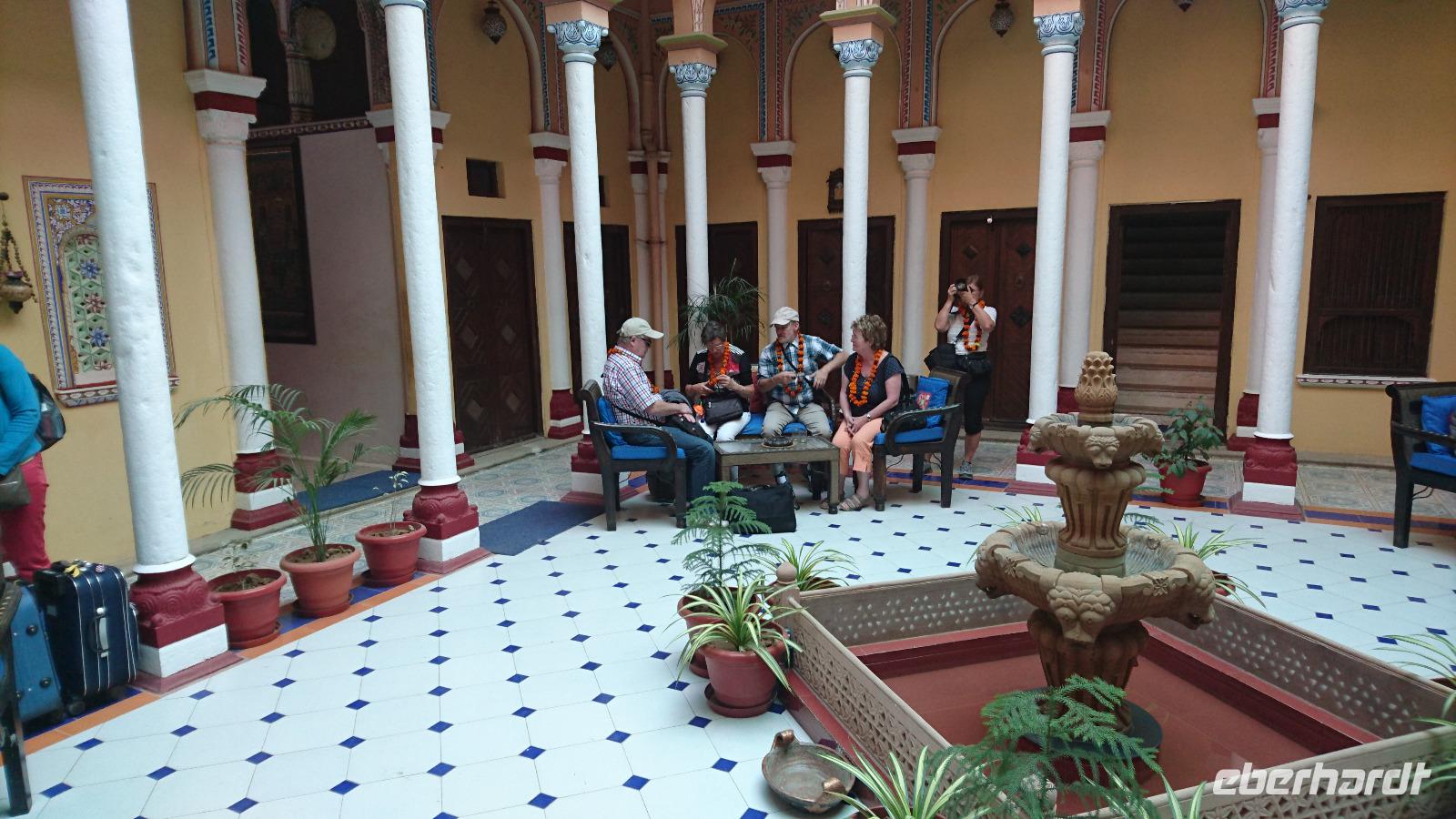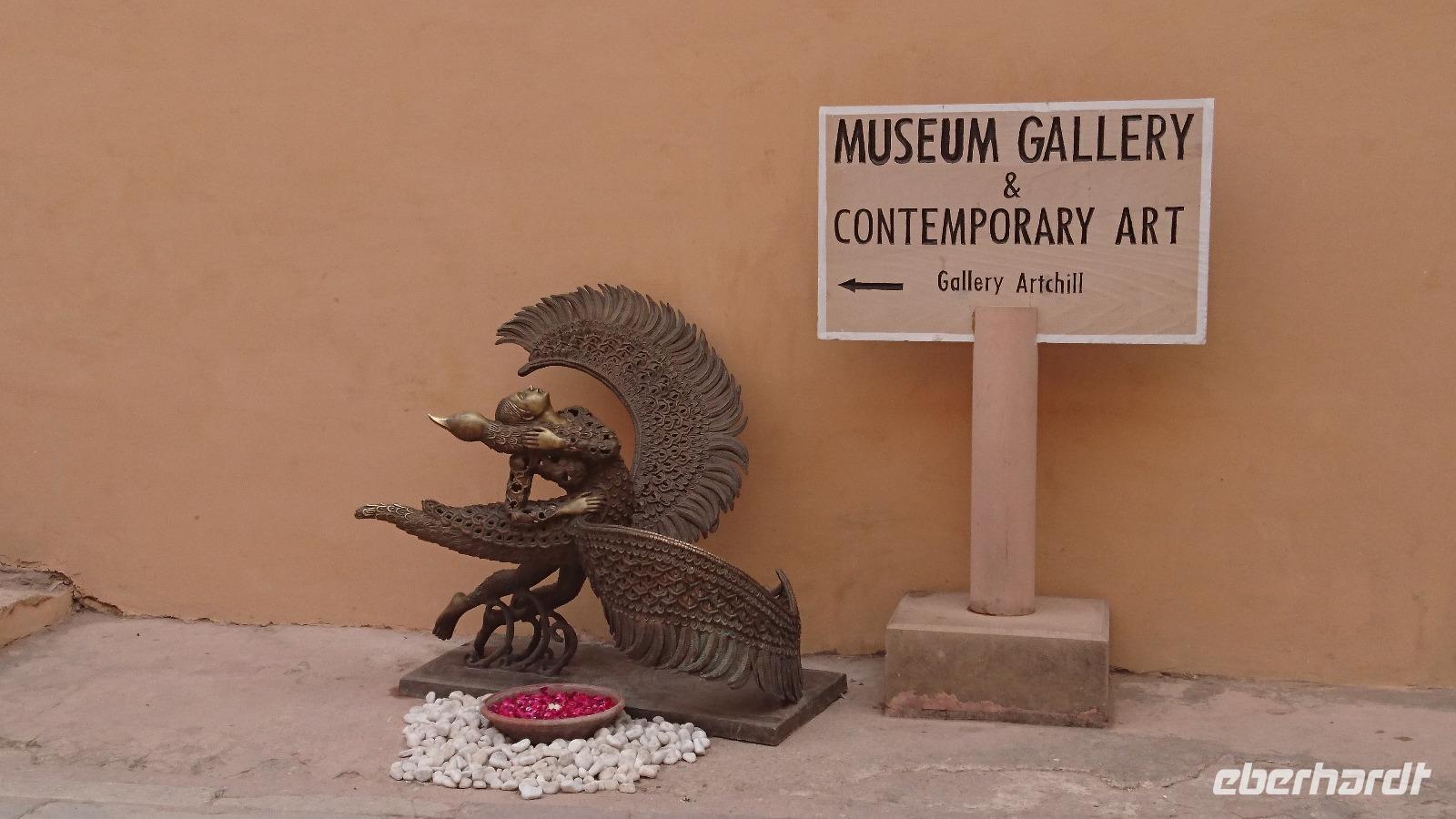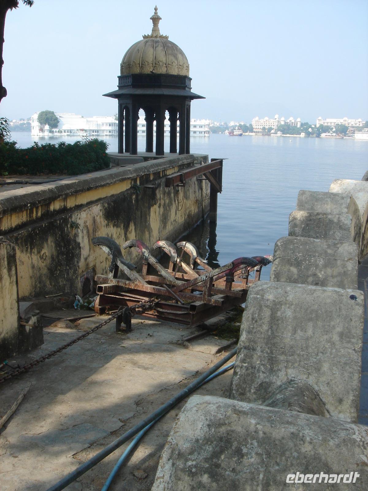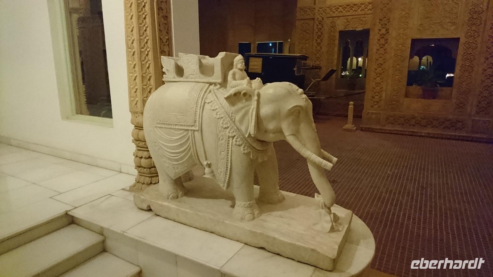 Nach dem Frühstück trafen wir uns heute in der Lobby, um einmal durch Udaipur zu spazieren. Enge Gassen, überall Geschäfte, bald ein Bazar, dazu viele Menschen, die uns ansahen und gleich mit uns gemeinsam freundlich lächelten sahen wir auf unserem Weg zum Stadtpalast. Dieser ist heute noch von der Maharadscha-Familie bewohnt und trotzdem zum Teil zu besichtigen. Man erzählt sich gar, man könne dort ein Cafétrinken mit dem derzeitigen Machthaber im Palast buchen, doch wir sahen uns lieber einige Ausstellungsstücke an, staunten über das Pferd mit dem Elefantenrüssel, mit dem man einmal eine anrückende Armee verunsicherte, entdeckten interessante Szenen auf den vielen in Miniaturmalerei erschaffenen Gemälden und hatten einen guten Blick auf den See und den dortigen Seepalast, der ja Vorbild für den Wasserpalast in Jaipur war, jedoch auch hin und wieder in bekannten Filmen auftaucht, wie z.B. in James Bond 007 - Octopussy. Spöäter standen wir am See und bestiegen kurz darauf ein Boot, das uns entlang der Kulisse aus Stadtpalast, Wasserpalast, verschiedenen 5-Sterne-Hotels und Restaurants zu einer Insel brachte, auf dem sich eines der teuersten Cafés Indiens befand. Von hier hatte man einen weiteren herrlichen Blick über den See und hinüber zum Land. Später fuhren wir ein kleines Stück durch die Stadt und aßen in einem Seerestaurant zu Mittag, ehe wir den großen und vor allem wegen seiner Wasserspiele aber auch von Liebespaaren wegen seiner einsamen Ecken geschätzten Stadtpark Sahelion Ki Bari. Von hier konnten wir zu Fuß in die Werkstatt der Miniaturmalerei gehen und sahen dort, wie die wunderbaren Gemälde im Palast entstanden und was man dazu alles verwendete. Manch einer von uns nahm ein kleines in Udaipur gemaltes Bild auf Seide, Holz, Kamelknochen oder Keramik mit nach Hause. Später fuhren wir zum Hotel, von wo alle, die Lust hatten, nach einer kurzen Ruhephase aufbrachen, um im indischen Nationaltheater ein Puppenspiel und eine Tanzshow zu erleben. Der Tag war wieder mit so vielen Eindrücken ausgefüllt und nach dem Abendessen im Hotel freuten wir uns, erneut etwas Kraft tanken zu können für kommende Erlebnisse.