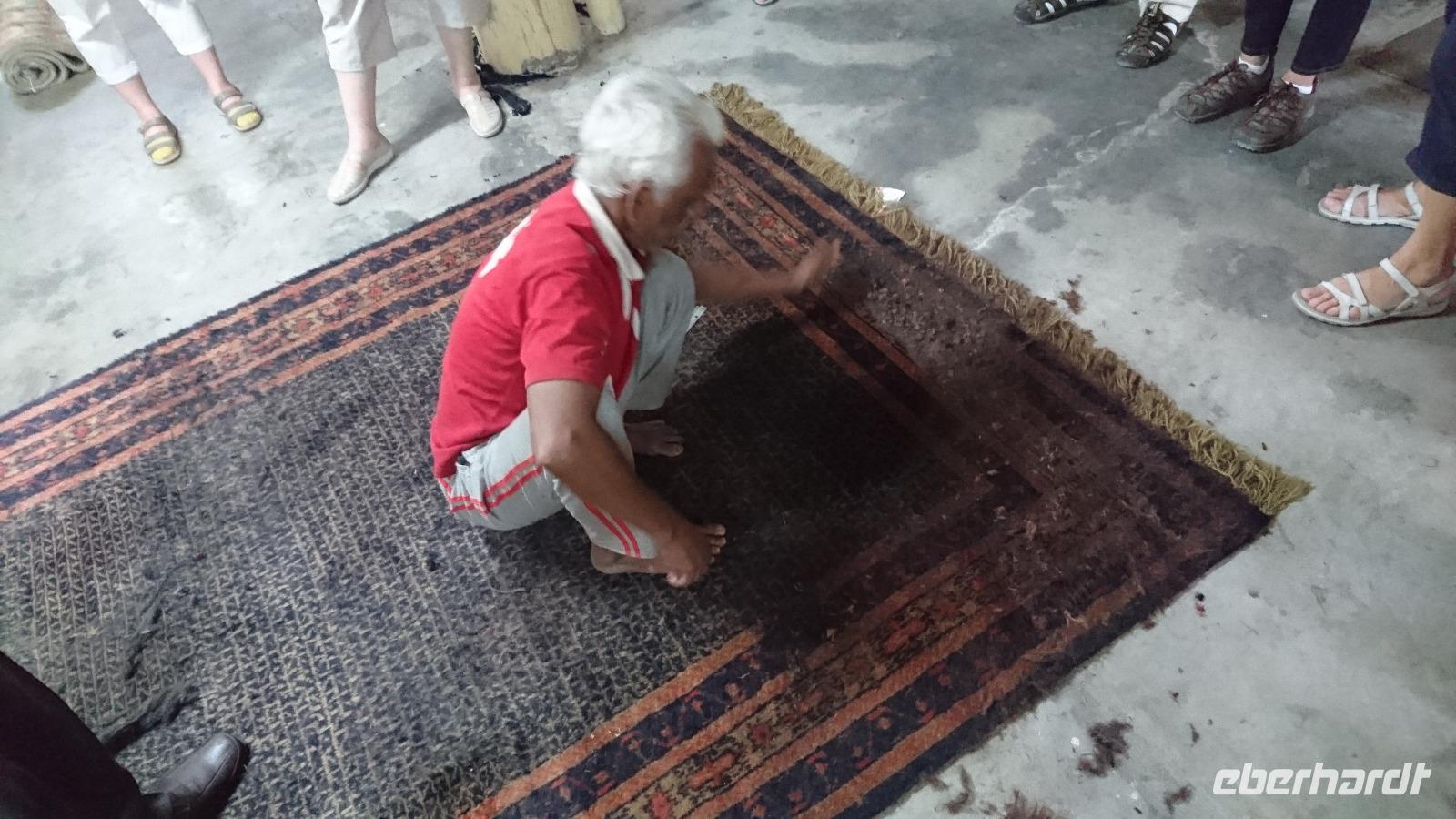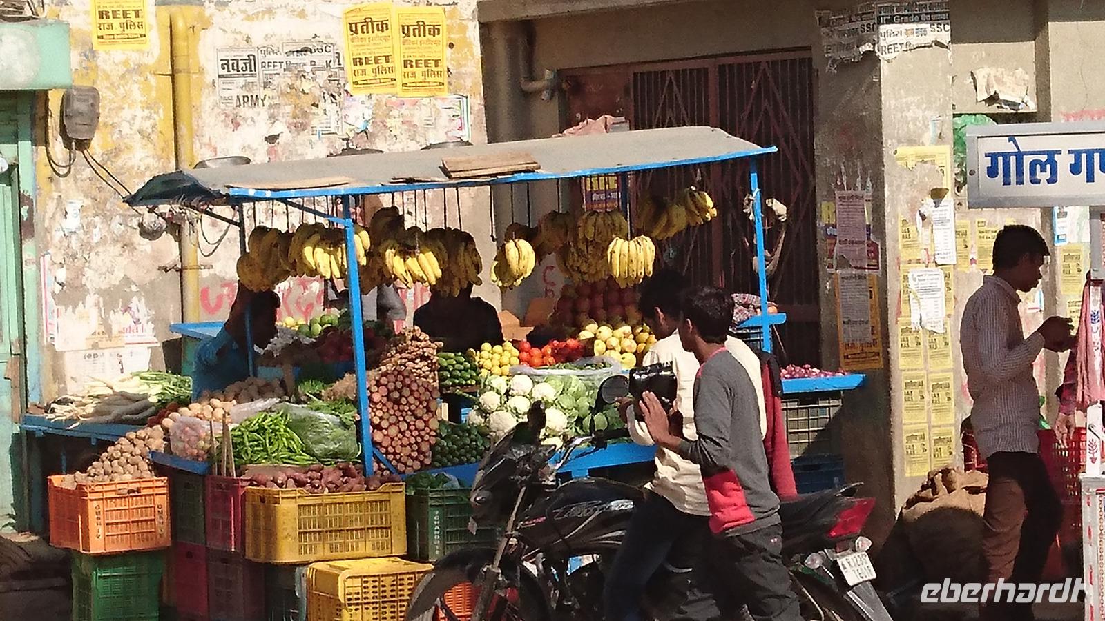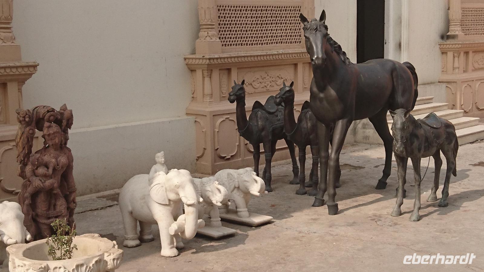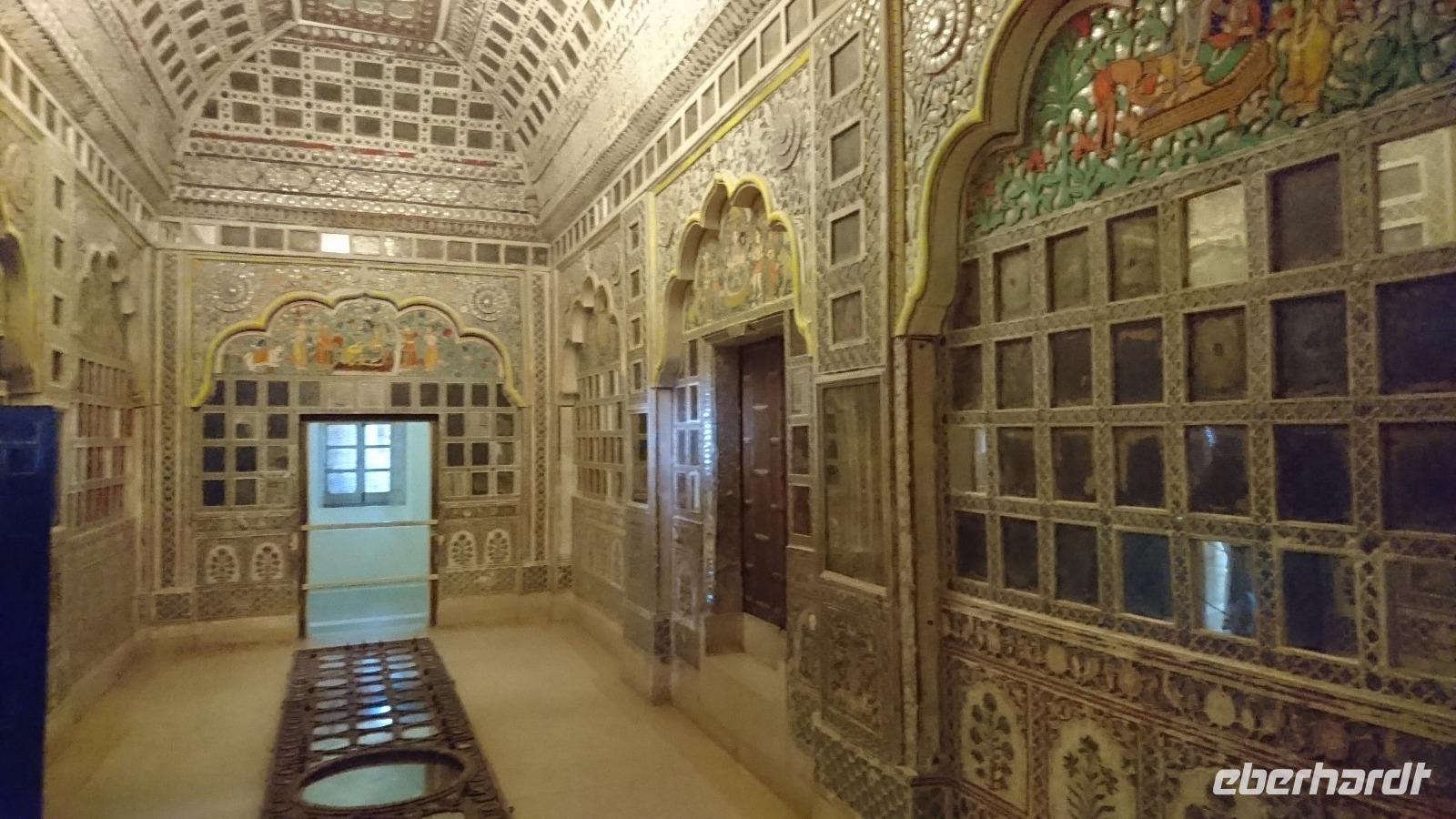 Eigentlich sollte es eher ein Haweli-Besuchs-Tag werden, also wir wollten alte und vor allem schön bemalte Händlerhäuser sehen und besichtigen. Doch wider Erwarten schlug nun der Magen-Darm-Trakt bei einigen unserer Gäste zu und wir machten den einen oder anderen Stopp, um Bedürfnisse zu befriedigen oder indische und auf die Situation perfekt abgestimmte schnellwirkende Medikamente zu besorgen und zu verabreichen. Später, allen ging es schon wieder etwas besser, erreichten wir Fatehpur, wo wir einmal ein Haweli besichtigen konnten, einmal die Herrlichkeit vergangener Tage betrachten durften, andermal jedoch erkannten, dass viel Arbeit und vor allem Geld investiert werden müsste, um den alten Glanz auch nur annähernd auf Dauer erhalten zu können. Auch einen interessanten Bazar besuchten wir in der Stadt, ehe es weiter zu unserer Mittagsrast und danach zu unserem Hotel ging. Hier angekommen, zogen wir erst einmal in unsere Zimmer. Es sollte ja die letzte Übernachtung vor Delhi sein, also erst einmal einrichten. Dann luden Ambrish und Stefan zu einem Rundgang durch den Ort, vorbei oder auch hinein in unterschiedliche Hawelis, dazu durch den nicht enden wollenden Bazar, bei dem sich verschiedenste Händler abwechselten und der besonders viele Silberhändler haben musste. Später kamen wir wieder ins Hotel, schauten uns vor dem Abendessen eine kleine Vorführung mit käuflichen Wendepuppen im Foyer an und aßen kurz darauf zu Abend, ehe wir den Tag bei einem Spaziergang oder im Hotel ausklingen ließen.