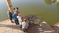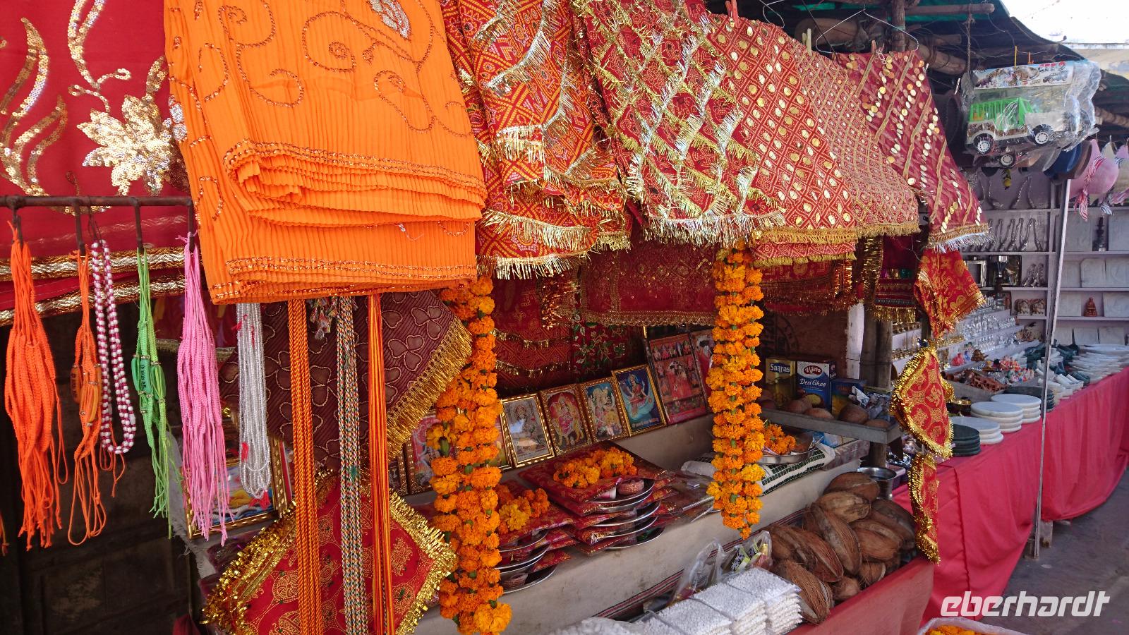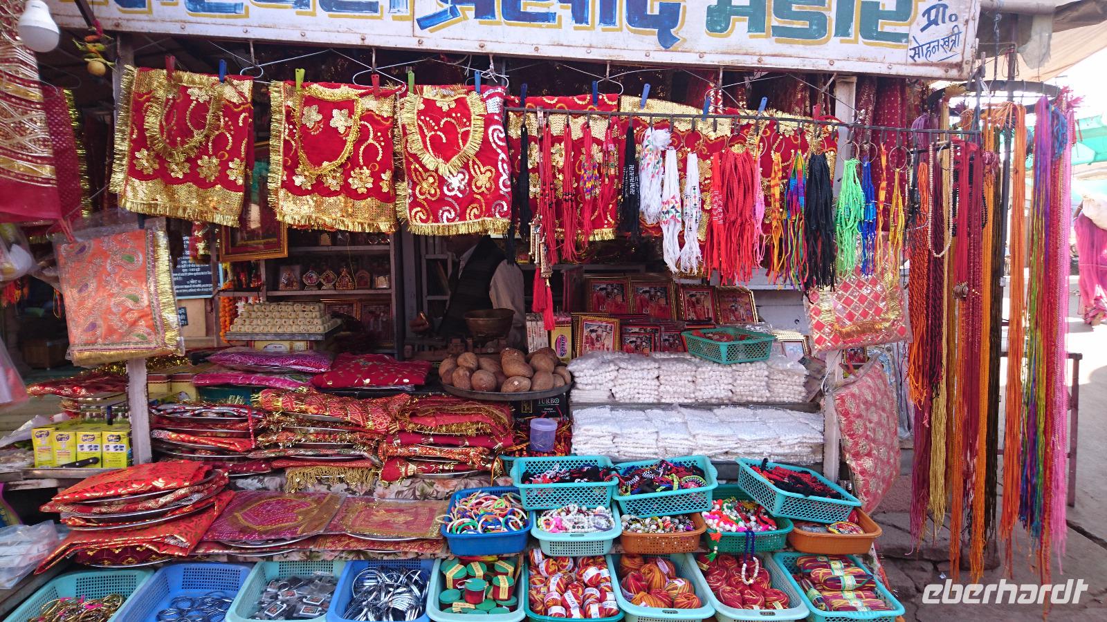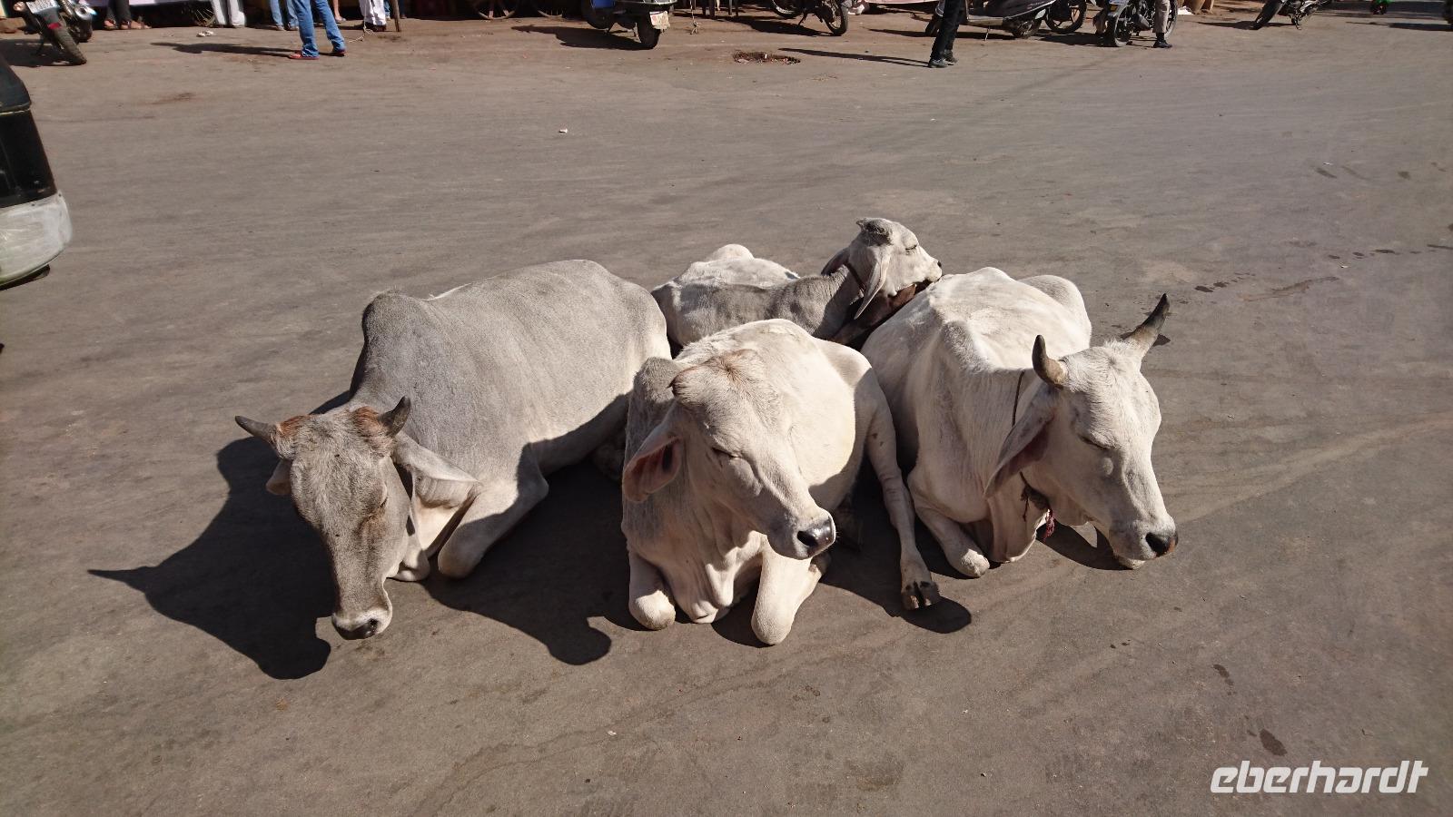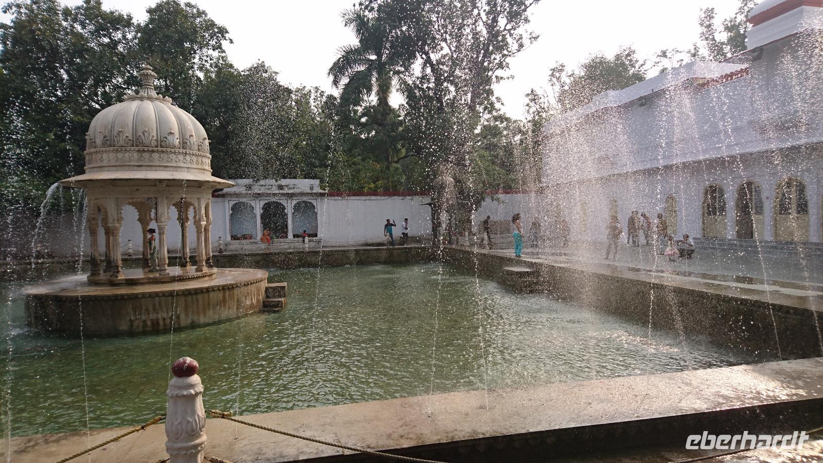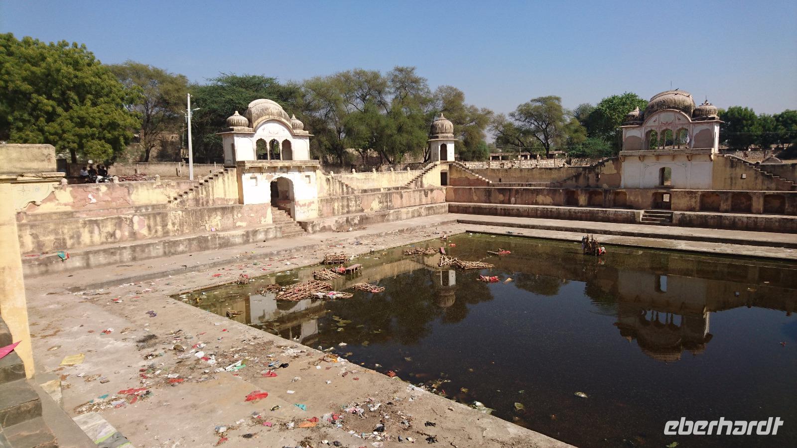 Am Morgen lachten wir, als uns Ambrish das heutige Tagesziel vorstellte. In die zweitschönste Stadt Indiens würden wir fahren. Natürlich. Jaipur, seine Geburtsstadt war die schönste und heute ging es nach Udaipur. Doch ehe wir dort angekommen sein würden, waren noch eine Menge Kilometer und ein ausgiebiger Zwischenstopp in einem heiligen Ort zu absolvieren. Also auf, auf, die Koffer in den Bus verladen lassen und schon waren wir unterwegs. Indische Straßen halten stets neue Überraschungen bereit. Mal ist die Piste gut, man kann mit 80 bis 100 Kilometern pro Stunde fahren, dann wiederum gleicht die Straße trotz der Auszeichnung als Hauptverbindungsroute zwischen großen und wichtigen Ortschaften, einer Huckelpiste, die jedem guten Fahrzeug etwas Probleme bereiten kann. Wir hatten uns auf unserem bisherigen Weg schon etwas daran gewöhnt und so verging die Fahrt nach Pushkar, unserem Zwischenstopp, mit Erzählen, etwas Ausruhen, dem Genießen der Landschaft um uns herum und einigen Schlucken des wichtigen Wassers recht schnell. Pushkar ist ein heiliger Pilgerort, zu dem gar die Herrscher der alten, glorreichen indischen Maharadscha-Zeiten aufbrachen und sich an den Ghats der Stadt wuschen, rituelle Handlungen vornahmen und sich so ihren Göttern näher fühlen konnten. Später kam das Pushkarfest hinzu, ein großer, unter dem Schutz der indischen Götterwelt stehender Verkaufsevent, bei dem Kamele die Besitzer wechseln. Wir hielten erst an den alten Ghats vor der Stadt, schauten uns dort an, wie in alter Zeit diese heiligen Orte angelegt wurden, fuhren dann in den Ort hinein, genossen mit Blick auf die neuen Ghats der Stadt einen Massala-Tee und nahmen später, wer wollte, an einer heiligen Zeremonie am See teil, ehe wir noch eine ganze weile das bunte Treiben auf dem Bazar der Stadt genossen, das eine oder andere Schnäppchen für zuhause erwarben und glücklich in den Bus stiegen. Nach dem Mittagessen in einem kleinen Gartenrestaurant am Wege, wo wir auch einmal etwas Tamarinde, eine antibakteriell wirkende Frucht des Tamarindenbaumes, probieren konnten. Auf dem weiteren Weg gen Udaipur entdeckten wir am Wege viele Marmorbetriebe, was wir verstanden, denn der Marmor aus Udaipur ist weltberühmt. Nach einem kleinen Stopp für die eigenen Bedürfnisse und noch dem einen oder anderen Schluck Rum zur Stärkung trafen wir bereits in der Dunkelheit und nach vielen interessanten Erlebnissen in unserem Hotel in Udaipur ein, um uns nach dem baldigen Abendessen für den nächsten tag auszuruhen.
