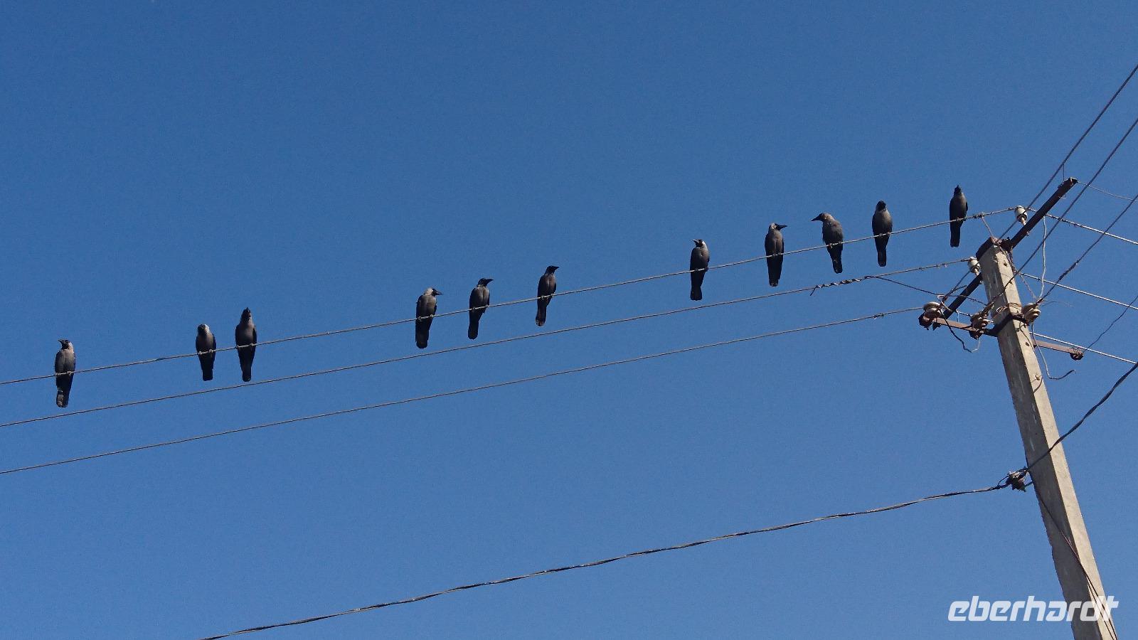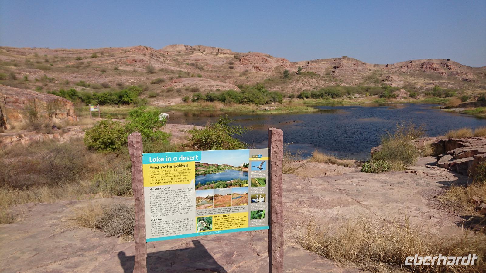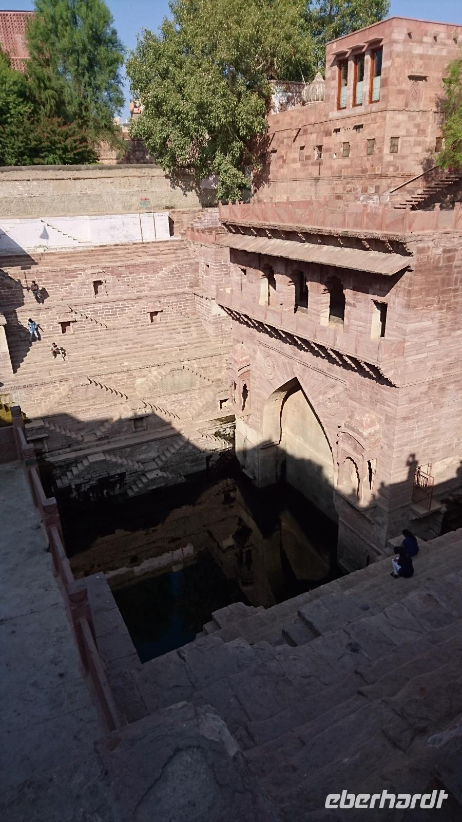 Heute sollte es in die Wüste gehen. Wüste. Was stellt man sich darunter vor? Karge Landschaft, nur Sand, hin und wieder eine Karawane, vielleicht gar verblichene Knochen und natürlich kein oder kaum Wasser. Auf die Wüste Thar trifft dies nur zum Teil zu. Zumindest ist es eine der am meisten bewohnten Wüsten. Dazu liegt sie zwischen Indien und Pakistan und schaut auf eine bewegte Geschichte als wichtige Station eines Teles der alten Seidenstraße zurück. Doch erst einmal brachen wir in Jodhpur auf und fuhren gen Westen. Auf unserem Wege lag noch eine bekannte und kulturhistorisch aber auch religiös sehr wichtige Tempelstadt. Osian. Seit wann der Ort verehrt und als heilig genutzt wurde, ist nicht bekannt. Es gibt in ihm und um ihn herum eine Unmenge alter Tempelanlagen, von denen ein Großteil heute nicht mehr in Betrieb, durch Geschehnisse vergangener Jahrhunderte gar entweiht und damit offengelassen ist. Trotzdem stehen die alten Tempelbauten noch fast unversehrt und man kann sie besichtigen, sich einen Eindruck von der Kunstfertigkeit aber auch der hohen Religiösität der alten Einwohner der Umgebung machen. Der Haupttempel jedoch ist immer noch in Betrieb und liegt auf einem Hügel mitten in der Stadt, die wahrscheinloch einst wegen der Tempel hier entstand. Wir erklommen den Hügel über die angelegten Treppen und besuchten den Tempel, konnten gar eine dort gerade stattfindende Zeremonie erleben. Am Ausgang beschenkte eine junge Inderin uns mit Süßigkeiten und erklärte, sie hätte eben erst geheiratet und bitte nun mit ihrem Süßigkeitenopfer, an dem wir alle teilhaben durften, die Götter um einen guten Willen zu Ihrer Ehe. Ihr Mann, ganz Inder und ein netter Kerl, war ebenfalls im Tempel und beaufsichtigte, ob seine Frau die Fürbitte richtig machte und alle um sie herum sich auch ordentlich zu ihr benahmen. Später fuhren wir nach Dank und vielem Winken weiter nach Kichna, wo sich eine riesige, nur im Europäischen Herbst und Winter erkennbare Kranichkolonie befand. Tausende Kraniche standen vor uns und liebten offensichtlich Waser und Wärme. Angeblich sollen sie irgendwann vor ihrer Abreise zu Fuß in den nächsten Ort laufen und sich so bei den Anwohnern für die Gastfreundschaft bedanken. Das konnten wir leider nicht sehen. Nach einem kleinen Mittagsimbiss in einem Restaurant am Wege fuhren wir noch in den Baba Hinku Tempel und besuchten auch den zum Tempel gehörenden Bazar, auf dem einige von uns sich mit echtem Weihrauch eindeckten. Ein kurzer Toilettenstopp unterwegs lockerte die restliche Fahrt bis zum Abend etwas auf und dann waren wir da, mitten in der Wüste, gleichzeitig in der größten Stadt der Thar, Jaisalmer. Wir bezogen hier unsere Hotelzimmer und genossen wenig später das Abendessen am Pool.