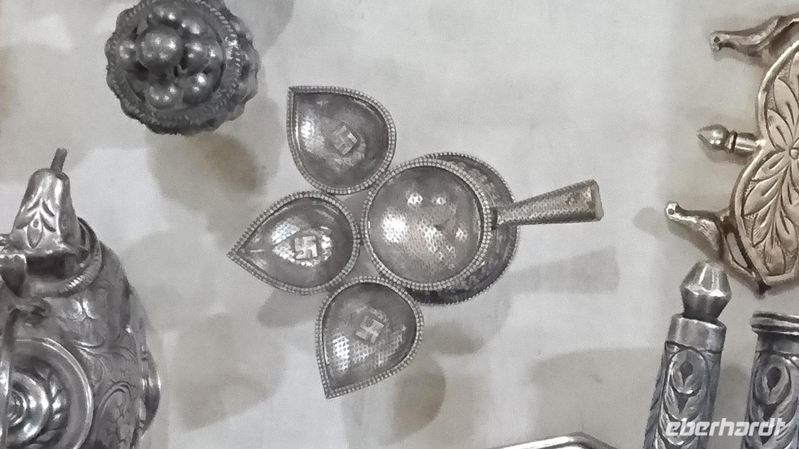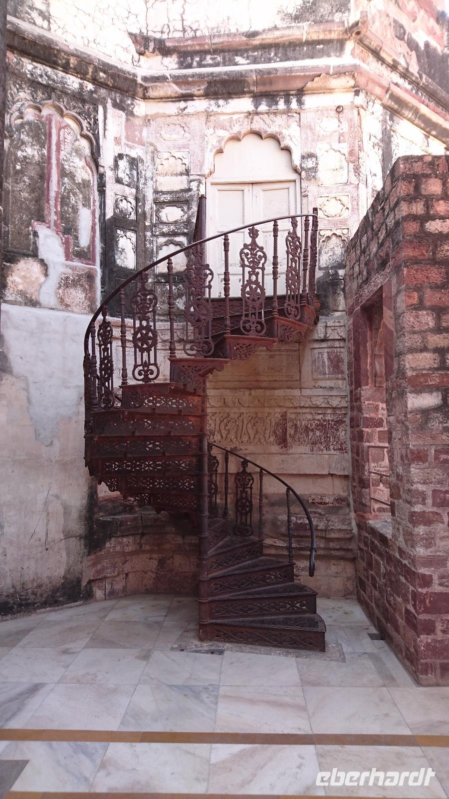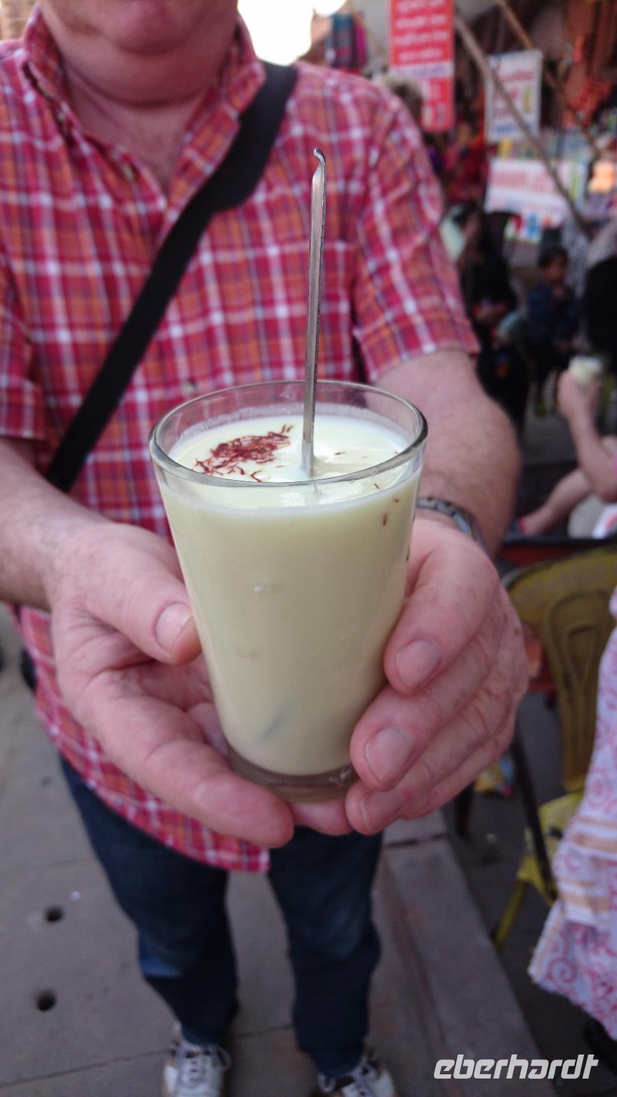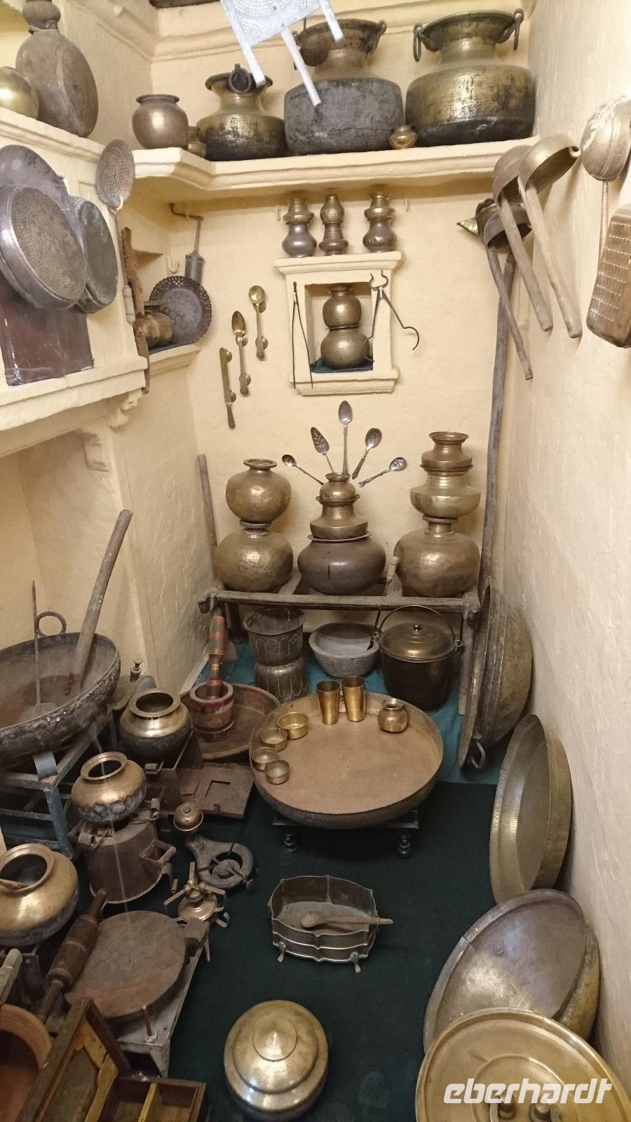 Lange Strecken kannten wir nun schon zur Genüge auf unserer Tour, doch heute sollte es einmal eine kurze Fahrtstrecke werden, die vor uns lag. Nach nur rund zwei Stunden Fahrt standen wir bereits vor dem großen Grabmal der Maharajas Jaswant Thada. Von hier hatten wir einen tollen Blick über die blaue Stadt Jodhpur und hinüber zur Festung Meherangarh, die wir wenig später ebenso besichtigten. Die Größe, der Bau auf einen Felsen, die vielen Räume und Sammlungen von Sänften, Waffen, Gemälden, die Vorführung, wie ein Turban aus vielen Metern Stoff gewickelt wird und dann auch hält, ebenso der Blick von der Festung und Burg über die Stadt und der kleine Imbiss, den wir am Burgrestaurant einnahmen waren ein besonders bleibendes Erlebnis. Danach liefen wir den Burgberg hinab in die Stadt, in der das bunte Treiben in allen Straßen, der große Bazar, die vielen kleinen Geschäfte, ein altes Frauen-Badebecken und viele interessante Bauwerke lockten. Im Bazar probierten wir frisch zubereiteten Lassi und bei einer Tee- und Gewürzhändlern am Wege ließen wir uns in die Geheimnisse der indischen Würzkunst, aber auch in die Sorten der vielen Tees einführen und staunten nicht schlecht, was man alles trinken und würzen konnte. Danach und nach noch einigen Metern durch den belebten Bazar bestiegen wir immer zu viert Pferdebuggys und fuhren mit diesen zurück zu unserem Bus, der in einer Seitenstraße auf uns wartete. Mit ihm ging es dann ins Hotel, wo wir später zu Abend aßen und den Tag in der drittschönsten Stadt Indiens, wie Ambrish sie nannte, gemütlich ausklingen ließen.