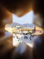 Jaipur - die rosarote Stadt und Hauptstadt des Bundesstaates Rajesthan und zu guter letzt die Heimat unseres Reiseleiters. Wir machten einen kleinen Fotostopp beim "Palast der Winde", bevor wir zum höhepunkt des Tages einen besuch beim "Fort Amber". Auf den rücken von einem Elefanten ging es in zweier Paaren hoch auf die Festung, der Ritt auf diesem Majestätischen Tier dauerte nur 15-20 Minuten. Wir besuchten den Spiegelsaal und die Gärten der Festung. Anschließend machten wir einen stopp bei einer örtlichen Teppichknüpferei die uns einen Einblick in die Druck- und Knüpftechnik der Region und präsentierten uns einige Ihrer Meisterwerke. Im Anschluß gab es Mittag. Am Nachmittag besuchten wir noch den Stadtpalast, lauschten Straßenmusikern und einer kleinen Theater Aufführung vom Puppenspieler der den "indischen" Michael Jackson spielte. Gleich neben dem Palast war ein historisches Observatorium, welches wir bei Einbruch der Dämmerun besuchten bevor wir mit dem Bus zurück zum Hotel fuhren. Die unermüdlichen in der Gruppe gingen noch gemeinsam mit mir und dem örtlichen Reiseleiter über den Basar von Jaipur.