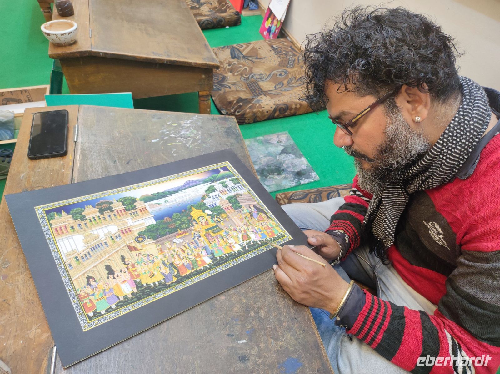 Heute erkundeten wir Udaipur, zuerst unternahmen wir eine Bootsfahrt auf dem Pichola-See. Wir fuhren entlang der Uferprominade mit einem klasse Blick auf den Maharana Palast und fuhren auch vorbei an der Hotelinsel auf welcher der Weltbekannte James Bond Film "Octopussi" gedreht wurde. Die Hotelinsel ist sehr exklusiv und eine Nacht kostet ca. 1000 €. Wir machten Pause auf der öffentlichen zweiten Hotelinsel des Sees und schauten uns das "Jagmandir" Schloss und den wunderschönen Garten der Insel an. Anschließend besuchten wir den Maharana Palast am Ufer des Sees. Durch enge Gänge und einige Treppen bahnten wir uns unseren Weg durch den Palast und vorbei an einigen schönen Ausblicken auf den See und prunkvolle Verzierungen. Etliche Gemälde erzählen über die Geschichten längst vergangener Kriege und visualisierten die Geschichte welche uns der örtliche Reiseleiter erzählte. Nach dem Mittagessen besuchten wir eine Miniaturmalschule, mit wunderschönen detailreichen Malereien und bevor wir zurück zum Hotel fuhren noch einen Botanischen Garten mit einzigartigem Wasserspiel. Am Abend, nach dem Abendessen fuhren einige von uns noch Gemeinsam mit Tuk Tuks zu einer Bar mit Dachterasse und genossen einen Drink.