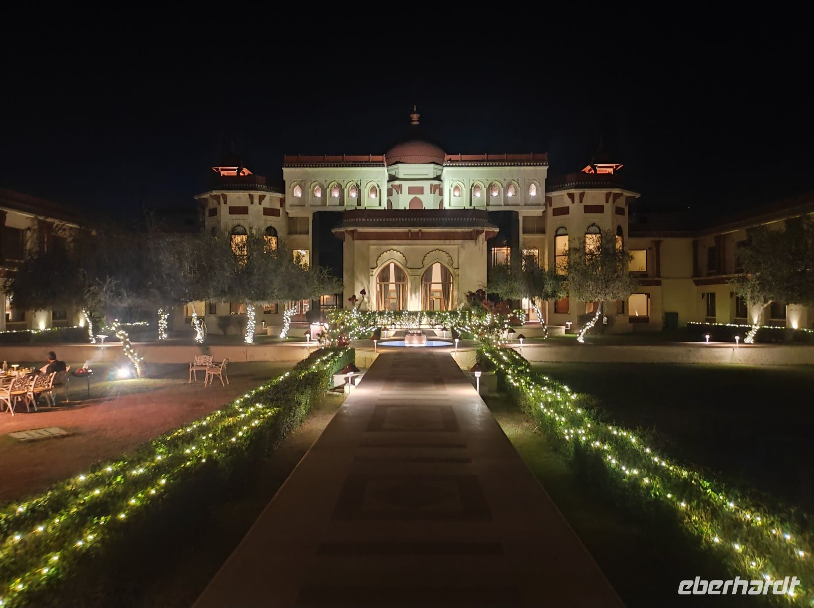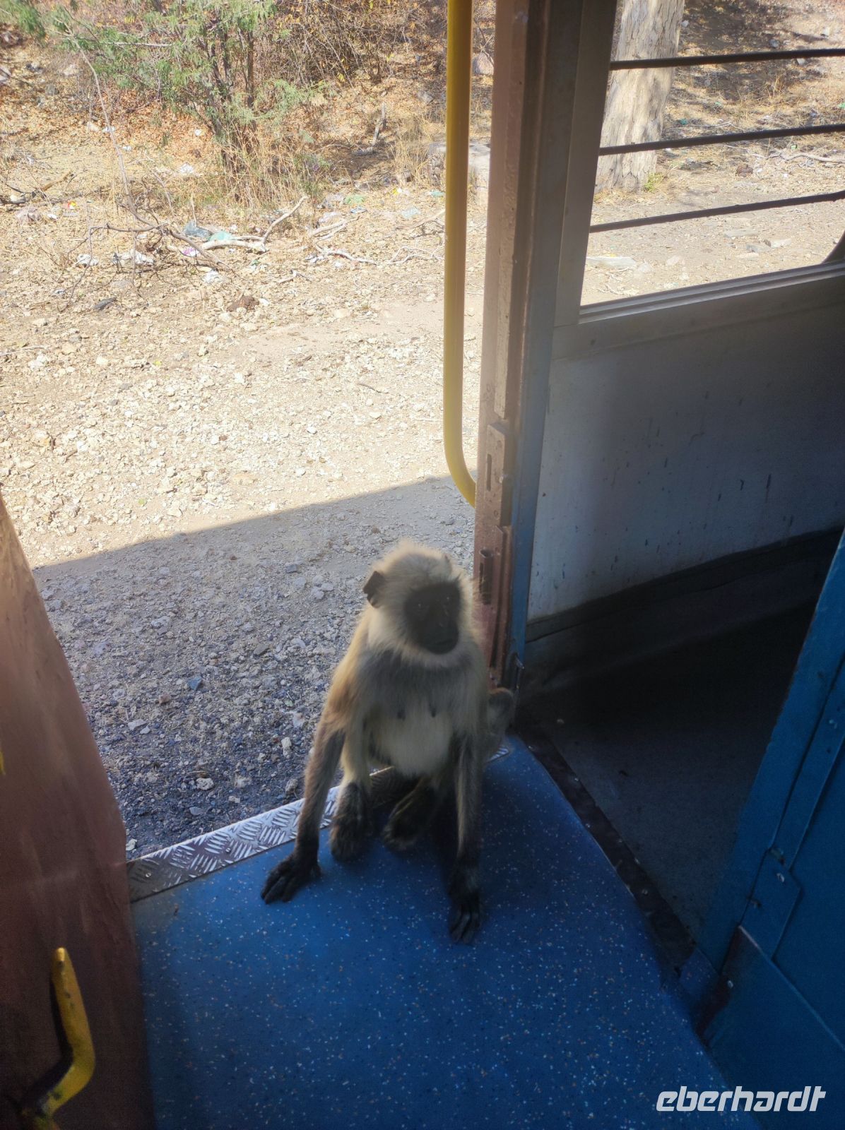 Der heutige Tag war bis zum späten Nachmittag Frei und man konnte sich im grünem Innenhof der Hotelanlage entspannen. Die meisten genossen den freien Tag, zwei Gäste unternahmen eine spannende Wanderung durch das Gebirge der Region während sich 6 Gäste mir auf einer vom Hotel organisiserten Tour mit der Eisenbahn anschlossen. Mit dem Jeep ging es durch das Gebirge zum Bahnhof, hier fuhren wir mit einer noch aus der kolonialzeit der Britten stammten Eisenbahn durch etliche Tunnel, über Brücken und durch die schöne Steppe der Umgebung. Bei einem Zwischenstopp besuchten uns einige Affen im Wagon, wir erreichten die Endstation nach etwa 1 h fahrt und fuhren zurück zum Hotel. Gegen 16.30 Uhr ging es los mit dem Jeep und einem Oldtimer des ehemaligen Palast besitzers zu einem Bishnoi-Dorf, hier gab uns der örtliche Reiseleiter Bhawani einen super Einblick auf die lebensweise der Dorfbewohner und sozusagen den Ärmsten der Ärmsten der Region, einige Reisegäste verschenkten Süßigkeiten oder sonstiges. Zum Sonnenuntergang gab es einen Tee und Kekse bevor es zurück zum Hotel ging.