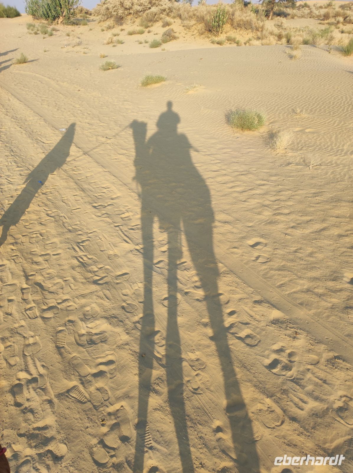 Am Vormittag besichtigten wir die Stadtfestung von Jaiselmer, wandelten durch die engen Gassen der Stadt innerhalb der Burg und betrachteten die eindrucksvolle Haweli-Architektur. Im Anschluss besuchten wir noch ein Haweli und erhielten Einblick auf die Innenräume des ehemaligen Kaufmannshauses. Am späten Nachmittag ging es in die Wüste und wir wandelten, jeder auf einem eigenen Kamel durch die scheinbar endlose Thar-Wüste. Auf einer Sanddüne machten wir einen Stopp und genossen mit einem Sundowner und musikalischer Untermalung den Sonnenuntergang. Gegen 20 Uhr erreichten wir unser Hotel und genossen unser letztes Abendessen, bevor es nun Stück für Stück wieder Richtung Delhi ging.