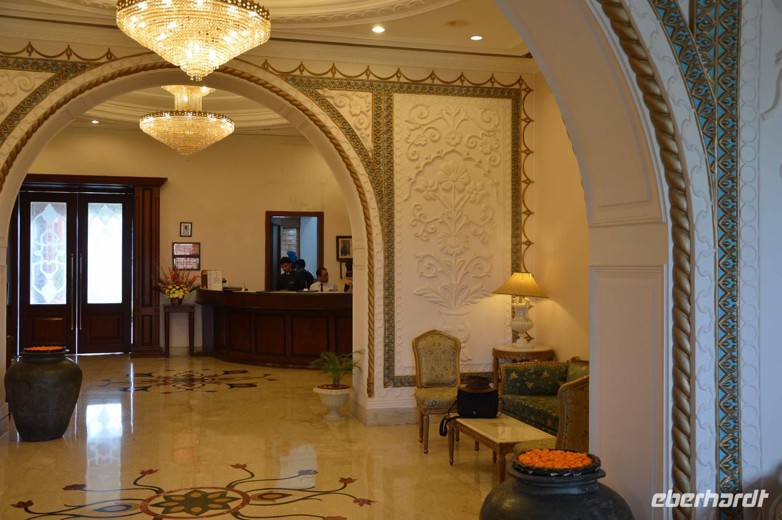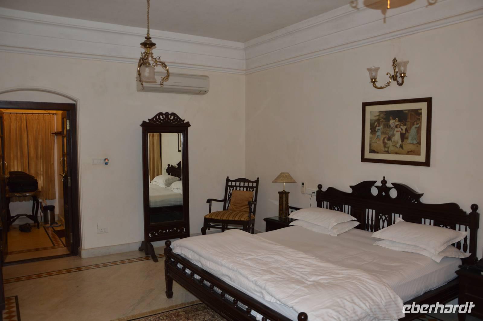 Es regnet die Nacht durch. Wir fahren um 8.30 Uhr ab, werden mit den Jeeps zum Bus gebracht. Der fährt sich aber nach wenigen Kilometern im Schlamm fest. Mit Hilfe aus der Lodge bekommen wir ihn wieder frei und fahren dann erst im Regen, dann bei bedecktem Himmel nach Bhopal, wo wir ohne weitere Pannen mittags ankommen. Das Hotel ist ein Maharadscha Palast, ein Traum. Um 14.00 geht es dann mit einem sehr kundigen lokalen Führer auf den Stadtrundgang, wo wir die alte Festung, die Paläste und die Moscheen besichtigen sowie die Blicke über die Seen genießen. Es ist schon erstaunlich: In Europa ist Bhopal mit dem Chemieunfall verknüpft und niemand kennt die außerordentliche Geschichte und auch Schönheit dieser alten Stadt! Am Abend verabschieden wir und von Pradeep, der ein sehr guter Guide war.