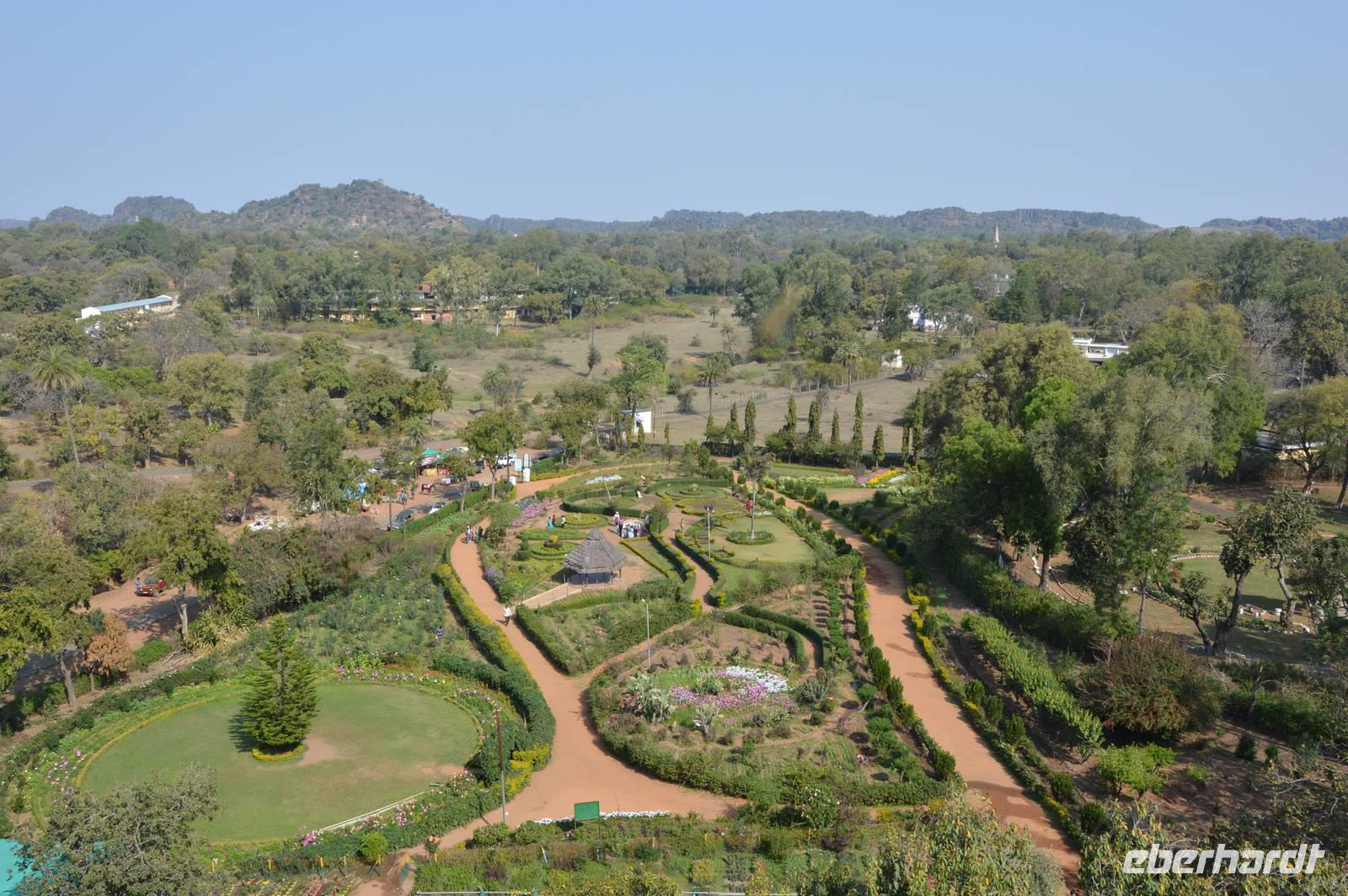 Es geht um 8.30 los und wir sind sehr gespannt, was auf uns zukommt. Zunächst gleich hinter Jabalpur eine Straßensperre wegen einer Veranstaltung. Die Polizei schickt uns auf eine Umleitung, die irgendwo landet, wo sich keiner mehr auskennt. Mit Hilfe von Einheimischen finden wir dann aber die Straße wieder. In den Dörfern werden wir teilweise wie weiße Elefanten angestaunt: Da war wohl höchst selten mal ein Europäer! Alle sind sehr nett, wollen photographiert werden und freuen sich, dass wir da sind. Bleibt die Frage: Wer ist hier die Attraktion? Sie für uns oder wir für sie? Eifach eine tolle Erfahrung. Letzteres wir noch dadurch intensiviert, da gerade die Zuckerrohrernte läuft und zwar teilweise wie vor 300 Jahren: Zebus treiben Tretmühlen an, wo der Saft den Zuckerrohrstangen entzogen wird. In riesigen Eisenkesseln wird über offener Flamme der Saft eingedickt. An Waagen stauen sich die Zebukarren, hoch beladen mit Zuckerrohr: Indien wir vor 150 Jahren. Lunch machen wir in einem der einfachen aber sauberen Motels für indische Touristen, trinken Massala Tee und essen Samosas. Als wir und den Ghats nähern, wird die Straße spektakulär, kurvig und voller Serpentinen. Die Landschaft ist atemberaubend. In Pachmarhi hilft uns ein Einheimischer, der uns zum Hotel lotst. Dieses entpuppt sich als eine typische Hill Station aus der Zeit der Engländer, ein Traum in einem Park, welcher gleichfalls ein Traum ist. Wir kommen gegen 16.30 an. Was auch sofort auffällt ist, dass im Park jede Menge Rhesusaffen sind, die sehr frech sind. In Folge dessen hat das Hotel einen Mann abgestellt, der nichts anderes tut als die Rhesusaffen zu verjagen, welche ansonsten bis in die sehr schönen Zimmer gehen würden. Die Küche des Hotels ist einzigartig und sehr gut.