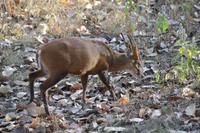Um 06.00 geht es nach einem Kaffee/Tee mit den Jeeps in den Panna Nationalpark. In dem Salwaldgebiet finden wir rasch wieder Axis, Sambar und dann auch den ersten Muntjak. Die Landschaft ist abwechslungsreich, durchsetzt mit kleineren Grasflächen. Hulmans sind häufig und, wie nicht anders zu erwarten, oft in Gesellschaft von Axis. Die ersten Spitzhaubenadler und Bankivahühner sowie am Himmel Geier sind zu sehen. Und dann tauchte der Leopard auf! Wir konnten ihn einige Male an Hand der Warnrufe lokalisieren und auch beobachten. Gegen 10.00 sind wir in der Lodge zurück und frühstücken.