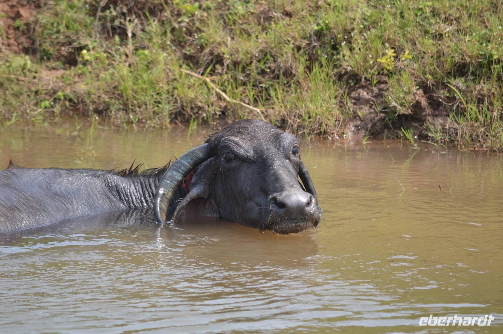 Nachts ist ein Leopard im Camp! Er schnurrt dicht an meiner Hütte vorbei. Um 5.45 Uhr fahren wir mit den Jeeps wieder zum Tawa Fluß und setzen über in den Nationalpark. Dort geht es mit Jeeps weiter. Die Landschaft ist grandios, die Wege teilweise für die Jeeps nur mit Allrad und Sperrdifferenzial zu befahren, aber es lohnt sich! Alle sehen Lippenbären, insgesamt 4 Tiere. Gaur sind wieder da, teils in größeren Herden und einzelne imposante Bullen. Die Vogelwelt ist reichlich vertreten, auch mit Eulen und dem Grünreiher. Um 11.00 sind wir wieder retour - aber de Himmel zieht sich zu!