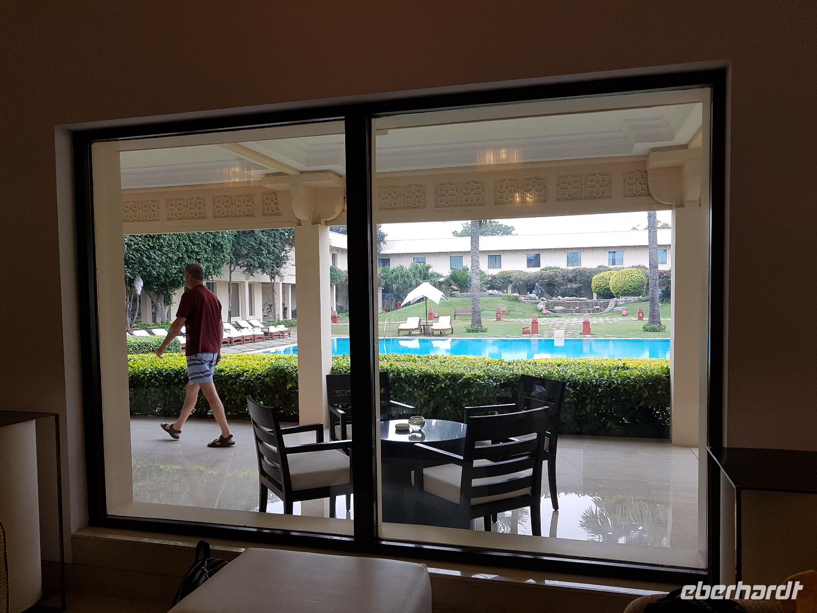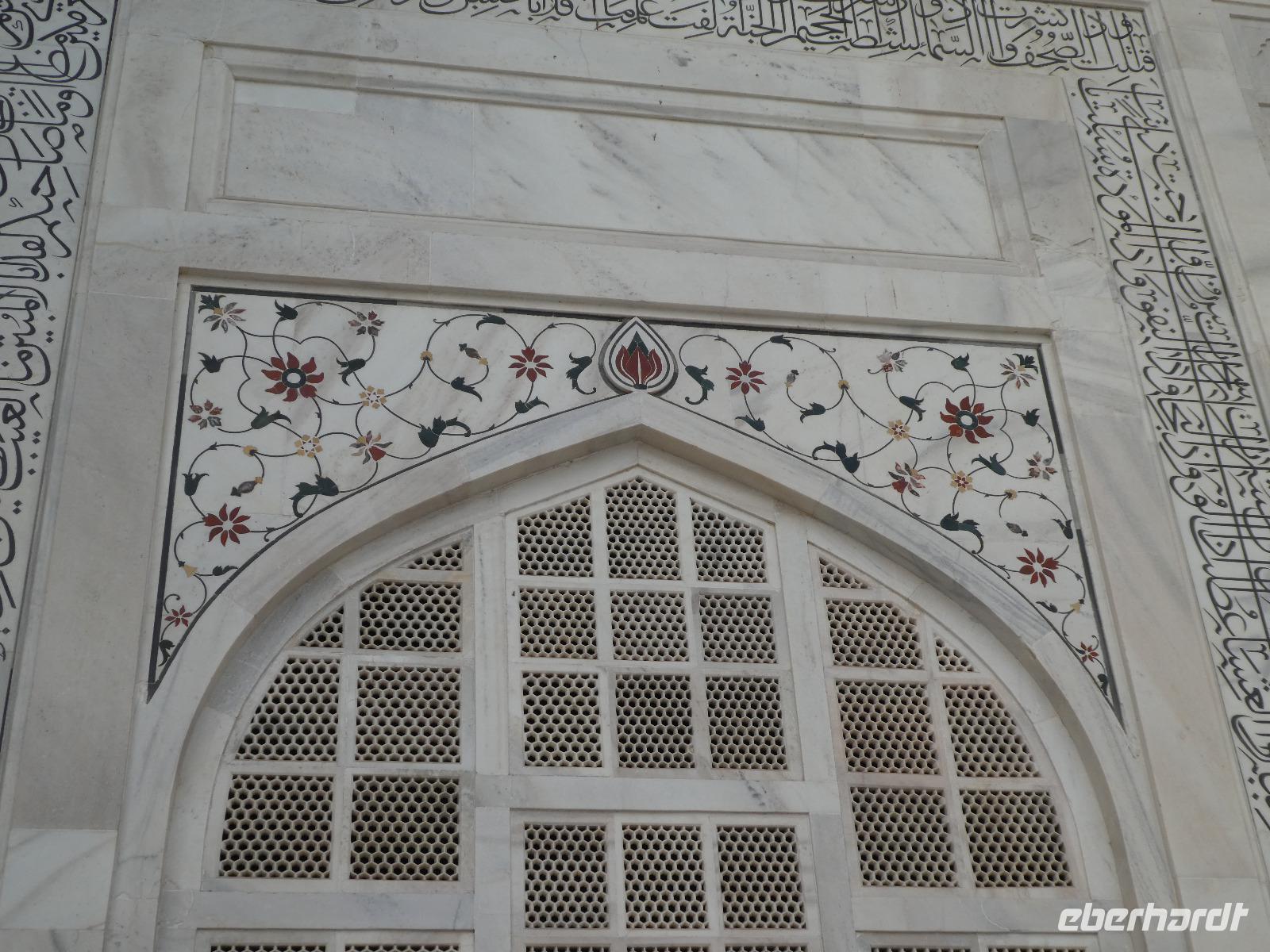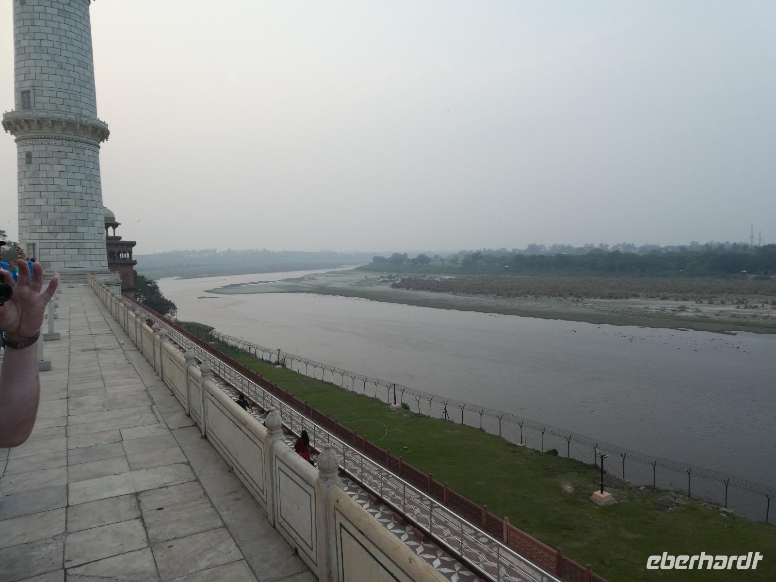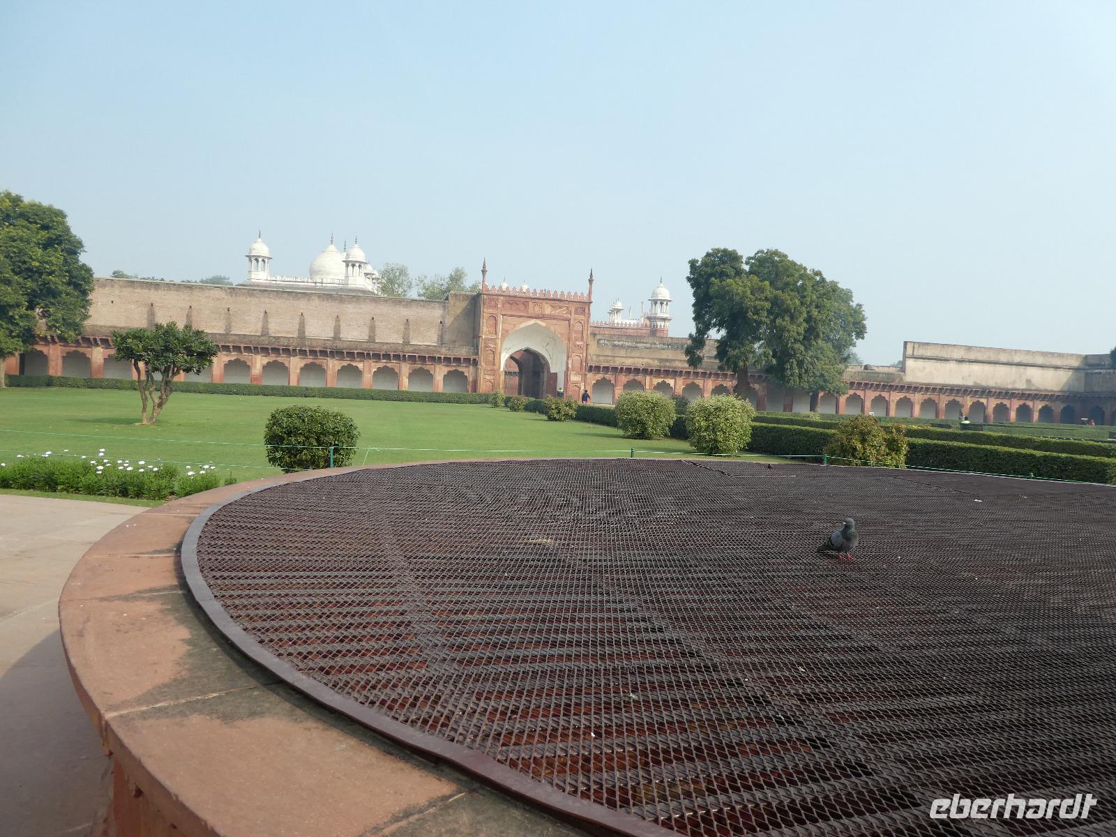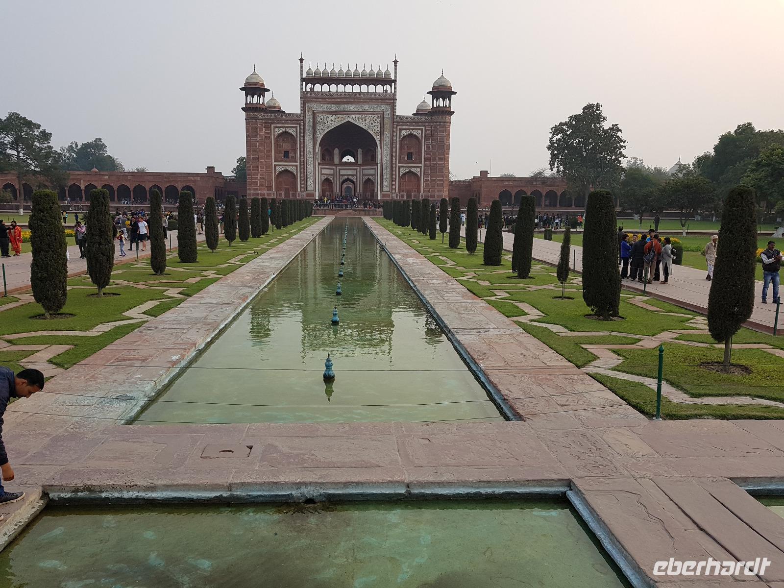 Ausgeruht und gut gestärkt nach einem tollen Frühstück fuhren wir mit unserem Bus aus Delhi hinaus auf die neue Autobahn Richtung Agra. An den Straßenrändern sahen wir viele Inder sitzen, die mit Essen von den Sikh versorgt wurden. Ein bedrückendes Bild angesichts des grenzenlosen Reichtums bei uns in Europa. Unterwegs tranken wir Kaffee an einer Raststätte und Bhawani informierte zur Geschichte der Mogul Kaiser und gab eine erste Einführung zum Kastensystem in Indien. Am frühen Nachmittag erreichten wir das Trident Hotel in Agra. Wir bezogen unsere Zimmer und gegen 15 Uhr brachen wir wieder auf in Richtung Taj Mahal. Zunächst besuchten wir aber das Taj Khema Restaurant mit einem herrlichen Garten. Bei Kaffee und Keksen genossen wir die Aussicht auf das wohl bekannteste Bauwerk Indiens und wir fotografierten wie die Weltmeister. Danach gingen wir zu Fuß zur Anlage des Taj Mahal und hatten gut 2 Stunden Zeit für eine sehr ausführliche Besichtigung. Bhawani zeigte uns die schönsten Ecken und besten Perspektiven zum Fotografieren und machte eine sehr detaillierte Führung. Wir blieben bis zum Sonnenuntergang und genossen diese ganz besondere Stimmung.