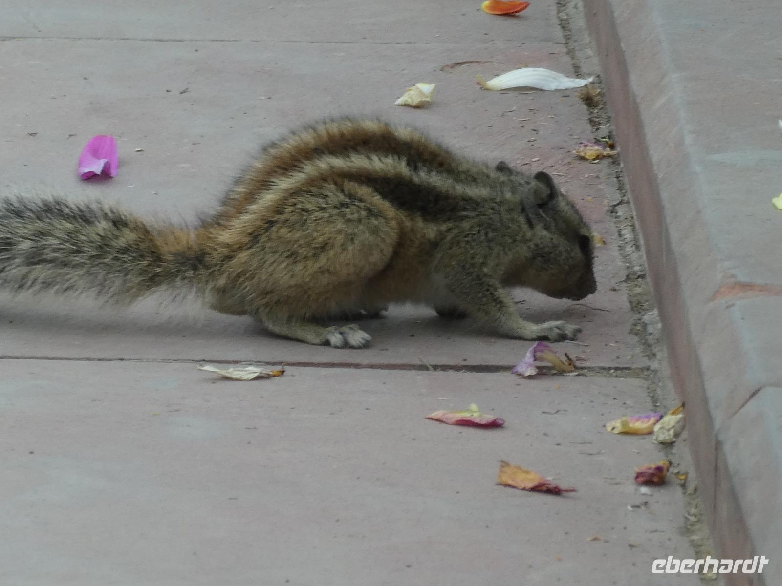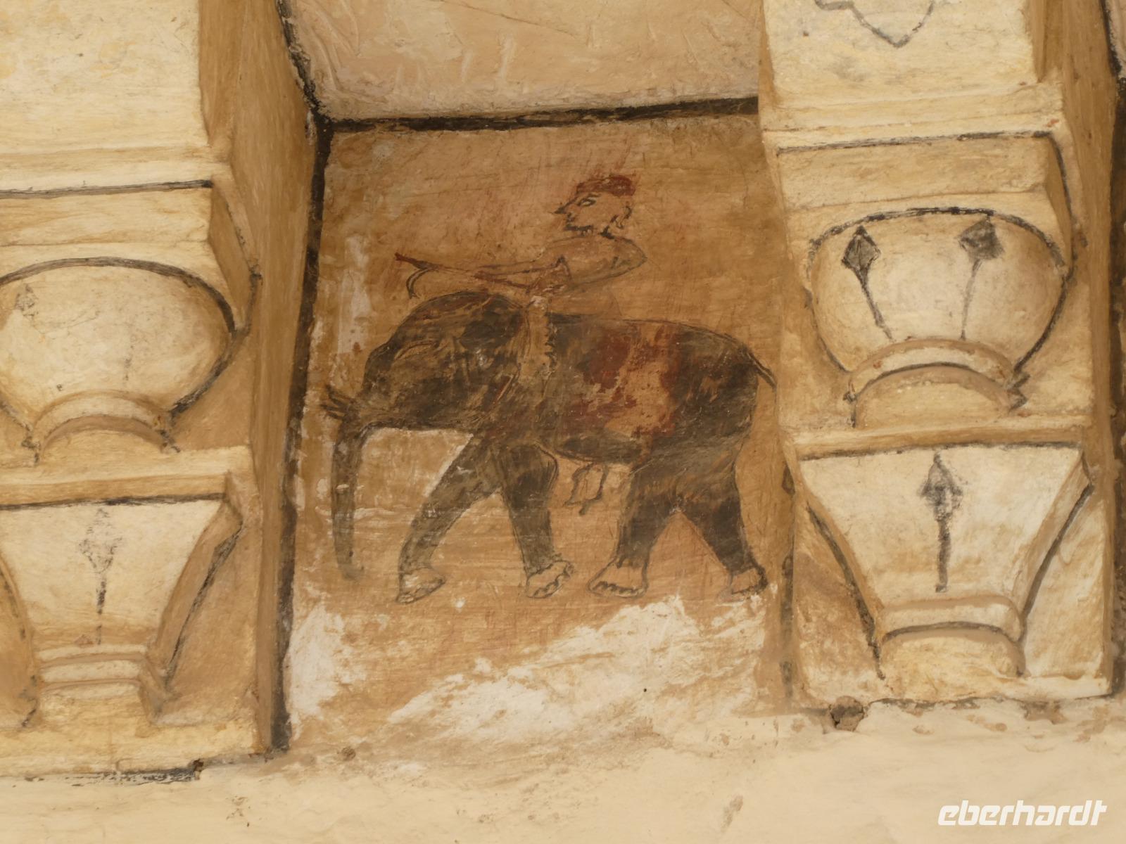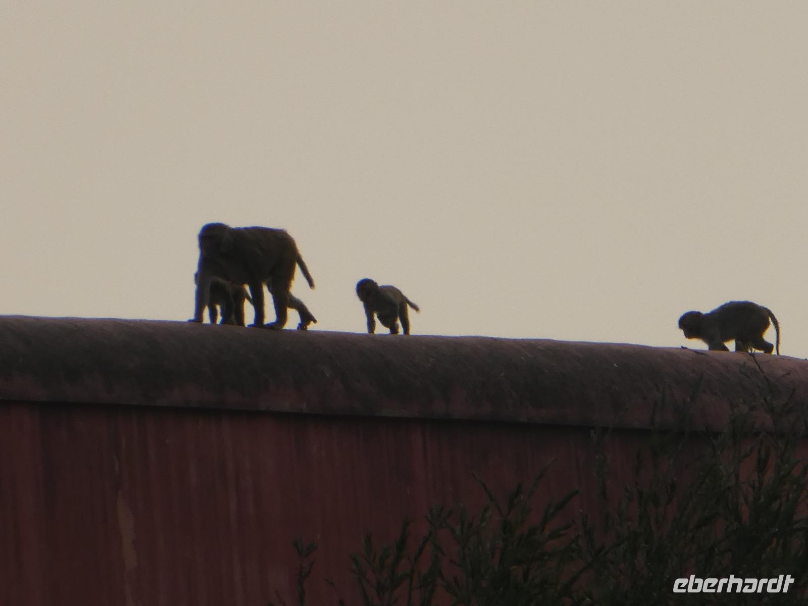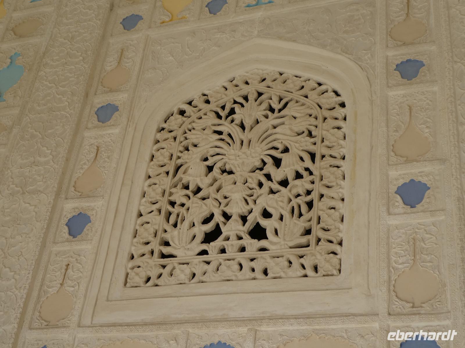 Recht früh brachen wir heute auf zum Amber Fort. Die Elefanten, die die Gäste hinauf zum Fort bringen, arbeiten nur noch vormittags und so bot sich eine lange Schlange Wartender Touristen. Immer 2 Gäste saßen sehr bequem auf einem breiten Sessel auf dem Rücken des Elefanten und so war der Ritt hinauf schon mal ein Erlebnis. Bei Sonnenschein und guter Sicht erkundeten wir die zahlreichen Gebäude und Gärten des Forts. Seine Lage im Aravelligebirge macht es besonders reizvoll und eine 25 km lange Mauer schützt den Ort mit dem Fort. Den Weg wieder hinunter zum Bus gingen wir zu Fuß und konnten so noch einmal die fantastische Aussicht genießen. Auf dem Rückweg stoppten wir in einer Teppeichknüpferei und Druckerei und erfuhren viel Interessantes und bekamen dazu auch noch einen Mittagssnack.